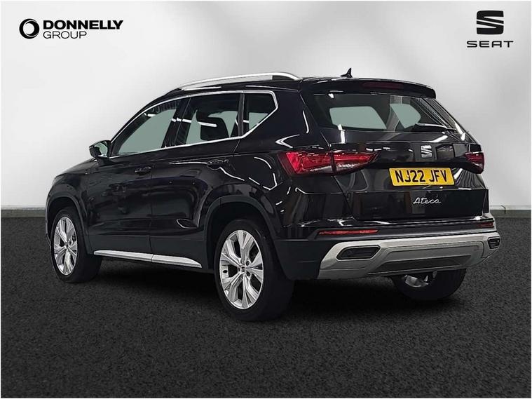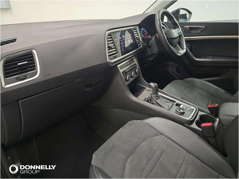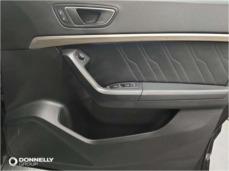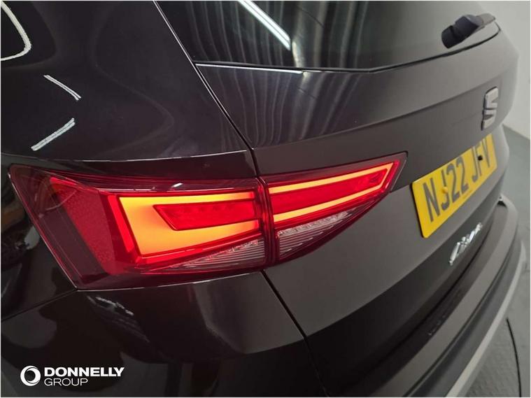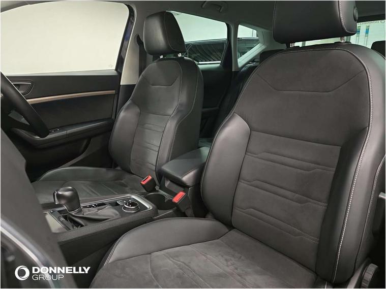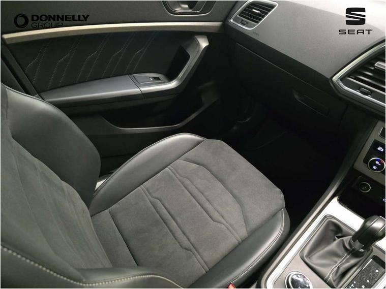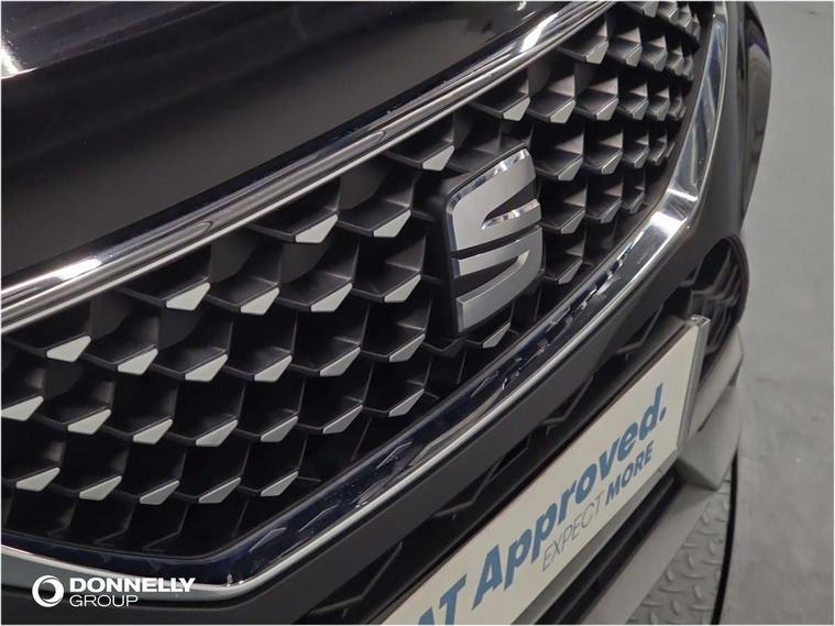 E-call, Outside temperature gauge, Progressive power assisted steering, Rear view camera, SEAT drive profile with driving experience button - Normal, Sport, Eco and Individual mode, gearshift, steering and throttle response, Self parking functionality (includes front and rear parking sensors), Trip computer, Wireless full link smartphone integration, Wireless phone charger, Steering wheel mounted audio/phone controls, Black simulated exhaust pipes, Body colour bumpers, Body coloured wheel arch surrounds, Chrome front grille frame, Chrome roof rails, Chrome side window trim, Dark tinted rear windows, Daytime running lights, Door mirrors with welcome light silhouette, Dynamic headlight range control with self adjusting whilst driving, Electric adjustable/heated/folding door mirrors, Front and rear electric windows, Front grille hot stamping, Full LED headlamps with lens and LED front fog lamps with cornering function, Heated windscreen, Illuminated aluminium front door sill, LED rear tail lights with dynamic indicators, Rear fog lights, Rear side wing doors, Rear wash/wipe, Reflex silver side mouldings, Third brake light, 12V socket in front, 3 seat bench in 2nd row, 60/40 split folding rear seat, Dual zone climate control, Front and rear head restraints, Front centre armrest, Front seat back storage pockets, Height adjustable driver and passenger seat with lumbar adjustment, ISOFIX points in outer rear seats with top tether anchorage points, Leather steering wheel and gear knob, Microsuede upholstery with front comfort seats, Rear armrest and easy back seat release mechanism from boot, Single front passenger seat, Steering wheel mounted gearshift paddles, Storage compartment under driver's seat, Convenience pack - Ateca, Interior lighting pack - Ateca, Navigation system pack with DAB - Ateca, Safe and driving pack - Ateca, 3x3 point rear seatbelts, ABS, Traction control system (TCS), Electronic stability control (ESC) and Electronic differential lock system (XDS), Airbags - Driver and front passenger airbag with deactivation, front side, two curtain and driver's knee airbags, Electric parking brake with auto hold function, Front and rear seatbelt reminder, Hill hold control, Manual rear child locks, Tiredness recognition system, Traction control, Tyre pressure monitoring system, Alarm, Keyless entry, Locking wheel bolts, Chrome interior detailing, 18" Brillaint silver alloy wheels,