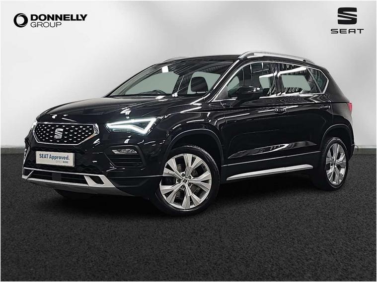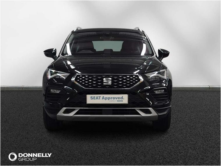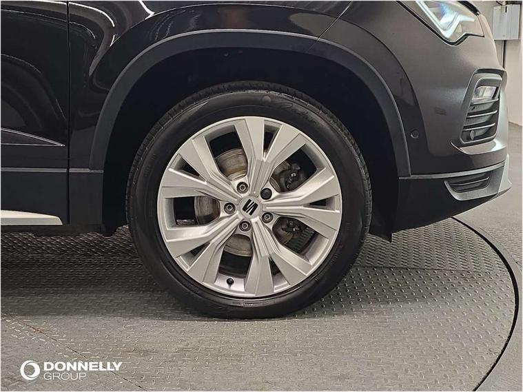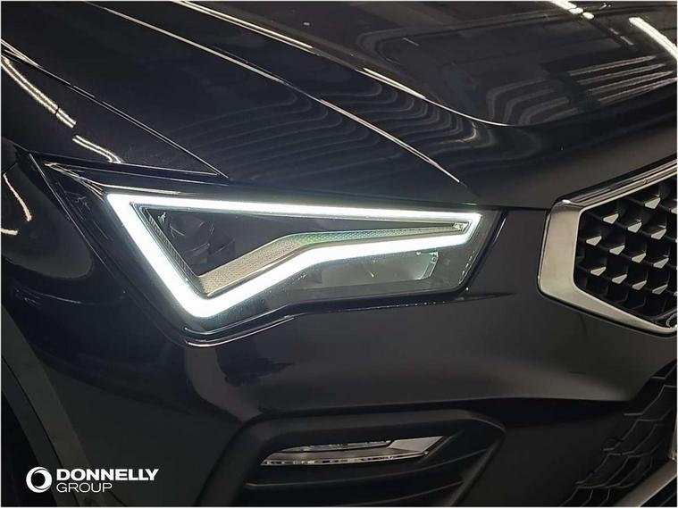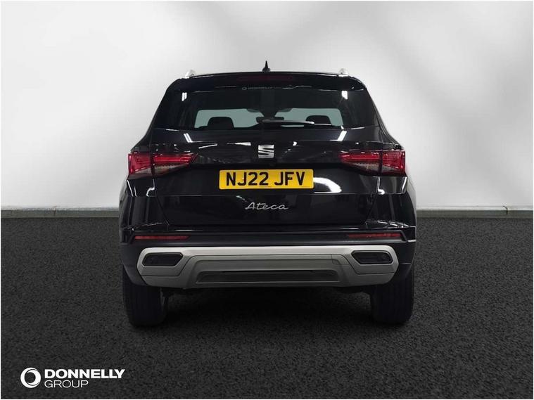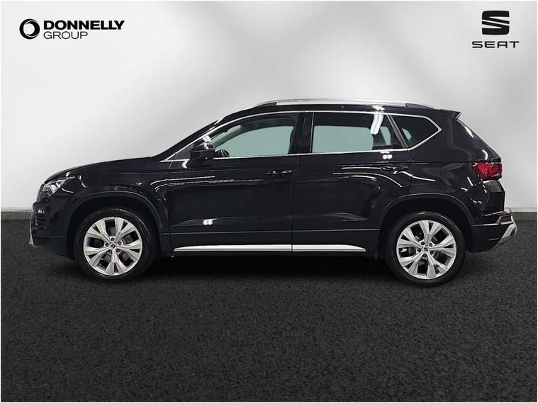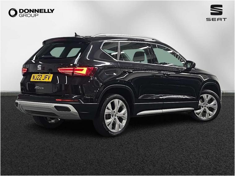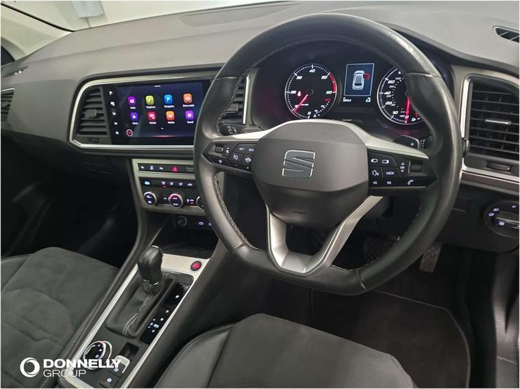 E-call, Outside temperature gauge, Progressive power assisted steering, Rear view camera, SEAT drive profile with driving experience button - Normal, Sport, Eco and Individual mode, gearshift, steering and throttle response, Self parking functionality (includes front and rear parking sensors), Trip computer, Wireless full link smartphone integration, Wireless phone charger, Steering wheel mounted audio/phone controls, Black simulated exhaust pipes, Body colour bumpers, Body coloured wheel arch surrounds, Chrome front grille frame, Chrome roof rails, Chrome side window trim, Dark tinted rear windows, Daytime running lights, Door mirrors with welcome light silhouette, Dynamic headlight range control with self adjusting whilst driving, Electric adjustable/heated/folding door mirrors, Front and rear electric windows, Front grille hot stamping, Full LED headlamps with lens and LED front fog lamps with cornering function, Heated windscreen, Illuminated aluminium front door sill, LED rear tail lights with dynamic indicators, Rear fog lights, Rear side wing doors, Rear wash/wipe, Reflex silver side mouldings, Third brake light, 12V socket in front, 3 seat bench in 2nd row, 60/40 split folding rear seat, Dual zone climate control, Front and rear head restraints, Front centre armrest, Front seat back storage pockets, Height adjustable driver and passenger seat with lumbar adjustment, ISOFIX points in outer rear seats with top tether anchorage points, Leather steering wheel and gear knob, Microsuede upholstery with front comfort seats, Rear armrest and easy back seat release mechanism from boot, Single front passenger seat, Steering wheel mounted gearshift paddles, Storage compartment under driver's seat, Convenience pack - Ateca, Interior lighting pack - Ateca, Navigation system pack with DAB - Ateca, Safe and driving pack - Ateca, 3x3 point rear seatbelts, ABS, Traction control system (TCS), Electronic stability control (ESC) and Electronic differential lock system (XDS), Airbags - Driver and front passenger airbag with deactivation, front side, two curtain and driver's knee airbags, Electric parking brake with auto hold function, Front and rear seatbelt reminder, Hill hold control, Manual rear child locks, Tiredness recognition system, Traction control, Tyre pressure monitoring system, Alarm, Keyless entry, Locking wheel bolts, Chrome interior detailing, 18" Brillaint silver alloy wheels,