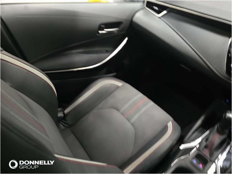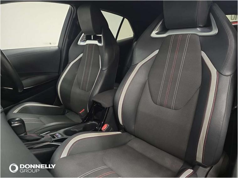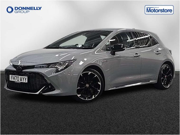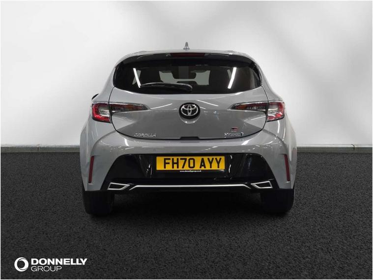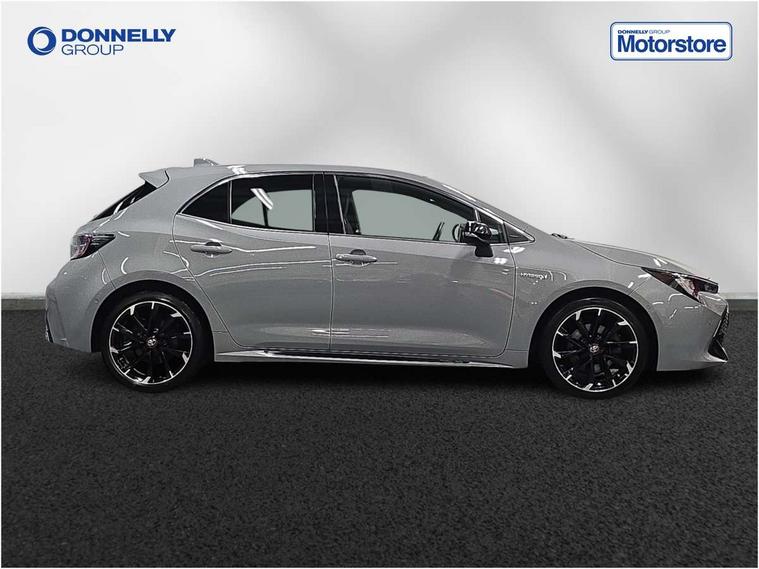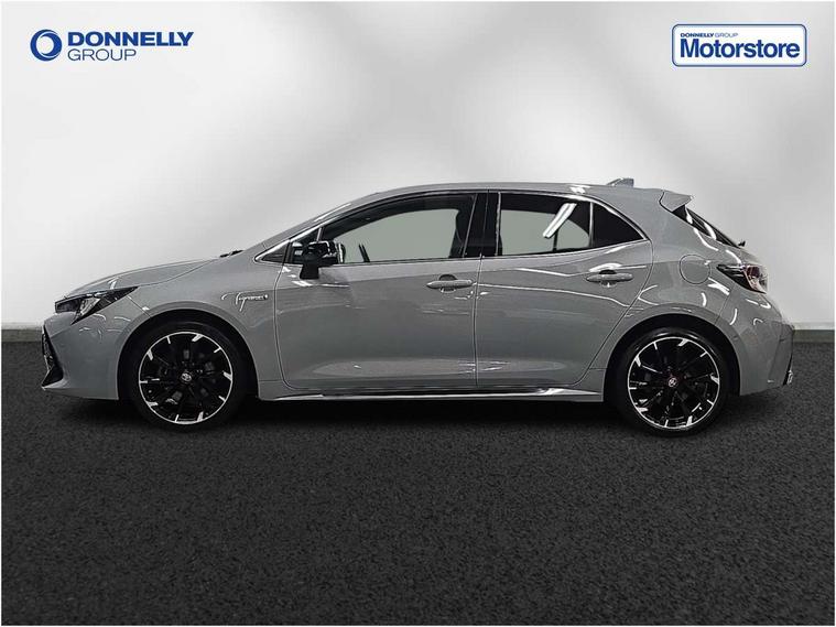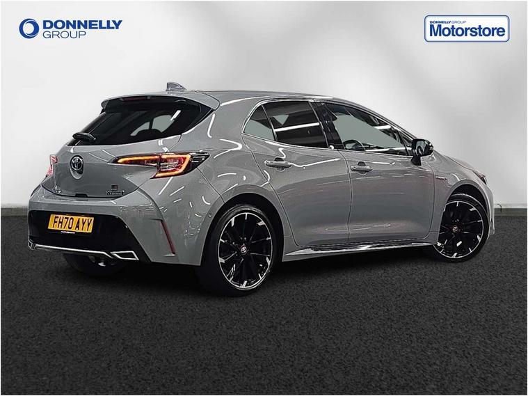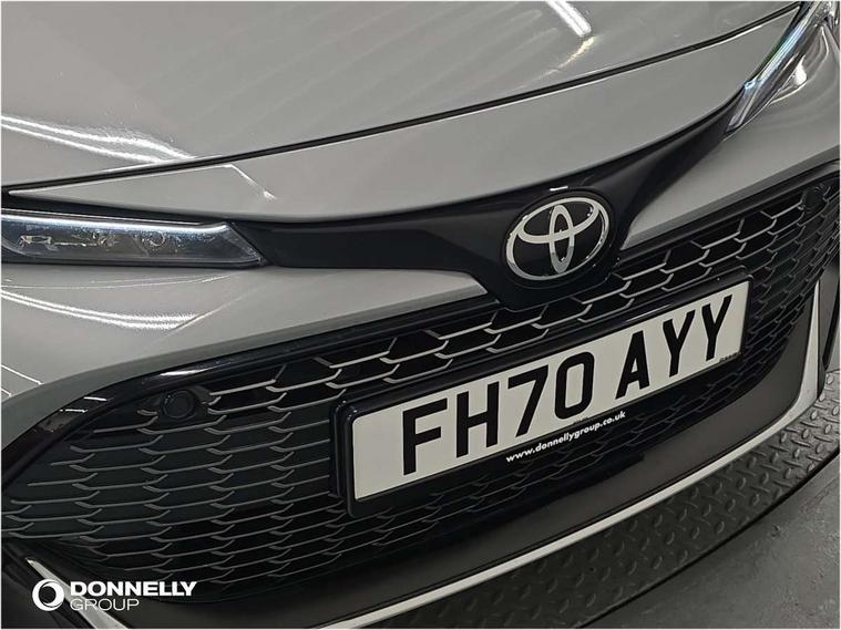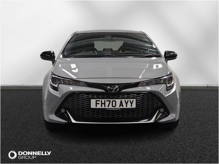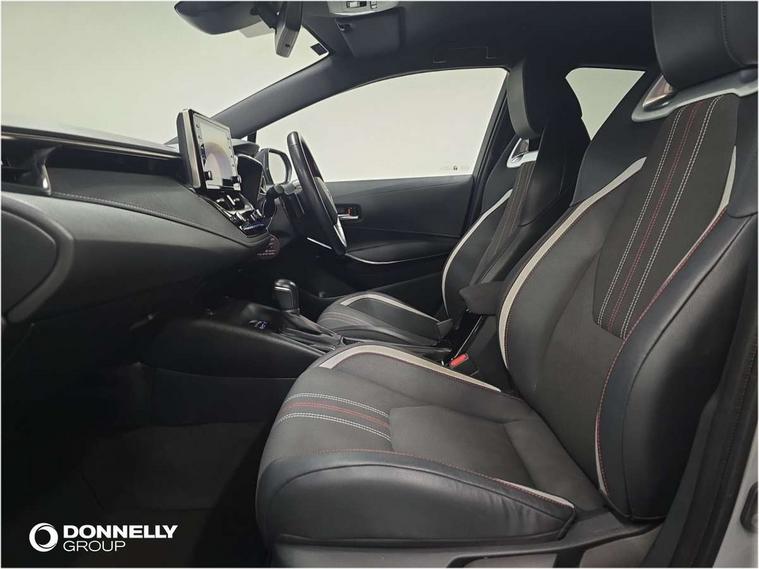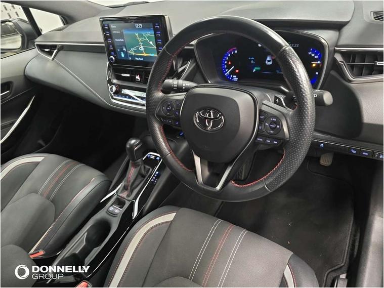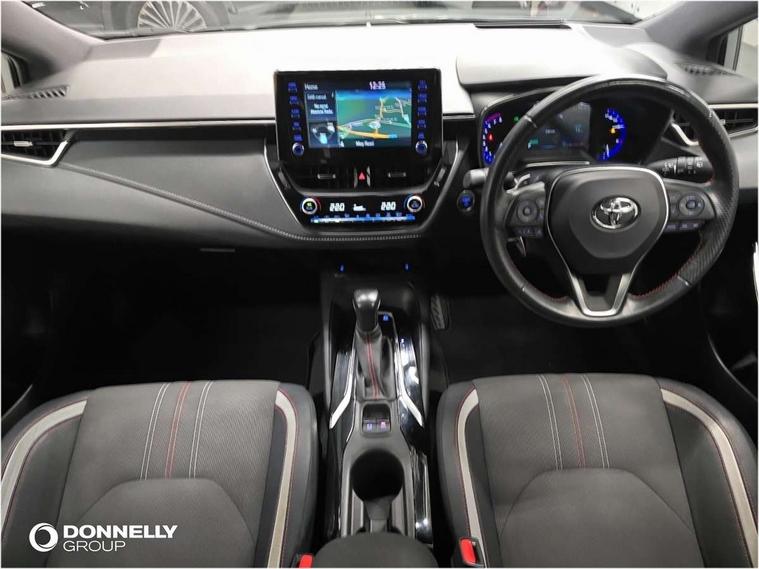 3D Colour multi information display, Bluetooth telephone connectivity, Connected car functionality upgrade, tracker, remote status and e-care, E-call, Electrically assisted power steering, EV drive indicator, Head up Display, Intelligent park assist, Push button start, Reversing camera, Smartphone integration with Apple CarPlay and Android auto, Speed limiter, Gasoline particulate filter, Vehicle Stability Control (VSC), 2 ring combimeters with 7" colour TFT screen, 6 speakers, 8" Touchscreen with MM19 Multimedia system and voice recognition, AM/FM radio, DAB Digital radio, Toyota touch 2 with go navigation system, USB and Aux in connectors + 12V front outlet, Anti-jam protection on power windows, Auto dimming inside rear view mirror, Auto up and down function on all power windows, Automatic folding mirrors, Automatic headlights with high beam assist, Black toyota logo in front, Body coloured bumpers, Body coloured outside door handles, LED daytime running lights, LED front fog lights, LED Headlights, LED rear combi lights with LED lightguide, Power adjustable heated door mirrors, Power front windows, Power rear windows, Privacy glass, Rain sensing wipers, Rear window wiper, Reverse tilting door mirrors, Shark fin antenna, Unique lower skirt, Unique piano black surround and hot stamping grille finish, Unique side rocker with black insert, 3 rear headrests, 3 spoke leather steering wheel + gear knob, Alcantara/partial leather upholstery, Clean air filter, Dual zone automatic air conditioning with ECO mode switch, Front head restraints, Heated seats, ISOFIX seat fixing (2 fixings on rear outer seats), Pollen filter, Power lumbar support, Steering wheel switches, Tilt/telescopic steering column, WIL - Whiplash Injury Lessening seats, Parking pack - Corolla, Toyota safety sense 2 pack - Corolla, 3x3 point rear seatbelts, Adjustable front driver seat belt extender, Anti lock braking system + Electronic brake force distribution, Brake assist function, Electronic parking brake, Front passenger airbag on/off switch, Front seatbelt reminder, HAC-Hill-start Assist Control, Rear seat belt reminder, Seatbelt pretensioners and force limiters, Supplemental restraint system (SRS) 7 airbags - dual driver, dual side curtain, side impact and driver knee airbags, Traction control, Tyre pressure warning system, Acoustic vehicle alert system (AVAS), Alarm with motion sensor and immobilizer, Remote central locking + deadlocks, Space saver spare wheel, Unique wheel finish with red wheel cap,