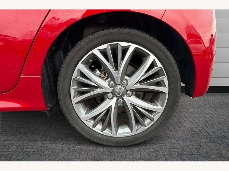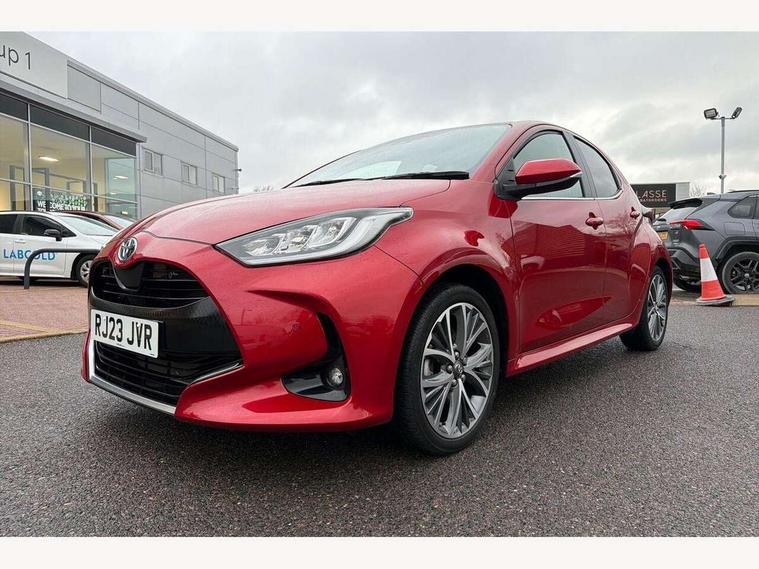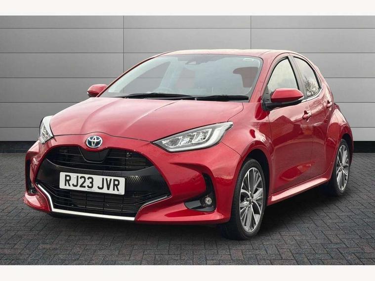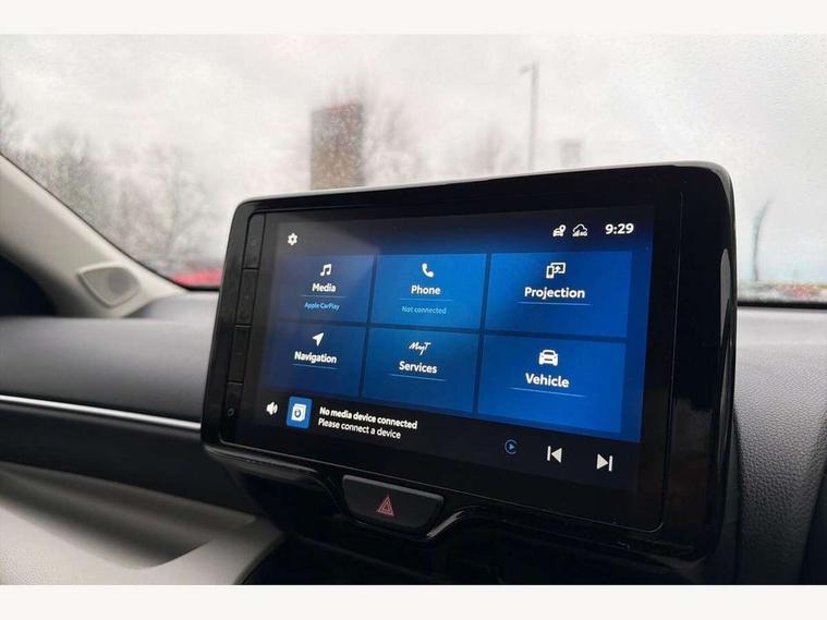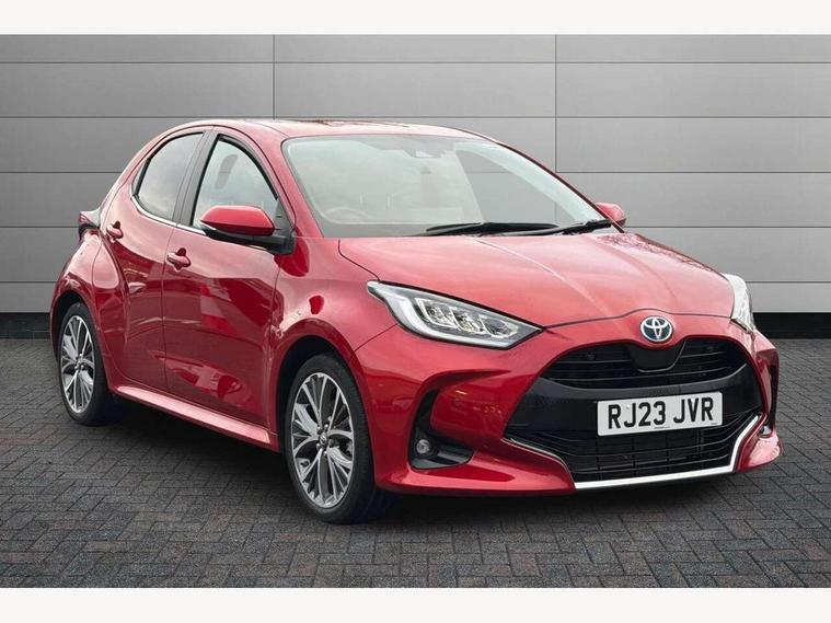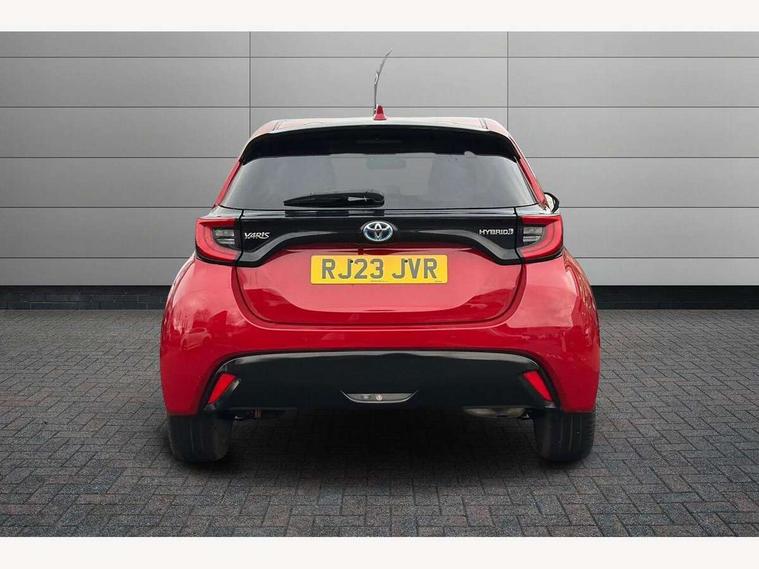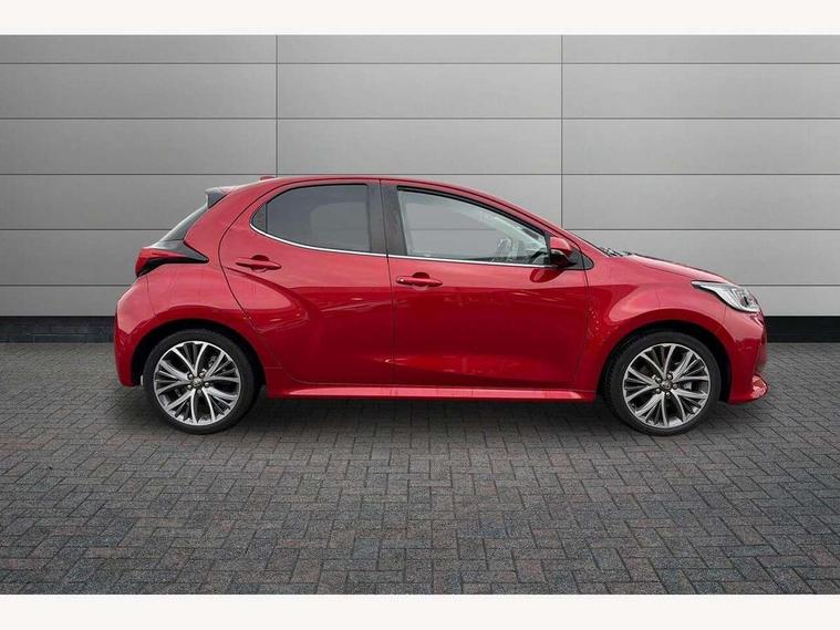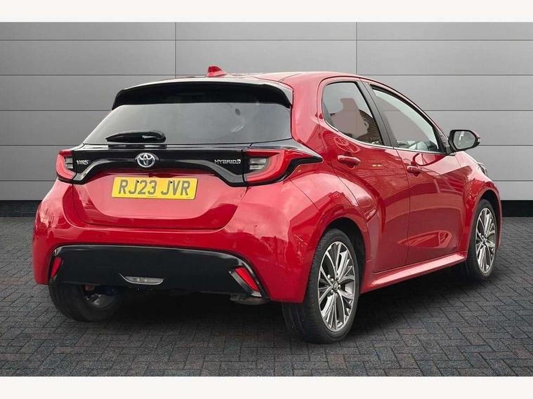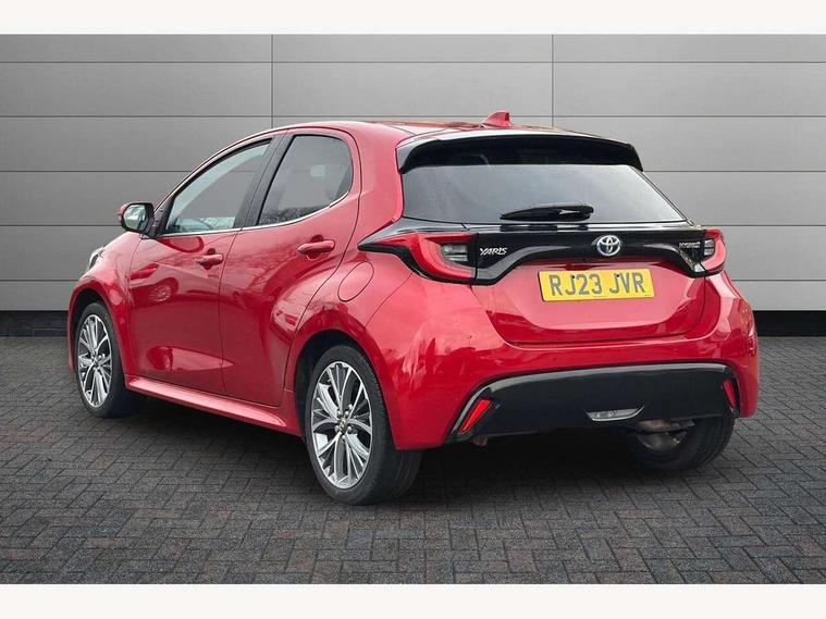 Adaptive cruise control, Adjustable speed limit with speed warning, Blind spot monitoring, Bluetooth connectivity, Colour binocular inspired displays with digital speedometer, E-call, Electric power steering, Hybrid energy display, Multi information display switches on steering wheel, Reversing camera, Smartphone integration with Apple CarPlay and Android auto, Tailgate, Touch 2 navigation system, Voice recognition, Vehicle Stability Control (VSC), 6 speakers, 9" HD multimedia display touch screen with Toyota smart connect, USB connection, Acoustic windscreen glass, Auto windscreen wipers, Automatic headlights, Automatically retractable door mirrors, Body coloured door mirrors, Electric adjustable heated door mirrors, Follow me home headlights, Front auto power windows with anti jam protection, Full LED rear lights, LED daytime running lights, LED front fog lights, LED front light guide, LED Headlights, LED High mounted stop lamp, LED Indicators, LED rear light guide, Manual headlight levelling, Painted chequered front grille, Rain sensor, Rear auto power windows with anti jam protection, Rear privacy glass, Rear side wing doors, Rear spoiler, Rear wiper, Satin lower front grille, Shark fin antenna, Turning signal integrated indicators in door mirrors, Variable front intermittent wipers, 3 adjustable rear headrests, 3 seat bench in 2nd row, 3 spoke leather steering wheel, 60/40 split folding rear seat, Active headrests, Adjustable boot height, Coat hooks in rear grab handles, Cup holders (2 front & door), Data Communication Module (DCM) connected services, Dual zone automatic air conditioning, Fabric seat with partial synthetic leather upholstery, Front armrest, Front sport seats, Glovebox, Grey roof lining, Height adjustable driver's seat, Height adjustable passenger seat, Isofix seat fixing, Leather gearshift, Map pockets on the backs of the front seats, Pollen filter, Shopping bag hooks, Single front passenger seat, Tilt/telescopic steering column, Parking pack - Yaris, 3 point seatbelts on all rear seats, ABS+EBD+Brake assist, Electronic parking brake, Emergency brake light system (EBS), Front passenger airbag on/off switch, Front seatbelt reminder, Hill start assist control (HAC), Rear child proof door locks, Rear seat belt reminder, Supplemental Restraint System (SRS) 8 airbags: Driver & passenger's airbags, dual side curtain airbags, side impact airbags, front centre airbag, Toyota Safety Sense 2, Precollison + Night time Pedestrian & Cyclist Detection, Lane Trace Assist, Auto High Beam, Intelligent ACC & Road Sign Assist, Tyre pressure warning system, 2x Master key, Alarm/immobiliser, Keyless smart entry with push button start, Remote AC via MyT, Remote locking via MyT, Remote powered central double locking doors, Satin chrome interior styling, Soft touch instrument panel, Space saver spare wheel,
