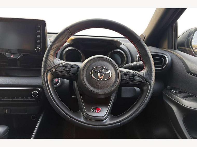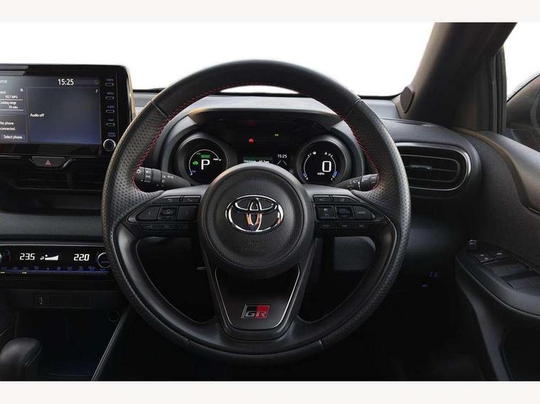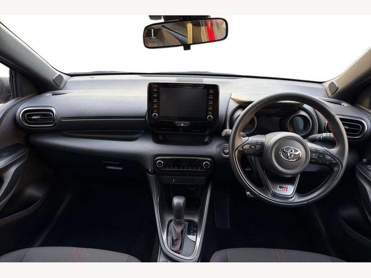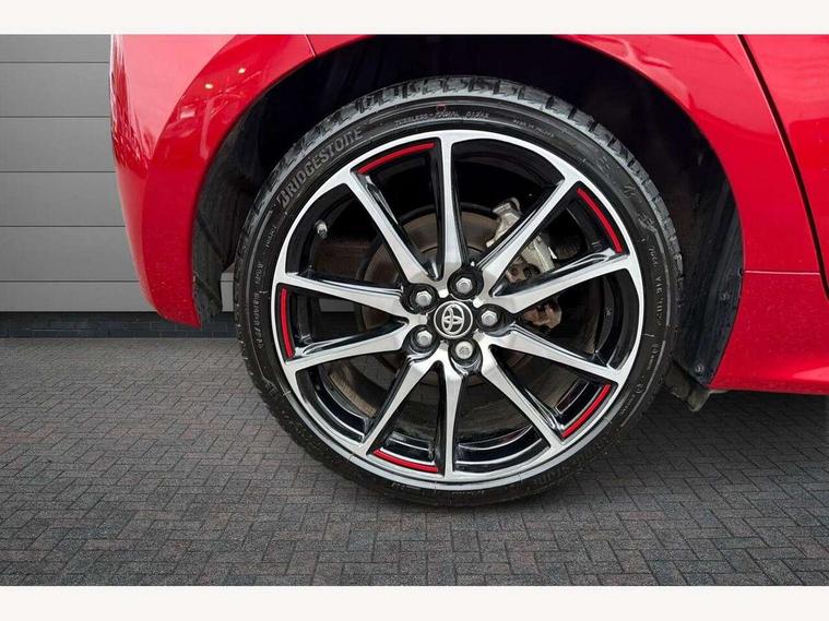 Adaptive cruise control, Adjustable speed limit with speed warning, Bluetooth connectivity, Colour binocular inspired displays with digital speedometer, E-call, Electric power steering, Hybrid energy display, Multi information display switches on steering wheel, Reversing camera, Smartphone integration with Apple CarPlay and Android auto, Tailgate, Voice recognition, Vehicle Stability Control (VSC), 6 speakers, 8" Multimedia display touch screen, Toyota Touch 2 with DAB, USB connection, Acoustic windscreen glass, Auto windscreen wipers, Automatic headlights, Body coloured door mirrors, Dark chrome lower front grille, Electric adjustable heated door mirrors, Follow me home headlights, Front auto power windows with anti jam protection, Full LED rear lights, LED daytime running lights, LED front fog lights, LED front light guide, LED Headlights, LED High mounted stop lamp, LED Indicators, LED rear light guide, Manual headlight levelling, Painted chequered front grille with hot stamp in mesh design, Rain sensor, Rear auto power windows with anti jam protection, Rear privacy glass, Rear side wing doors, Rear spoiler, Rear wiper, Shark fin antenna, Turning signal integrated indicators in door mirrors, Variable front intermittent wipers, 3 adjustable rear headrests, 3 seat bench in 2nd row, 3 spoke leather steering wheel, 60/40 split folding rear seat, Active headrests, Adjustable boot height, Black roof lining, Coat hooks in rear grab handles, Cup holders (2 front & door), Data Communication Module (DCM) connected services, Dual zone automatic air conditioning, Fabric upholstery with red stitching, Front armrest, Front sport seats, Glovebox, Height adjustable driver's seat, Height adjustable passenger seat, Isofix seat fixing, Leather gearshift, Map pockets on the backs of the front seats, Pollen filter, Shopping bag hooks, Single front passenger seat, Tilt/telescopic steering column, 3 point seatbelts on all rear seats, ABS+EBD+Brake assist, Electronic parking brake, Emergency brake light system (EBS), Front passenger airbag on/off switch, Front seatbelt reminder, Hill start assist control (HAC), Rear child proof door locks, Rear seat belt reminder, Supplemental Restraint System (SRS) 8 airbags: Driver & passenger's airbags, dual side curtain airbags, side impact airbags, front centre airbag, Toyota Safety Sense 2, Precollison + Night time Pedestrian & Cyclist Detection, Lane Trace Assist, Auto High Beam, Intelligent ACC & Road Sign Assist, Tyre pressure warning system, 2x Master key, Alarm/immobiliser, Keyless smart entry with push button start, Remote AC via MyT, Remote locking via MyT, Remote powered central double locking doors, GR Sport interior styling with accents and exterior styling, Piano black interior trim, Soft touch instrument panel, 18" machined face alloy wheels with GR Sport red deco lines, Space saver spare wheel,