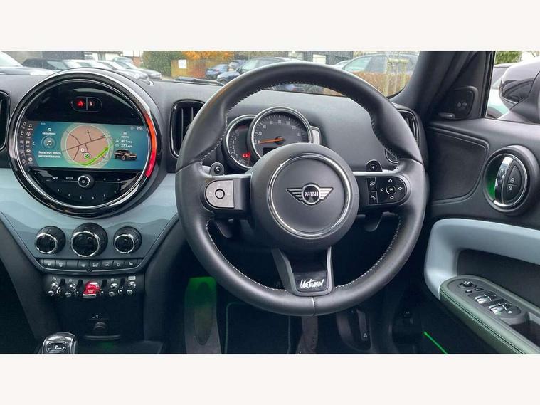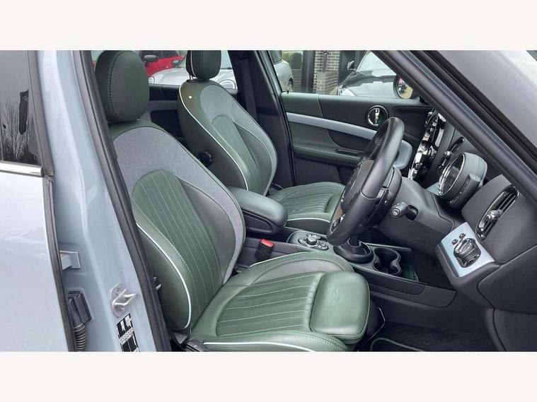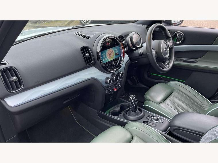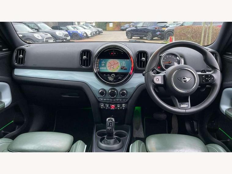 Active Guard incl speed limiting and lane departure functions with auto steering, and front collision warning with brake intervention, Automatic start/stop function with brake energy recuperation, Compatible mobile phone bluetooth with audio streaming, Cruise control with brake assist, Electro-mechanical speed dependant steering assistance, Instrument cluster, Mini E-call, On board computer, Rear parking distance control, 51 Litre fuel tank, Double Vanos system, Fully variable valve control, High precision injection, Performance Control, Steptronic sport transmission with double clutch and steering wheel paddles, FM tuner and DAB digital radio, 3rd brake light, Black roof and mirror caps, Black roof rails, Body colour fuel filler cap, Body colour lower air intake surround, front apron air inserts, side skirts, reflector inserts and rear apron lower insert, Bonnet scoop, Day time driving lights, Door trim strips in metallic arctic silver and air vents surround in high-gloss black, Dynamic brake lights, Electric windows, Four diagonal stripes on the bottom of the doors in frozen bluestone, Heated rear window, Heated windscreen washer jets, LED fog lights, LED Headlights, Metallic paint, MINI ALL4 body colour exterior styling, MINI logo on bonnet and tailgate with momentum grey inserts, Model logo, Model logo on Tailgate, Rain sensor with auto headlights, Rear fog lights, Rear side wing doors, Rear window wiper, Side scuttle panel with integrated indicator, Split rear doors, Sun/heat protection glass, Untamed graphics on vehicle side, Untamed rear side window sticker, Untamed side scuttle, White indicator lenses, 12V socket in centre console, 3 seat bench in 2nd row, 360L luggage compartment capacity, 4 lashing eyes in luggage compartment, 40:20:40 split folding rear seats, Accent strips in the cockpit and on the centre console in metallic frozen blue, Anthracite headlining, Chrome interior highlights, Colour line - Carbon black with highland green armrest, Cupholders, English handbook, Front headrests, Glove compartment, Height and length steering column adjustment, Illuminated interior surface, Interior lighting with 12 basic colours selectable via toggle switch in roof, Isofix rear child seat preparation, Large graphic motif, Leather gearshift lever and handbrake gaiters, LED reading lights, vanity mirror lights, front foot well light and spotlight on front seats, Manual air conditioning, MINI Yours lounge leather upholstery with sports seats, Multifunction steering wheel, Nature inspired shades of green and blue dominate the interior design, Rear headrests, Single front passenger seat, Storage compartments in doors, Sunvisors with vanity mirrors, Untamed entry sills, Untamed floor mats, Untamed lettering in seat, Untamed nappa sports leather steering wheel with Untamed lettering in the bottom, Visible Untamed lettering in night design, Excitement pack - Countryman, Lights pack - Countryman, Navigation pack - Countryman, Piano black exterior pack - Countryman Cooper S/SD/SE/Boardwalk, 2 tone horn, 3 point seatbelts on all seats, 6 Airbags - front, side, head and seat belt tensioners, Anti-lock braking system (ABS), DSC - Dynamic Stability Control, Electronic handbrake, Front and rear disc brakes, Hill start assist, Manual rear child locks, Tyre pressure monitoring system, Alarm system with tilt sensor, monitoring doors, bonnet interior and tailgate, Auto drive away locking, Deadlocking function, Electronic vehicle immobiliser, Locking wheel bolts, Start/stop toggle with keyless go, Frozen bluestone illuminated decorative trim printed with landscape pattern, Tool kit,