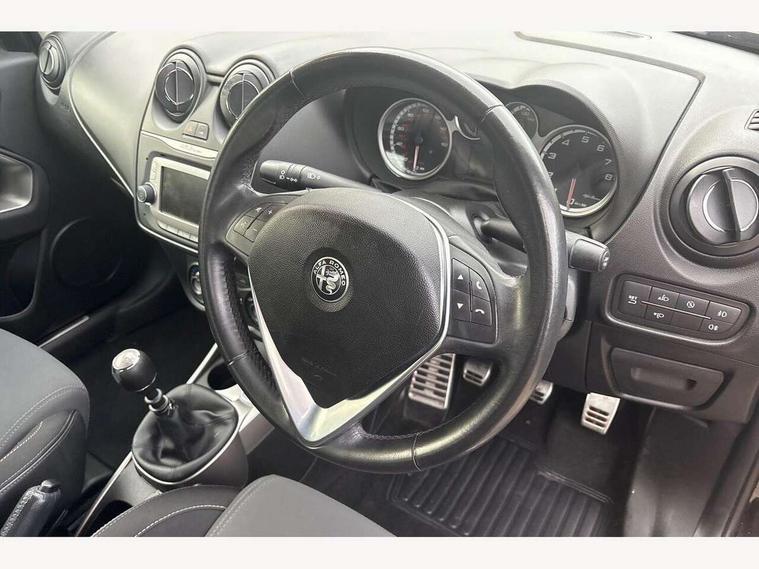 Alfa Romeo DNA controller, Cruise control, External temperature gauge, Multi function display, PAS, Rear parking sensor, Remote control boot opening, Trip computer, Radio/CD + MP3, Adjustable headlights, Automatic headlights, Body colour bumpers, Chrome effect window sills, Chrome exhaust tailpipes, Darkened headlamps, Electric windows one touch open/close, Electrically adjustable and heated door mirrors, Fog lights, Follow me home headlights, Heated rear window, LED tail lights, Rear spoiler, Rear wiper, Satin effect door handles, Satin effect headlight surrounds, Sports rear bumper, Tinted windows, 12V socket, 2 rear head restraints, Adjustable steering wheel, Aluminium kick plate, Aluminium pedals and footrest, Driver + passenger lumbar support, Driver + passenger vanity mirrors, Floor mats, Front armrest with storage box, Front head restraints, Front reading lights, Front seat back storage pockets, Height adjustable driver's seat, Leather steering wheel and gearknob with steering wheel mounted audio controls, Passenger sunvisor, 3 point seatbelts on all seats, Airbags - windowbags, Driver/Front Passenger airbags, Driver/front passenger side airbags, Drivers knee airbag, Front passenger airbag deactivation, Traction control, Tyre pressure monitoring system, VDC with hill holder (ABS + ASR + EBD + Brake assist), Alarm/immobiliser/remote central locking, Deadlocks, Space saver spare wheel,