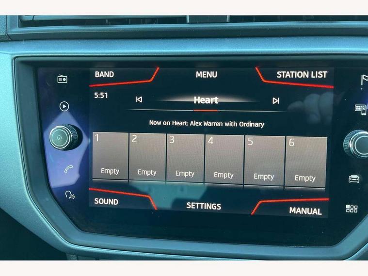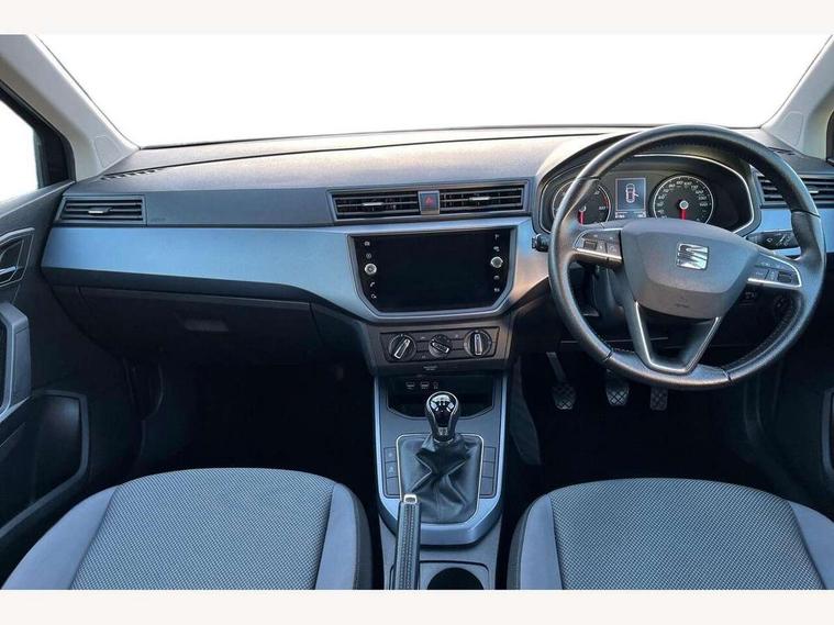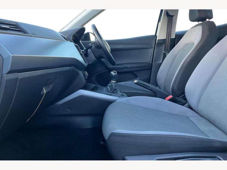 'Lights On' Reminder warning buzzer, Cruise control, Electric speed sensitive power steering, Front assistant collision mitigation, Outside temperature display, Rear parking sensor, Trip computer, Comfort suspension, 6 speakers, Bluetooth interface for hands free and audio streaming, DAB Digital radio, Steering wheel mounted audio controls, Automatic activation of hazard warning lights, Automatic headlights, Black roof rails, Black window surrounds, Body coloured bumpers, Body coloured door handle inserts, Chrome grille surround, Electric adjustable door mirrors, Electric front/rear windows with one touch/auto up/down, Electric headlight adjustment, Front fog lights with static cornering function, LED daytime running lights, Rear window wash/wipe, 2 cupholders, 3 rear height adjustable headrests, 60/40 split folding rear seat, Air conditioning, Ambient interior lighting, Cloth upholstery, Double boot floor, Driver and passenger sunvisors, Driver/front passenger seat height adjustment, Dust/pollen filter, Footwell ambient lighting, Front courtesy lights, Front reading light, Height/reach adjustable steering column, Illuminated boot, Isofix attachments on outer rear seats, Leather handbrake, Leather steering wheel and gear knob, Connectivity pack plus - Arona, 3 point seatbelts on all rear seats, ABS+EBA, Child locks on rear doors, Driver/Front Passenger airbags, Electronic stability control, Front and rear seatbelt reminder, Front side/curtain airbags, Height adjustable active front headrests, Hill hold control + Tyre Pressure monitor, Multi-Collision braking, Passenger airbag deactivate switch, Tiredness recognition system, Traction control, 2 folding remote keys with window open/close function, Immobiliser, Locking wheel bolts, Remote central locking + deadlocks, Interior chrome line trim, 17" Dynamic alloy wheels,