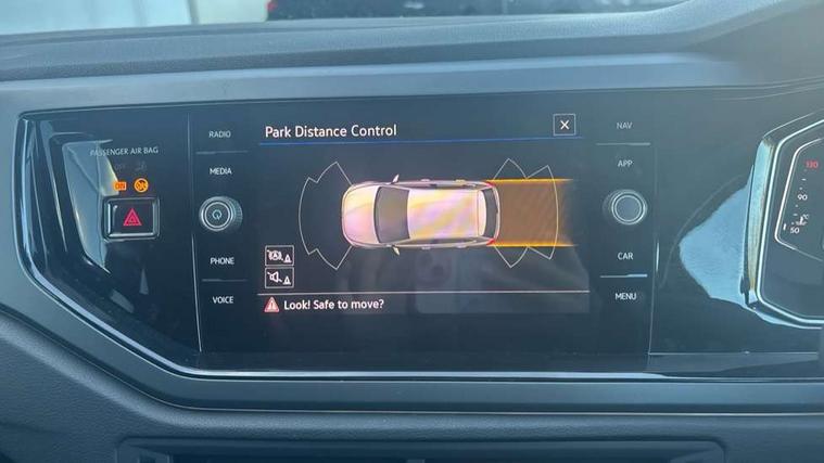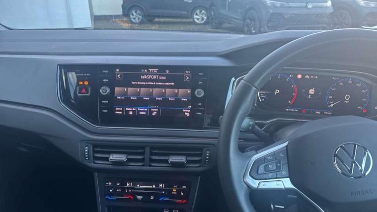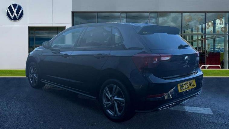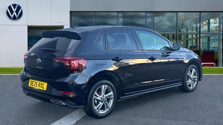 Adaptive cruise control with follow-to-stop and speed limiter, Advanced driver attention and drowsiness monitor, Bluetooth mobile phone interface, Digital Cockpit Pro with 10.25" Display, Dynamic road sign display, Emergency call service, Multifunction camera, Power assisted speed sensitive steering, Preparation for We connect and We connect plus, Speedo and rev counter, electronic odometer, trip, service interval display and fuel gauge, Standard rear axle, Travel Assist - Lane keeping system and traffic jam assist, Travel assist including emergency assist, Trip computer, Warning signal and warning light for front and rear seatbelts not fastened, Washer fluid level indicator, Wireless app connect, Front wheel drive, Rear shock absorpion, Start-stop system with battery regeneration (recuperation - energy recovery during braking), DAB Digital radio, Diversity antenna for FM reception, Front and rear 6 speakers, Body colour bumpers, Body colour door handles, Electric front windows, Front scuff plates with R-Line logo, Heat insulating glass windscreen, Power folding adjustable/heated exterior mirrors and front passenger exterior mirror lowering function, Rear electric windows, Rear fog light, Rear side wing doors, Rear windscreen washer and wiper with interval delay, Third brake light, 12V power socket in centre console, 2 USB-C ports in the front, 2 USB-C charging sockets on the center console in the rear, 3 rear head restraints, 60/40 split folding rear seat and rear seat bench not split, Air care climatronic air conditoning system with active combination filter and 2-zone temperature control, Black roof lining, Carpet mats, front and rear, Chrome plated radiator grille inserts, air vent surrounds and light switch surrounds, Door and side trim panel, Driver and front passenger seat height adjustment, Driver/passenger sunvisors with illuminated vanity mirrors, Front centre armrest, Front footwell illumination, Front seat backrest storage pockets, Front sports comfort seats, Handbrake lever handle in leather, Headliner in recycled material, Isofix child seat preparation easy-fit (for two outer rear seats, and front passenger seat) compatible with I-size, Karoso artvelours cloth upholstery, Leather trimmed gear knob, LED interior light with switch off delay and dimmer, 2 reading lights front and rear, Luggage compartment cover, Luggage compartment floor, Luggage compartment lighting, Lumbar adjustment for front seats, Single front passenger seat, Stainless steel pedals, Standard pedal cluster, Three spoke leather wrapped multifunction steering wheel with shifting paddles, Light and sight pack - Polo R-Line/Black Edition, 3 point height adj front seatbelts + pretensioners, 3x3 point rear seatbelts, ABS, Driver and front passenger airbag with front passenger airbag deactivation, Drivers and front passengers safety optimised head restraints, ESC (Electronic stability control) + EDL (Electronic Differntial lock) and ASR (Traction control), Extended and predictive pedestrian/ cyclist protection, Front curtain and side airbags with center airbag, Front/rear disc brakes, Hill hold control, Manual child lock in rear doors, Single tone horn, Tyre pressure loss indicator, Alarm with interior protection, Anti-theft alarm system with interior monitoring, backup horn, and towing protection, Anti-theft wheel bolts, Electronic engine immobiliser, Chrome applications on rotary light, mirror adjustment, window regulator switches, outlet with frame in black, Dark grey anodised matt decorative inserts in dash and front door panels, 16" Coventry alloy wheels, Low rolling resistance tyres,
