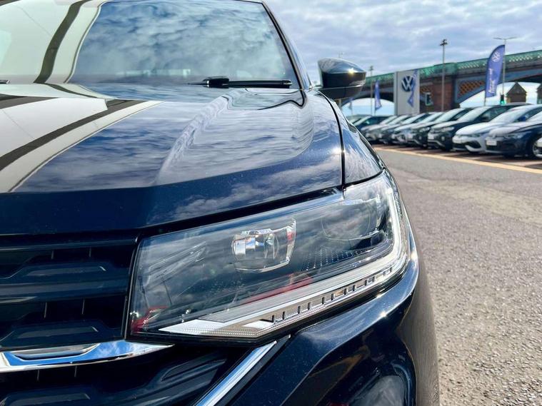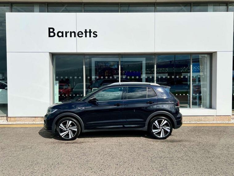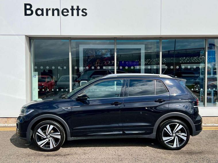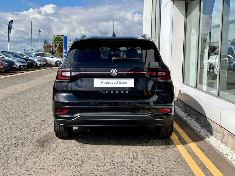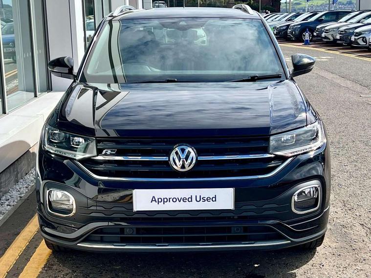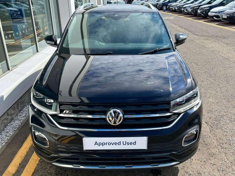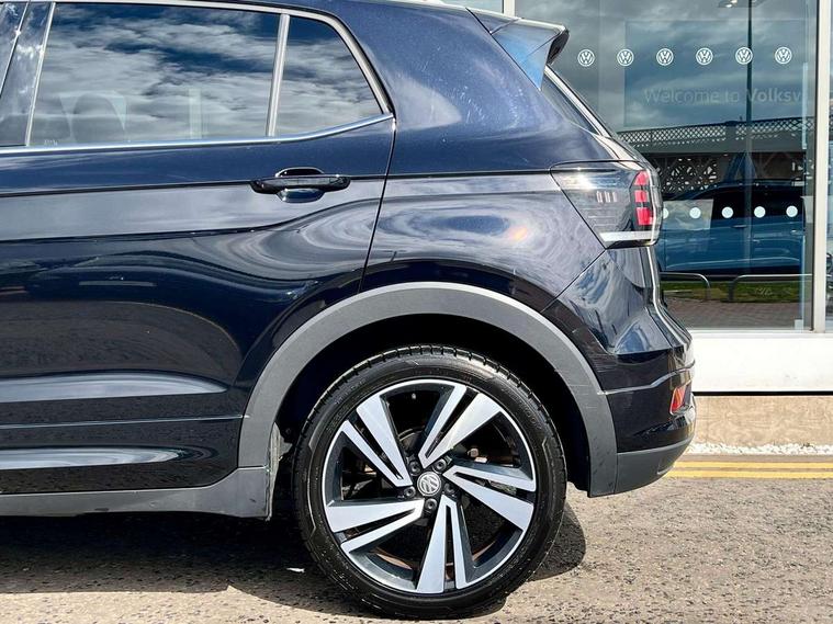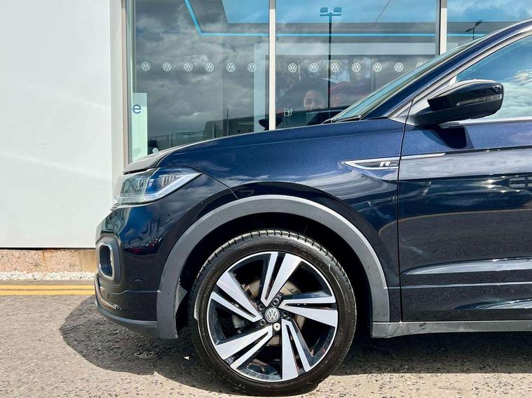 'Lights On' Reminder warning buzzer, 2D/3D map view, Adaptive cruise control including front assist, forward collision warning, autonomous emergency braking, speed limiter, Blind spot monitoring, Bluetooth telephone and audio connection for compatible devices, Car information display, Digital Cockpit Pro - Active info display, Driver alert system, eCall emergency call system, Lane assist, Low washer fluid warning light, Multifunction computer with visual gear change recommendation for fuel consumption, Operating permit alteration, Power assisted speed sensitive steering, Speed limit display, Speedo, rev counter, electronic odometer, trip, service interval display, exterior temperature and fuel gauge, Stop/start system, Warning sound and light for doors and tailgate open, Warning sound and light for front seatbelts unfastened, We connect plus preparation, Wireless Car net app connect with Apple CarPlay, combined functionality of Apple CarPlay/Android Auto and MirrorLink, Battery regeneration during braking, Misfuel prevention device, 2x USB connection with USB charging sockets and in rear centre console, DAB Digital radio receiver, Diversity antenna for FM reception, Multi device interface (MDI) with USB connection, Music playback - MP3, WMA and AAC files, Premium USB cable for Apple or Android smartphone compatibility, Simultaneous pairing of 2 compatible mobile devices, SMS Functionality, Three route options - Fast, Short, Eco, Title and cover art display, Automatic hazard lights activation under emergency braking, Body colour door handles, Body colour door mirrors with integrated indicators, Body colour rear roof spoiler, Body coloured bumpers, Dusk sensor + automatic driving lights, Electrically foldable, adjustable and heated door mirrors with reverse activated kerb view adjustment on passenger's side, Front and rear electric windows, Front fog lights with static cornering function, Galvanised body, Heated rear window, High level 3rd brake light, Lower door sills and door pillars in black, Radiator grille with chrome trim and chrome bezel front fog lamp, Rear fog light on one side, reversing light on both sides, Rear lights incorporating LED technology, Rear tinted glass 65% approx light absorbing from B pillar backwards, Rear window aerial, Rear windscreen washer and wiper with interval delay, Reflectors in all doors, Silver roof rails, Stainless steel door sill protection, Tailgate with integrated roof spoiler, Unique R Line badging, Windscreen wipers/ intermittent wipe + 4 position delay, 12V Accessory socket in centre console, 2 Front and rear reading lights incorporating LED technology, 2 Zone electronic climate control with automatic air recirculation, 3 rear head restraints and 3 rear three point seat belts with ECE label, 60/40 split folding rear seat backrest, Ambient lighting and sourround lighting, Black headlining, Branded points of interest, Brushed stainless steel pedals, Carbon flag cloth upholstery, Drawer under drivers seat, Driver and front passenger sunvisor with vanity mirror, Driver's sunvisor with ticket holder, Dust and pollen filter, Front and rear carpet mats with contrast stitching, Front centre armrest with storage compartment, Front footwell illumination, Front seat back storage pockets, Front seat R Line logo with rear seat backrest, Front sports seat with height and lumbar adjustment, Glovebox, Heating and fresh air system with 4 stage blower, Height/reach adjust steering wheel, Instrument lighting white adjustable panel illumination, Interior light with delay, Isofix child seat preparation for 2 rear child seats, Leather trimmed three spoke multifunction steering wheel with contrast stitching and aluminium inserts with R Line logo, Luggage compartment cover, Luggage compartment lighting, Moveable and foldable Rear bench seat, Scuff plates in door apertures, Steering wheel paddle shift, Storage compartment in drivers and front passengers door, Variable boot floor, R Line styling pack - T-cross, Anti-lock Braking System (ABS) with Hydraulic Brake Assist (HBA), Automatic post collision braking system, Driver and front passenger safety-optimised head restraints, Drivers and Front Passengers airbags with front passengers airbag deactivation switch, ESC with EDL, ASR, EDTC and trailer stabilisation function, Extended and proactive pedestrian protection, Front and rear curtain airbags, Front seat side impact airbags, Height adjustable 3 point automatic front seatbelts with pretensioners, Hill start assist, Pre crash preventive occupant protection, Rigid safety cell with front and rear crumple zones, Single torn horn, Tyre pressure loss indicator, Volkswagen roadside assistance, Alarm with interior protection and deactivation via infotainment system, Child security locks in rear doors, Electronic engine immobiliser, Remote tailgate unlocking using key fob, Race decorative inserts in dash and doors, 18" Nevada black alloy wheels, Breakdown kit,