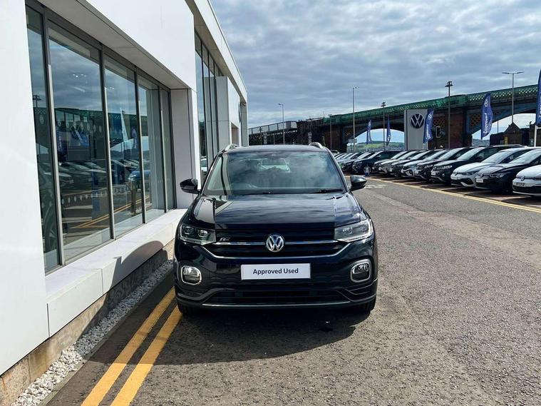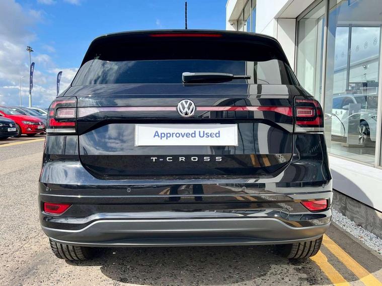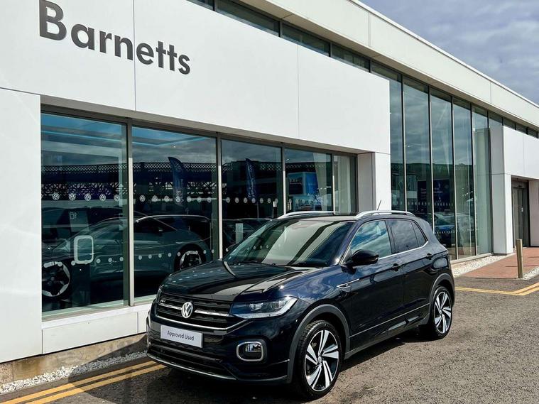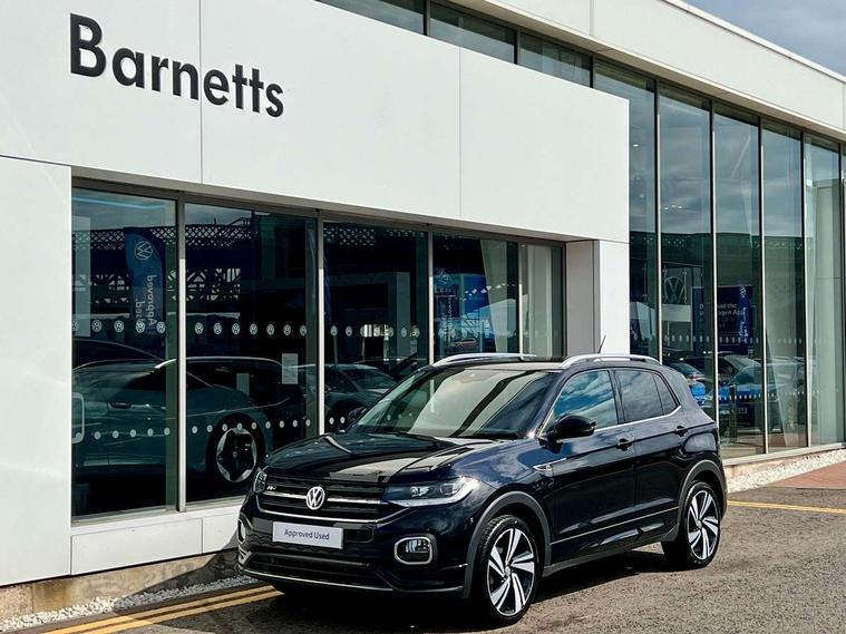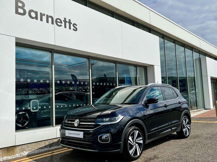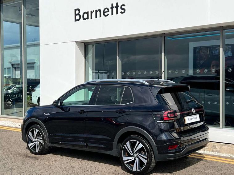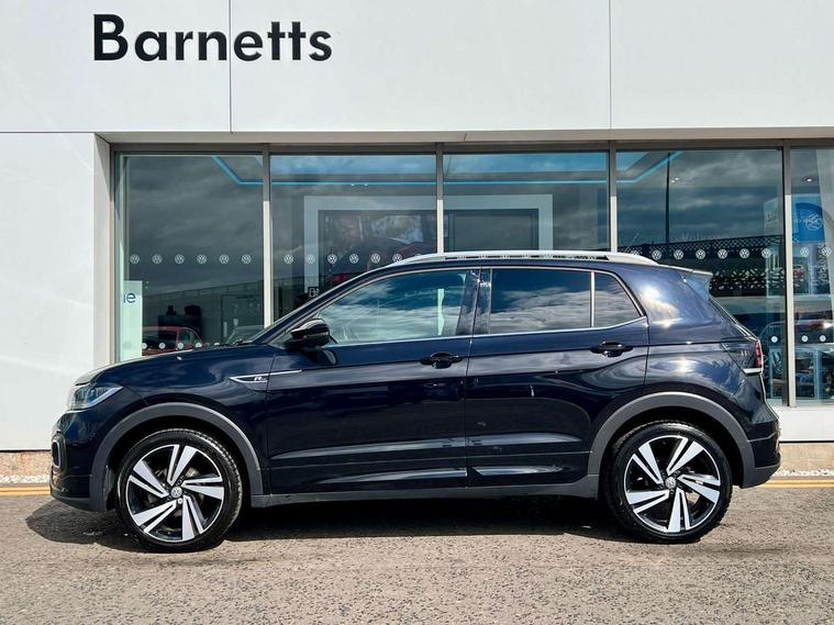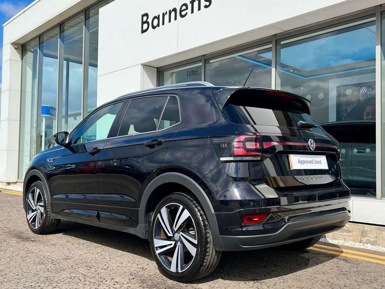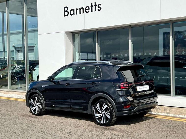 'Lights On' Reminder warning buzzer, 2D/3D map view, Adaptive cruise control including front assist, forward collision warning, autonomous emergency braking, speed limiter, Blind spot monitoring, Bluetooth telephone and audio connection for compatible devices, Car information display, Digital Cockpit Pro - Active info display, Driver alert system, eCall emergency call system, Lane assist, Low washer fluid warning light, Multifunction computer with visual gear change recommendation for fuel consumption, Operating permit alteration, Power assisted speed sensitive steering, Speed limit display, Speedo, rev counter, electronic odometer, trip, service interval display, exterior temperature and fuel gauge, Stop/start system, Warning sound and light for doors and tailgate open, Warning sound and light for front seatbelts unfastened, We connect plus preparation, Wireless Car net app connect with Apple CarPlay, combined functionality of Apple CarPlay/Android Auto and MirrorLink, Battery regeneration during braking, Misfuel prevention device, 2x USB connection with USB charging sockets and in rear centre console, DAB Digital radio receiver, Diversity antenna for FM reception, Multi device interface (MDI) with USB connection, Music playback - MP3, WMA and AAC files, Premium USB cable for Apple or Android smartphone compatibility, Simultaneous pairing of 2 compatible mobile devices, SMS Functionality, Three route options - Fast, Short, Eco, Title and cover art display, Automatic hazard lights activation under emergency braking, Body colour door handles, Body colour door mirrors with integrated indicators, Body colour rear roof spoiler, Body coloured bumpers, Dusk sensor + automatic driving lights, Electrically foldable, adjustable and heated door mirrors with reverse activated kerb view adjustment on passenger's side, Front and rear electric windows, Front fog lights with static cornering function, Galvanised body, Heated rear window, High level 3rd brake light, Lower door sills and door pillars in black, Radiator grille with chrome trim and chrome bezel front fog lamp, Rear fog light on one side, reversing light on both sides, Rear lights incorporating LED technology, Rear tinted glass 65% approx light absorbing from B pillar backwards, Rear window aerial, Rear windscreen washer and wiper with interval delay, Reflectors in all doors, Silver roof rails, Stainless steel door sill protection, Tailgate with integrated roof spoiler, Unique R Line badging, Windscreen wipers/ intermittent wipe + 4 position delay, 12V Accessory socket in centre console, 2 Front and rear reading lights incorporating LED technology, 2 Zone electronic climate control with automatic air recirculation, 3 rear head restraints and 3 rear three point seat belts with ECE label, 60/40 split folding rear seat backrest, Ambient lighting and sourround lighting, Black headlining, Branded points of interest, Brushed stainless steel pedals, Carbon flag cloth upholstery, Drawer under drivers seat, Driver and front passenger sunvisor with vanity mirror, Driver's sunvisor with ticket holder, Dust and pollen filter, Front and rear carpet mats with contrast stitching, Front centre armrest with storage compartment, Front footwell illumination, Front seat back storage pockets, Front seat R Line logo with rear seat backrest, Front sports seat with height and lumbar adjustment, Glovebox, Heating and fresh air system with 4 stage blower, Height/reach adjust steering wheel, Instrument lighting white adjustable panel illumination, Interior light with delay, Isofix child seat preparation for 2 rear child seats, Leather trimmed three spoke multifunction steering wheel with contrast stitching and aluminium inserts with R Line logo, Luggage compartment cover, Luggage compartment lighting, Moveable and foldable Rear bench seat, Scuff plates in door apertures, Steering wheel paddle shift, Storage compartment in drivers and front passengers door, Variable boot floor, R Line styling pack - T-cross, Anti-lock Braking System (ABS) with Hydraulic Brake Assist (HBA), Automatic post collision braking system, Driver and front passenger safety-optimised head restraints, Drivers and Front Passengers airbags with front passengers airbag deactivation switch, ESC with EDL, ASR, EDTC and trailer stabilisation function, Extended and proactive pedestrian protection, Front and rear curtain airbags, Front seat side impact airbags, Height adjustable 3 point automatic front seatbelts with pretensioners, Hill start assist, Pre crash preventive occupant protection, Rigid safety cell with front and rear crumple zones, Single torn horn, Tyre pressure loss indicator, Volkswagen roadside assistance, Alarm with interior protection and deactivation via infotainment system, Child security locks in rear doors, Electronic engine immobiliser, Remote tailgate unlocking using key fob, Race decorative inserts in dash and doors, 18" Nevada black alloy wheels, Breakdown kit,