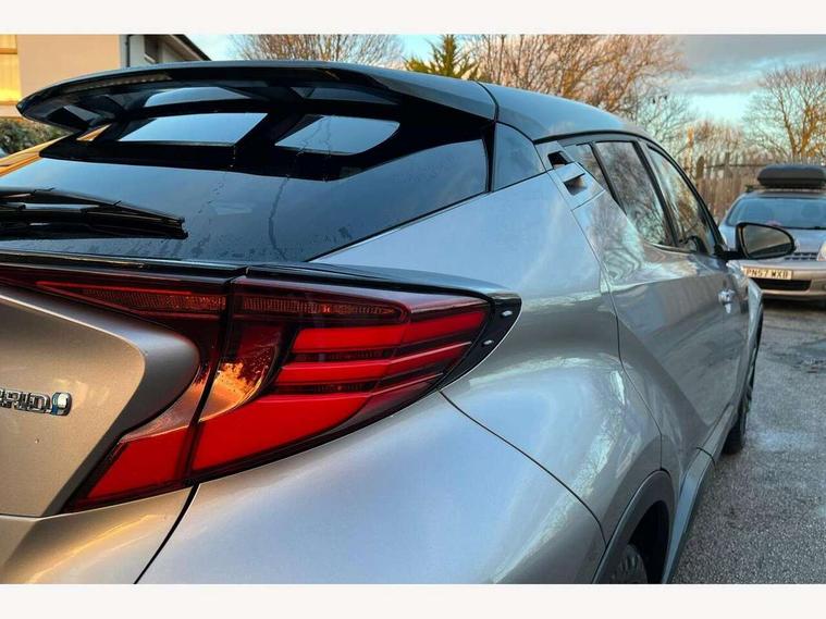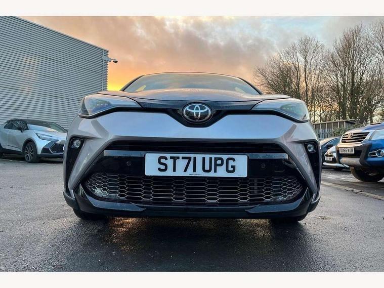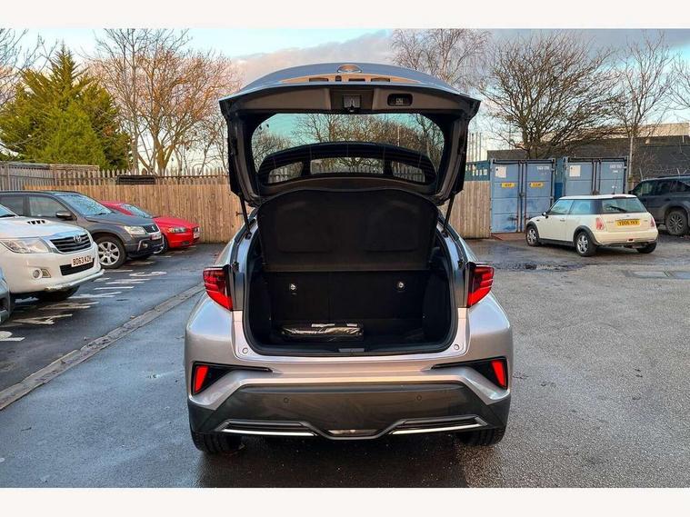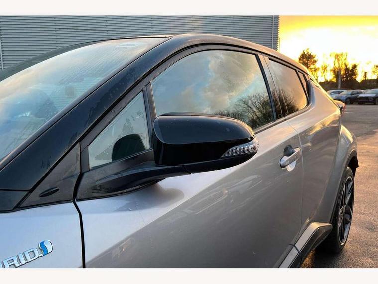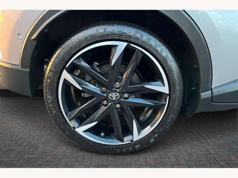4.2" coloured TFT screen for multi-information display, Adaptive cruise control, Bluetooth connectivity, E-call, Electric power steering, Hybrid system indicator, Lane departure alert with steering control, Remote boot door release in cabin, Remote boot door release in key, Reversing camera, Road sign assist - RSA, Simple Intelligent parking assist, Touch 2 Go navigation system, Trip computer, Voice recognition, Vehicle Stability Control (VSC), 6 speakers, AM/FM radio, DAB Radio (Digital Audio Broadcasting), Toyota touch 2 multimedia system with 8" display, USB connector, Wi-fi connectivity, Adaptive front light system, Adaptive LED Headlights, Anti-jam protection on power windows, Auto high beam, Auto up and down function on all power windows, Automatic headlight levelling, Automatic headlights, Automatic headlights cut-off, Black and body coloured rear bumper, Black upper front grille, Body colour door handles, Body colour door mirrors, Body coloured front bumper, Boot door release with push button, Chrome front lower bumper, Electric heated door mirrors, Follow me home headlights, Front and rear power windows, Front spoiler lip in black, Honeycomb lower front grille, LED daytime running lights, LED fog lights, LED front light guide, LED High mounted stop light, LED rear brake lights, LED rear combination lights, Noise reduction layer on front windows and windscreen, Power adjustable door mirrors, Privacy glass, Rain sensor, Rear sequential indicators, Rear side wing doors, Rear spoiler, Rear tailgate, Rear window defogger, Rear window wiper, Shark fin antenna, UV-filter on driver and passenger windows, UV-filter on rear windows, 12v power outlet - front, 3 rear headrests, 3 seat bench in 2nd row, 3 spoke perforated leather steering wheel, 60/40 split folding rear seat, Adjustable rear headrests, Adjustable speed limiter switch on steering wheel, Assist grips front and centre pillar, Audio and telephone switches on steering wheel, Black front door assist grips, Blue ambient lighting on front cup holders, Blue ambient lighting on front doors, Boot light, Chrome interior door handles, Driver and front passenger personal light, Driver and front passenger Whiplash Injury Lessening seats, Driver and passenger seatback pockets, Dual zone automatic air conditioning, Fabric upholstery, Floor mats, Front cupholders, Front head restraints, Front sports seats, Glovebox with internal light, Hard tonneau cover, Heated driver and front passenger seats, Hooks for luggage holding net, Humidifying Nanoe air purifier, Illuminated entry system, Isofix attachments on rear seats, Leather gearshift, Light on driver sun visor, Light on passenger sun visor, Manual telescopic steering wheel, Manual tilt steering wheel, Manually height adjustable driver seat, Manually height adjustable front passenger seat, Manually reclining driver seat, Manually reclining front passenger seat, Manually sliding driver seat, Manually sliding front passenger seat, Microphone on front personal light, Mirror on driver sun visor, Mirror on passenger sun visor, Multimedia switches on steering wheel, Pollen filter, Power adjustable lumbar support on driver seat, Shopping bag hooks, Slow opening on lower glovebox, Voice recognition switch on steering wheel, Tech with parking sensor pack - C-HR, 16 Disk front wheel brake, 3x3 point rear seatbelts, ABS+EBD+Brake assist, Electronic parking brake, Front and rear seatbelt reminder, Front passenger airbag on/off switch, Hill start assist control (HAC), Pre collision system with pedestrian detection, Pre-tensioners and force limiters, Rear door child safety locks, SRS Airbags - Driver + Front passenger, front side, front and rear curtain and driver's knee airbags, Toyota safety sense, Tyre pressure monitoring system, Acoustic vehicle alert system (AVAS), Glass-breaking alarm sensors, Immobiliser, Intrusion alarm, Intrusion sensor, Motion sensor alarm, Power door locks, Power passenger window lock, Remote central locking, Black lower dashboard, Black upper dashboard, Piano black console, Silver deco line on upper dashboard, 19" Black machined alloy wheels, Tyre repair kit,