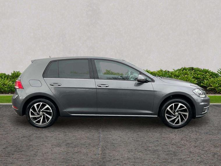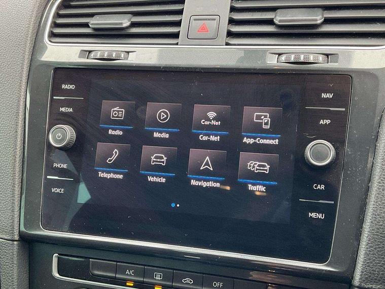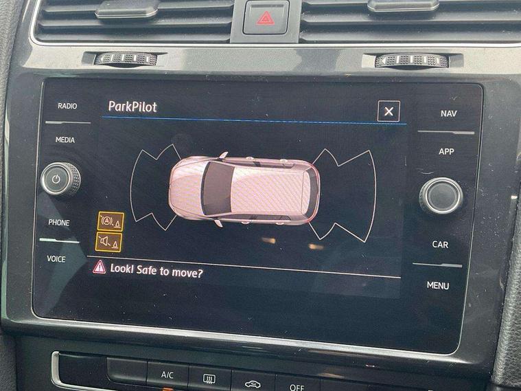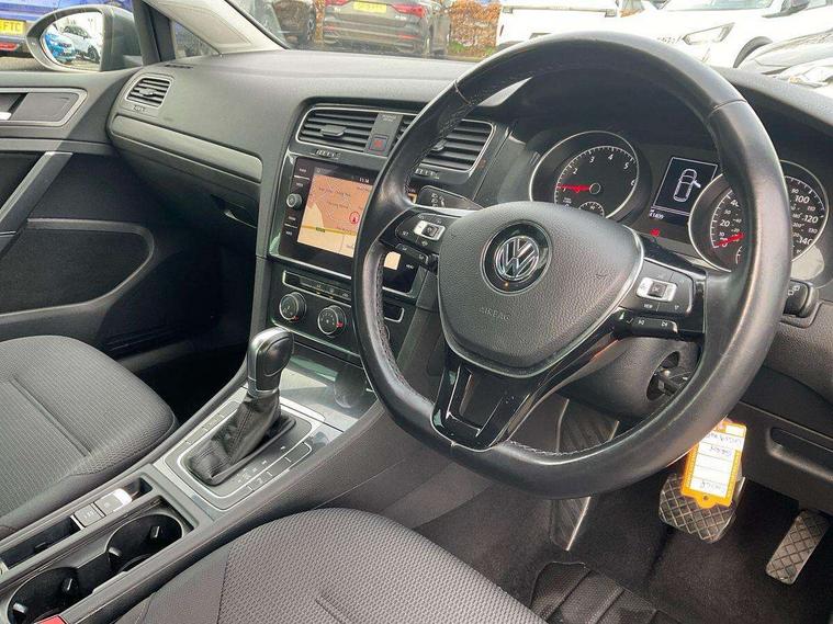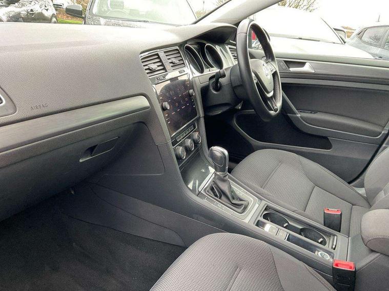 'Lights On' Reminder warning buzzer, ACC - Adaptive cruise control with front assist, forward collision warning, distance monitoring, city emergency brake and speed limiter, Bluetooth telephone and audio connection for compatible devices, Brake pad wear indicator warning light, Driver alert system, Driver profile selection, Driving Mode Selection with four preset modes - Eco, normal, sport or individual modes, Instrument cluster in white, Multifunction computer with visual gear change recommendation for fuel consumption, Power assisted speed sensitive electro-mechanical steering, Push tank flap, Speed limit display, Speedo, rev counter, electronic odometer, trip, service interval display, exterior temperature and fuel gauge, Stop/start system, Warning buzzer and light for front seatbelts unfastened, Battery regeneration during braking, XDS electronic differential lock, Composition media system, DAB Digital radio receiver, MP3/WMA compatability, Multi device interface (MDI) with USB connection, Personalisation 1.1 profile for media, Premium USB cable in choice of either Apple or Android smartphone compatibility, SD card slot, SMS Functionality, USB and SD card connectivity, Black front air intake and radiator grille with chrome insert, Black rear diffuser, Body colour bumpers, Body colour door handles, Body colour door mirrors with integrated indicators, Dusk sensor + automatic driving lights, Electric front windows, Electric rear windows, Electrically adjustable and heated door mirrors, Fully galvanised body, Heated rear windscreen, Hidden exhaust pipe, High level 3rd brake light incorporating LED Technology, LED daytime running lights, LED front fog lights with static cornering light function, Rear fog lamp, Rear tinted glass 65% light absorbing from B pillar backwards, Rear window aerial, Rear window wash/wipe with intermittent wipe, Reflectors in all doors, Tailgate with integrated rear roof spoiler, Windscreen wipers/ intermittent wipe + 4 position delay, 12V socket in luggage compartment, 3 rear headrests, 4 load lashing points in luggage compartment, 60/40 split folding rear seat backrest, Auto fold down lever in rear seat backrest, Bag hook in luggage compartment x 2, Cooled glovebox, Cupholder cover, Dust/pollen filter, Front and rear reading lights incorporating LED technology, Front centre armrest with storage compartment and two rear air vents, Front seat back storage pockets, Grab handles front x 2, rear x 2 with integrated coat hooks, Height and reach adjustable steering wheel, Illuminated vanity mirrors, Instrument lighting white adjustable panel illumination, Interior light delay, Isofix preparation for 2 rear child seats, Load through provision with rear centre armrest and cupholders x2, Luggage compartment lighting, Overhead storage box, Passenger underseat drawer, Pearl grey headlining, Storage box in luggage compartment, Storage compartment in roof console with cover, Storage compartments in centre console, Storage compartments in front doors, Storage compartments in rear doors, Stowable luggage compartment cover, Sun visors, Variable boot floor, height adjustable and removable, Convenience Pack - Golf, Light and Sight pack - Golf, Mirror pack - Golf, 3 rear three point seatbelts, Airbags - Driver's and front passenger's, curtain airbag, Driver's knee, front side impact and passenger's airbag deactivation switch, Anti-lock Braking System (ABS) with Hydraulic Brake Assist (HBA), Automatic post collision braking system, Child locks on rear doors, Driver/Passenger optimised head restraints, Electronic parking brake with auto hold, Electronic stability control (ESC) including Electronic differential lock (EDL) and ASR (Traction control) with deactivation via infotainment system, Pre crash preventive occupant protection, Three point height adjustable front seatbelts with tensioners, Tyre pressure loss indicator, Alarm with interior protection and deactivation via infotainment system, Electronic engine immobiliser, Remote central locking with 2 remote folding keys, Brushed dark silver decorative inserts in dash and door panels, Chrome plated air vent surround, Chrome plated electric mirror adjustment light switch surround, Polar night black centre console, Steel space saver spare wheel,