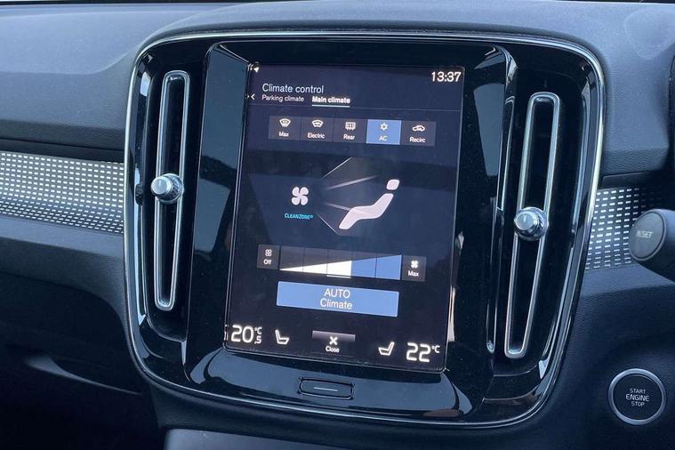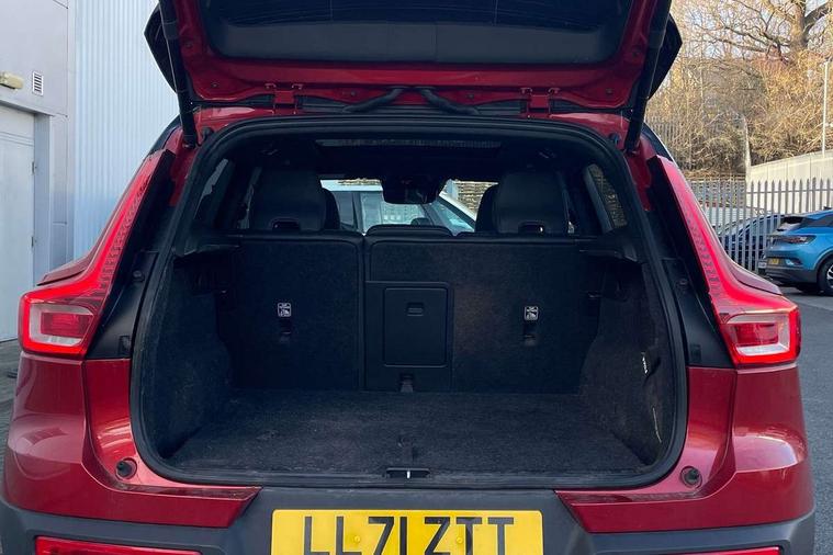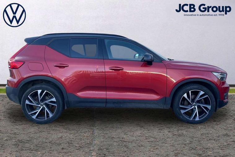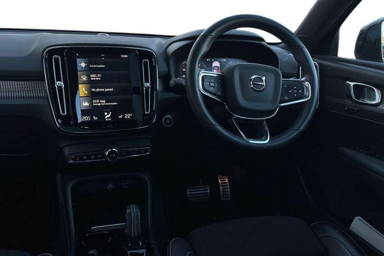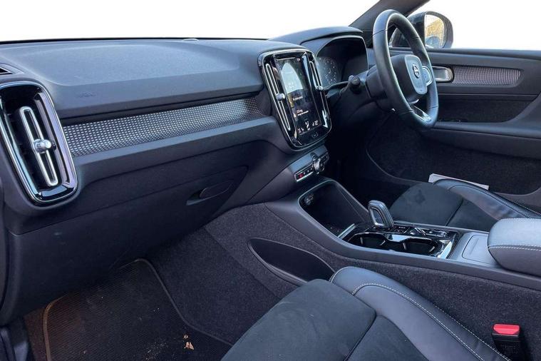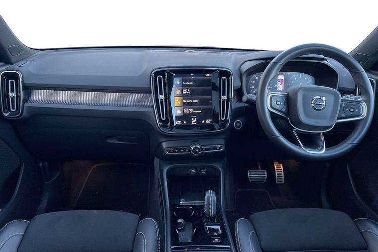 12.3" Active TFT crystal driver's instrument display, 9" centre console portrait touch screen, Adjustable steering wheel force, Bluetooth hands free telephone kit, Drive mode selector, E-call, Lane keep assist with driver alert control, Oncoming Lane Mitigation, Power operated tailgate, Sensus navigation with European mapping and traffic information, Speed limiter, Speed sensitive steering, Voice activated control for key functions, Volvo on call, Sports chassis, DAB Digital radio, Steering wheel mounted remote controls, Adaptive brake lights with high level LED brake lights, Auto dimming interior mirror, Automatic headlamp levelling, Automatic LED Headlights + Active high beam incorporating daytime running lights, Dark tinted windows for rear door side windows and cargo compartment, Electric adjustable/heated/auto folding door mirrors, Front aluminium tread plates, Front and rear electric windows, Heated front windscreen, High gloss black front and rear skid plate, High gloss black lower front bumper, High gloss black mesh front grille with high gloss black surround, High gloss black sensus surround deco, High gloss black window trim, Home safe and approach lighting, Integrated roof rails in high gloss black, Rain sensor with automatic windscreen wiper activation, Rear side wing doors, Rear wiper, Roof antenna, Roof spoiler, Visible VIN plate, 12V socket in front tunnel console and luggage compartment, 2 zone electronic climate control and rear air vent, 3 seat bench in 2nd row, 60/40 versatile split folding rear seat, A-pillar parking ticket holder, Bright metal luggage threshold, Centre console cupholders and storage, Charcoal headlining, Front footwell illumination, Front headrests, Front reading light and theatre lighting, Front seat cushion extensions, Front tunnel net pocket and integrated waste bin, Glovebox bag hook, Heated front seats, Height/reach adjustable steering column, Height/tilt adjustable driver's seat, High gloss centre tunnel deco, Illuminated glovebox, Illuminated luggage compartment, Illuminated vanity mirrors, Isofix attachments on outer rear seats, Leather gearknob, Load protection net, Multi directional lumbar support, Power driver seat with memory + exterior mirrors memory, Rear armrest / integral cup holders / storage tray, Rear coat hook, Single front passenger seat, Sports floor mats, Sports pedals, Sports tailored steering wheel, Underfloor cargo storage, Vanity mirror with ticket holder, Lighting pack - XC40, 3x3 point rear seatbelts, City safety includes pedestrian, cyclist and large animal detection and front collision warning with full auto brake, Drivers knee airbag, Dual stage driver/passenger airbags, Electronic parking brake with auto hold, First aid kit, Front and outer rear seatbelt reminder and pretensioners, Front seats SIPS airbags, Hill descent control, Hill start assist, Inflatable curtain, Passenger airbag cut-off device, Road sign information display, Run off Road Mitigation, Run off Road Protection, SIPS (Side Impact Protection System), Slippery road and hazard light alert, Stability and Traction Control with Spin control, Engine Drag Control and Corner Traction Control, Tyre pressure monitoring system, Vehicle deceleration control with Anti-lock Brake System, Electronic Brake Distribution and Emergency Brake Assist, Warning triangle, WHIPS whiplash protection system - front, Anti-theft alarm including immobiliser/volume sensor + level sensor, Care key with user defined top speed, Key integrated remote control central locking + fuel flap with deadlocking system and auto open/close power windows, Locking wheel nuts, Private locking for tailgate, Cutting edge aluminium inlay, Lower dashboard, tunnel console and door panel in charcoal,
