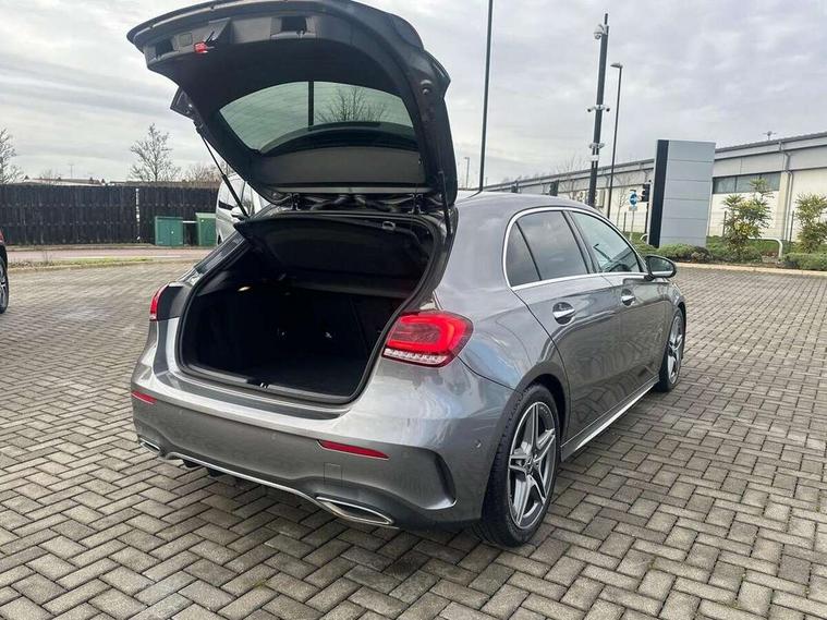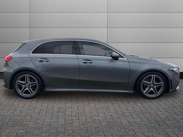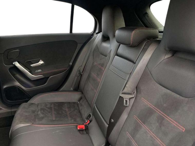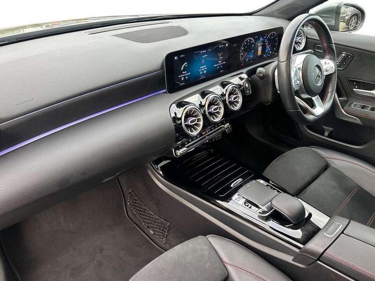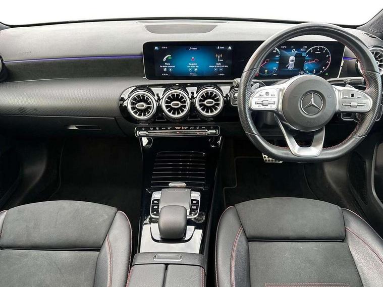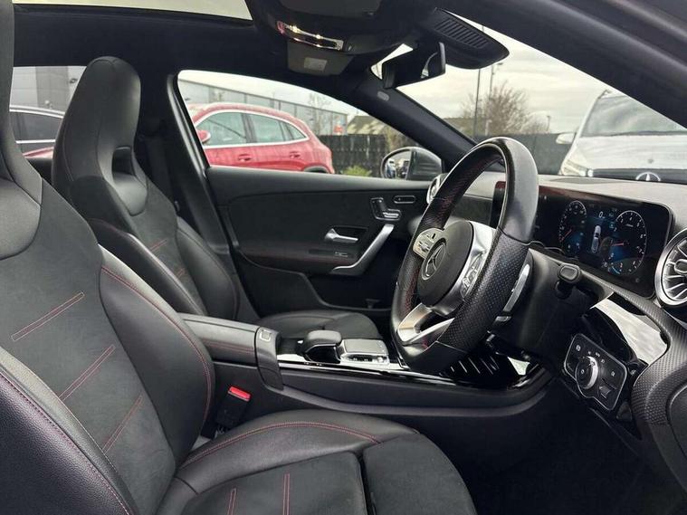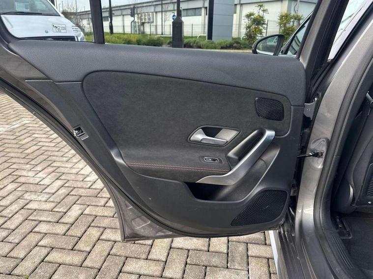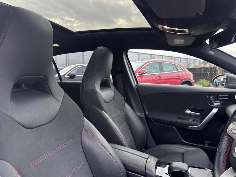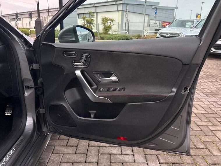 10.25" Digital instrument cluster display screen, 180 degree rear view camera with parking guidelines, Active lane keep assist, Active park assist with parktronic system including front and rear parking sensors, Attention assist, Brake pad wear indicator warning light, Direct steering, Dual bluetooth interfaces, DYNAMIC SELECT with a choice of driving modes (ECO, Comfort, Sport and Individual), ECO start/stop function, Fluid level warning indicator for fuel, oil, coolant and washer fluid, Hard-disk navigation, Hey Mercedes Voice activation, Lamp failure indicator, Mercedes me connect including emergency call system, accident recovery, breakdown and maintenance management, Outside temperature gauge, Owners manual in English, Radio aerial integrated into roof spoiler, Service indicator (ASSYST), Speed sensitive power steering, Trip computer, Lowered comfort suspension, 2 USB ports (type C) in rear stowage compartment and one in front of center console, DAB Digital radio, MBUX multimedia system with DAB digital radio and touchpad including satellite navigation, Mercedes-Benz advanced sound system - 225W, 4 Electric Front and Rear windows, Adaptive brake lights, AMG bodystyling - Front apron with splitter in chrome, rear apron with chrome trim and chrome visible trim elements in tailpipe, Body colour bumpers, Body colour door handles, Body colour side skirt, Body coloured door mirrors, Chrome beltline trim, Diamond radiator grille with chrome pins and silver louvre + chrome insert, Electric adjustable and heated door mirrors with integrated LED side indicators, Exhaust system - Twin visible tailpipes in polished stainless steel, Headlamp assist automatic headlamp activation, Heated glass rear windscreen + timer control, Illuminated front door sill panels with Mercedes-Benz lettering, LED tail lamp, LED third brake light, Multibeam LED with adaptive highbeam assist plus, Panoramic sliding sunroof, Privacy glass, Rain sensing windscreen wipers with two sensitivity settings, Rear fog lights, Rear wiper, Window line trim strip in chrome, 3 Spoke flat bottom leather multi function steering wheel with perforated leather in grip area, 40:20:40 split folding rear seats, Artico man-made leather/Microfibre Dinamica upholstery with red contrast stitching, Auto Mercedes-Benz child seat recognition sensor, Black air vents with surround in silver chrome, Black roof lining, Brushed stainless steel sports pedals with rubber studs, Controller on centre console with chrome surround, Electrically adjustable front memory seats including lumbar support, Floor mats with stitched edging and AMG lettering, Front centre armrest with storage compartment, Front seat backs luggage nets, Front seat cushion length adjustment, Gearshift paddles on steering wheel, Heated front seats, Height/reach adjustable steering column, Interior lighting - 64 colour Ambient lighting, Rear armrest with 2 cupholders, Rear head restraints, Seat occupancy sensor for front passenger seat, Spectacles compartment for driver, Sports seats with integrated headrests, Stowage compartment in centre console with retractable cover, Sunvisors with illuminated vanity mirrors, Touchpad on center console, Twin front cupholders, Two zone thermotronic luxury automatic climate control, Light and sight pack - A Class Premium/Premium Plus, Mirror package - A Class, Seat comfort pack - A Class, 3 rear 3 point seatbelts, ABS with Brake Assist, Active bonnet, Adaptive brake assist with hold function and hill start assist, Black seatbelts, Childproof locks manually operated for rear doors and electrically operated for rear power windows, Crash responsive emergency lighting, Driver and passenger head and side airbags, Drivers knee airbag, Dual stage driver/passenger airbags, Electronic parking brake, ESP curve dynamic assist, ESP with ASR, Front and rear seatbelt reminder, Front brake callipers with Mercedes Benz lettering, ISOFIX and top tether child seat fixing points in two outer rear seats, Tyre pressure monitoring system, Warning triangle and first aid kit, Window airbags, Alarm system/interior protection/immobiliser, Keyless entry lock/unlock, Keyless Go, Remote central locking and crash sensor with emergency opening function, 18" AMG 5 twin spoke light alloy wheels in titanium grey with highsheen finish, Summer tyres, Tirefit sealant kit,