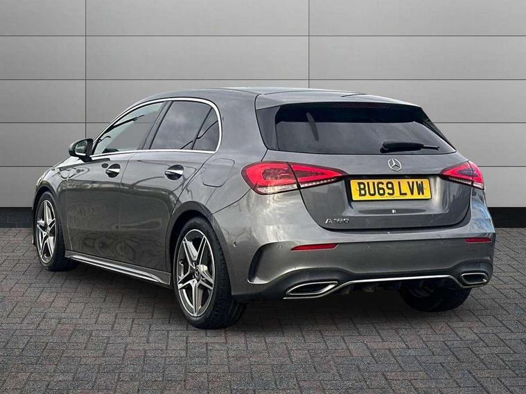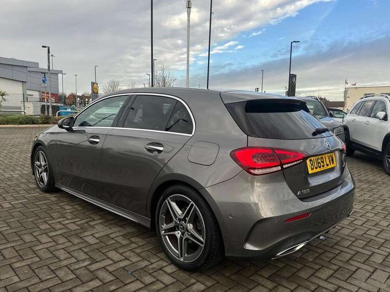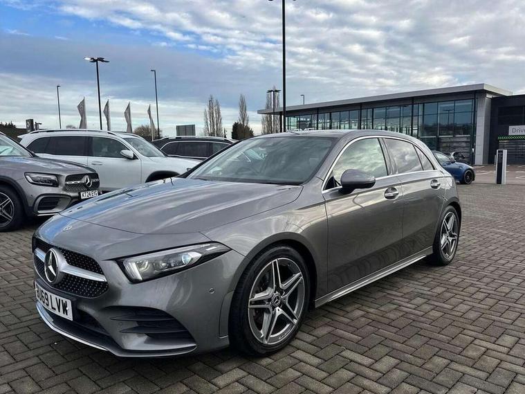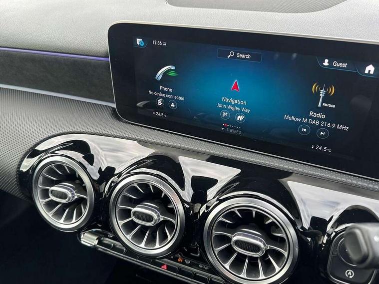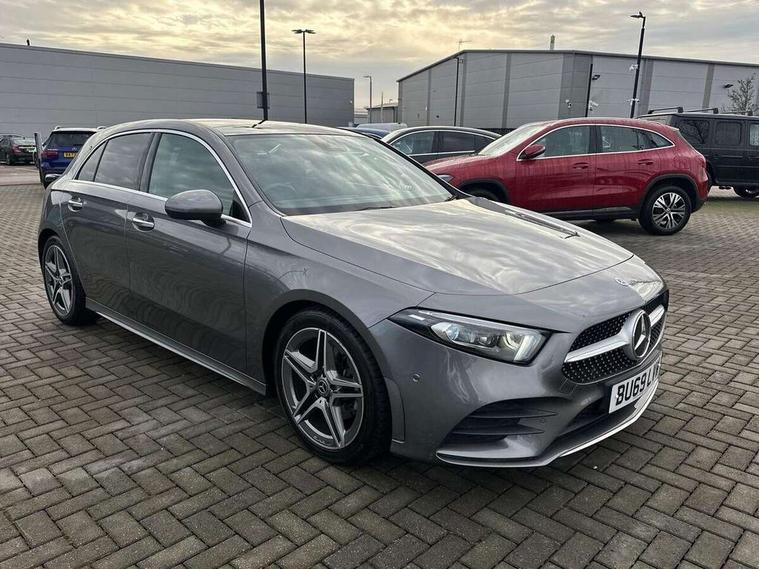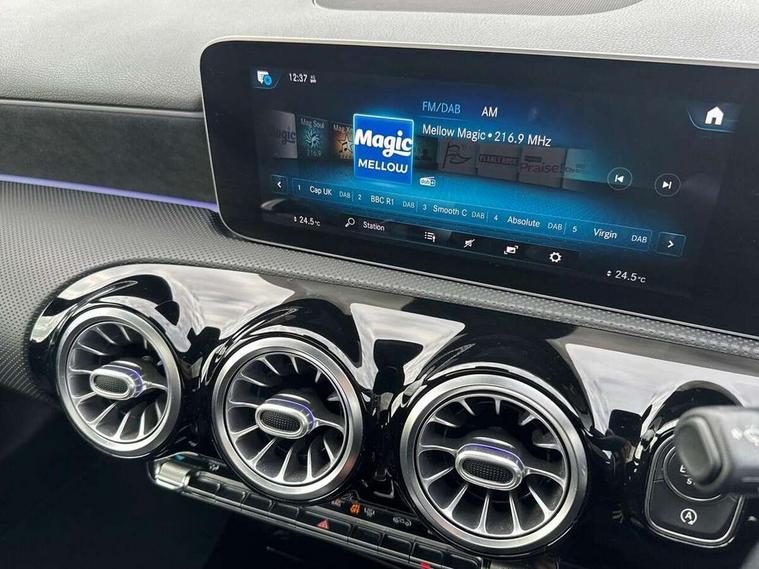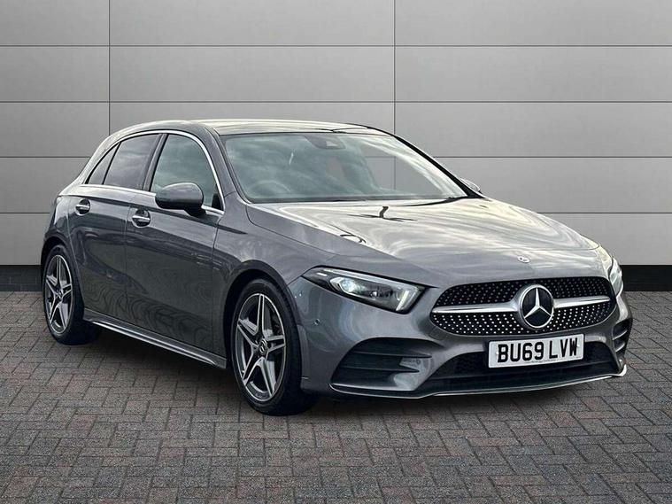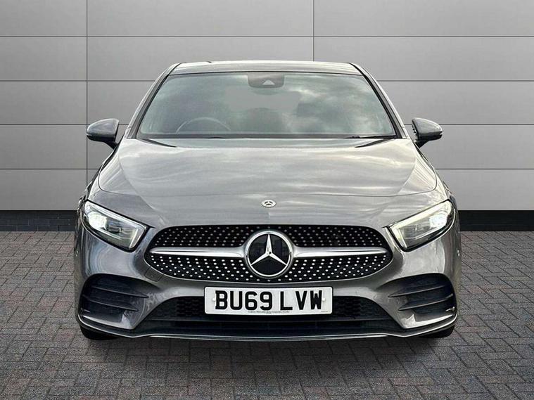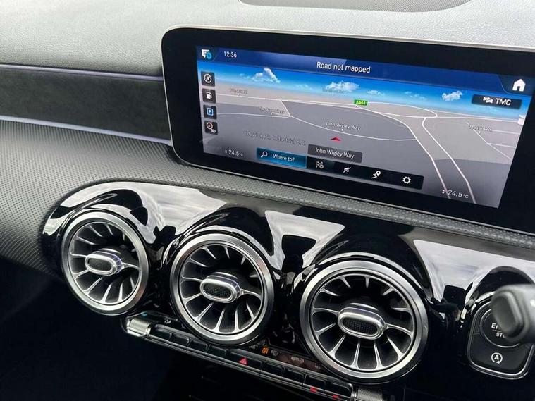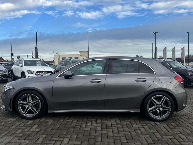 10.25" Digital instrument cluster display screen, 180 degree rear view camera with parking guidelines, Active lane keep assist, Active park assist with parktronic system including front and rear parking sensors, Attention assist, Brake pad wear indicator warning light, Direct steering, Dual bluetooth interfaces, DYNAMIC SELECT with a choice of driving modes (ECO, Comfort, Sport and Individual), ECO start/stop function, Fluid level warning indicator for fuel, oil, coolant and washer fluid, Hard-disk navigation, Hey Mercedes Voice activation, Lamp failure indicator, Mercedes me connect including emergency call system, accident recovery, breakdown and maintenance management, Outside temperature gauge, Owners manual in English, Radio aerial integrated into roof spoiler, Service indicator (ASSYST), Speed sensitive power steering, Trip computer, Lowered comfort suspension, 2 USB ports (type C) in rear stowage compartment and one in front of center console, DAB Digital radio, MBUX multimedia system with DAB digital radio and touchpad including satellite navigation, Mercedes-Benz advanced sound system - 225W, 4 Electric Front and Rear windows, Adaptive brake lights, AMG bodystyling - Front apron with splitter in chrome, rear apron with chrome trim and chrome visible trim elements in tailpipe, Body colour bumpers, Body colour door handles, Body colour side skirt, Body coloured door mirrors, Chrome beltline trim, Diamond radiator grille with chrome pins and silver louvre + chrome insert, Electric adjustable and heated door mirrors with integrated LED side indicators, Exhaust system - Twin visible tailpipes in polished stainless steel, Headlamp assist automatic headlamp activation, Heated glass rear windscreen + timer control, Illuminated front door sill panels with Mercedes-Benz lettering, LED tail lamp, LED third brake light, Multibeam LED with adaptive highbeam assist plus, Panoramic sliding sunroof, Privacy glass, Rain sensing windscreen wipers with two sensitivity settings, Rear fog lights, Rear wiper, Window line trim strip in chrome, 3 Spoke flat bottom leather multi function steering wheel with perforated leather in grip area, 40:20:40 split folding rear seats, Artico man-made leather/Microfibre Dinamica upholstery with red contrast stitching, Auto Mercedes-Benz child seat recognition sensor, Black air vents with surround in silver chrome, Black roof lining, Brushed stainless steel sports pedals with rubber studs, Controller on centre console with chrome surround, Electrically adjustable front memory seats including lumbar support, Floor mats with stitched edging and AMG lettering, Front centre armrest with storage compartment, Front seat backs luggage nets, Front seat cushion length adjustment, Gearshift paddles on steering wheel, Heated front seats, Height/reach adjustable steering column, Interior lighting - 64 colour Ambient lighting, Rear armrest with 2 cupholders, Rear head restraints, Seat occupancy sensor for front passenger seat, Spectacles compartment for driver, Sports seats with integrated headrests, Stowage compartment in centre console with retractable cover, Sunvisors with illuminated vanity mirrors, Touchpad on center console, Twin front cupholders, Two zone thermotronic luxury automatic climate control, Light and sight pack - A Class Premium/Premium Plus, Mirror package - A Class, Seat comfort pack - A Class, 3 rear 3 point seatbelts, ABS with Brake Assist, Active bonnet, Adaptive brake assist with hold function and hill start assist, Black seatbelts, Childproof locks manually operated for rear doors and electrically operated for rear power windows, Crash responsive emergency lighting, Driver and passenger head and side airbags, Drivers knee airbag, Dual stage driver/passenger airbags, Electronic parking brake, ESP curve dynamic assist, ESP with ASR, Front and rear seatbelt reminder, Front brake callipers with Mercedes Benz lettering, ISOFIX and top tether child seat fixing points in two outer rear seats, Tyre pressure monitoring system, Warning triangle and first aid kit, Window airbags, Alarm system/interior protection/immobiliser, Keyless entry lock/unlock, Keyless Go, Remote central locking and crash sensor with emergency opening function, 18" AMG 5 twin spoke light alloy wheels in titanium grey with highsheen finish, Summer tyres, Tirefit sealant kit,
