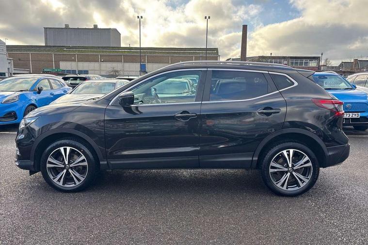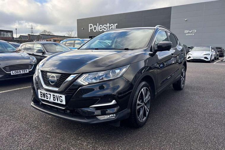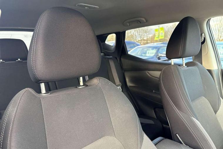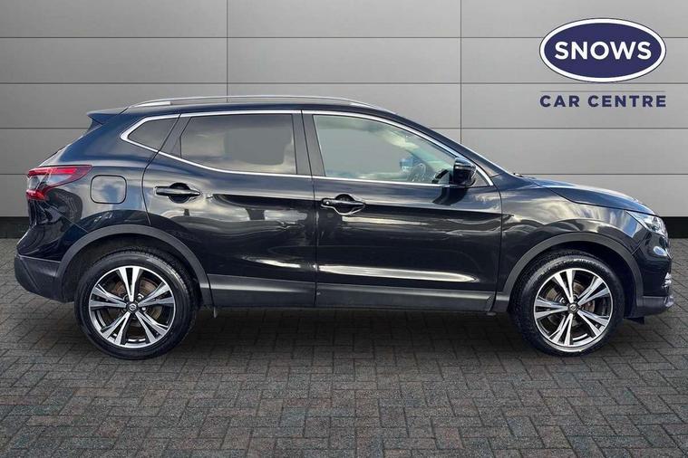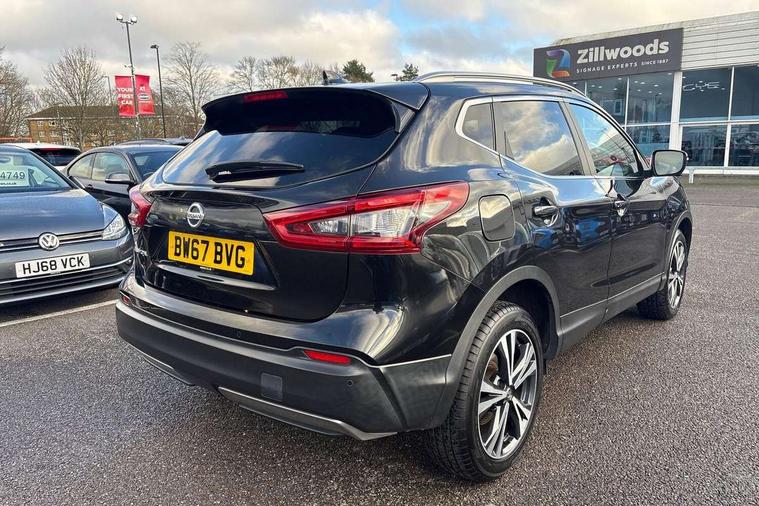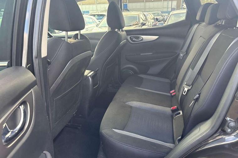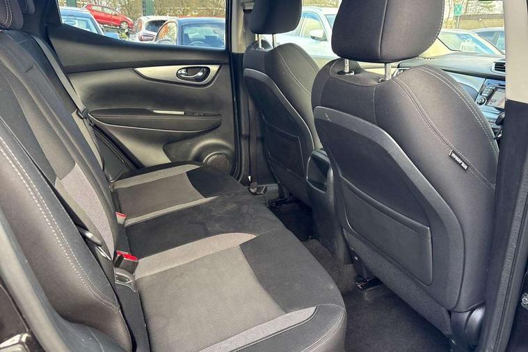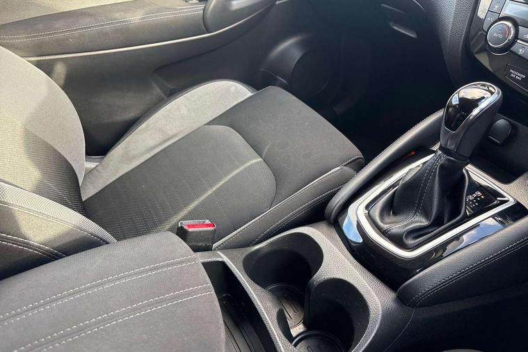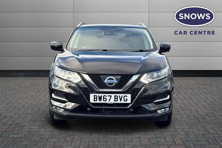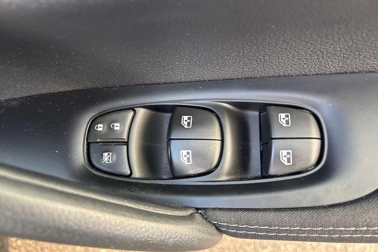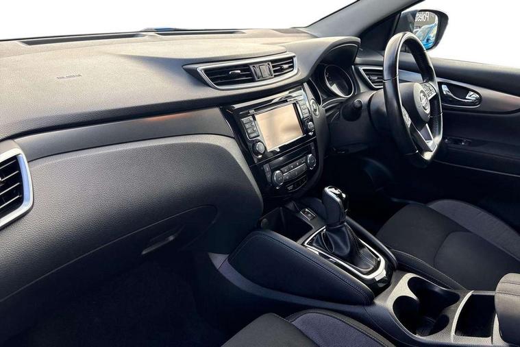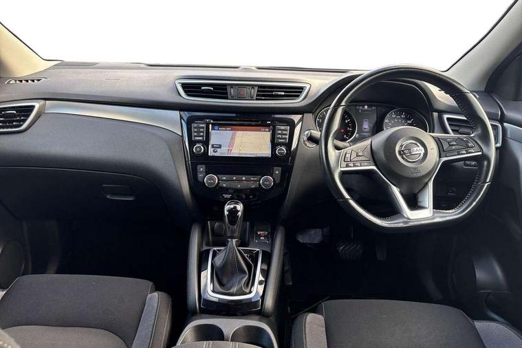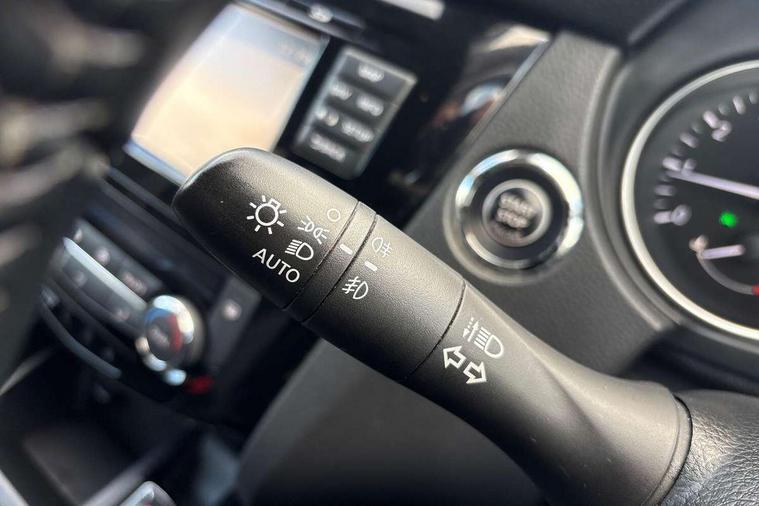 5" TFT driver information centre, Around View Monitor, Bluetooth phone integration system, Cruise control, Electric speed sensitive power steering, Front and rear parking sensors, Lane departure warning system, Nissan connect sat nav system, Outside temperature display, Push button starter, Rear view camera, Service interval indicator, Speed limiter, Traffic sign recognition, Trip computer, 'Shark fin' mobile antenna, 6 speakers, DAB Digital radio, Radio/CD, Smartphone apps, Steering wheel mounted audio controls, USB/aux input socket, Automatic headlamp activation, Body colour bumpers, Body colour door handles, Body colour door mirrors, Chrome window surround, Electric folding and heated door mirrors, High beam assist, Interior mirror with auto anti dazzle, LED indicators in door mirrors, Matt silver roof rails, One touch electric front/rear windows, Privacy glass, Rain sensor windscreen wipers, Rear roof spoiler, Rear wiper, 2 X front 12v power sockets, 60/40 split folding rear seat, Ambient interior lighting, Centre console with armrest, Chrome interior door handles, Cloth upholstery, Configurable luggage board system, Driver + front passenger lumbar support, Dual zone climate control, Front and rear door pockets with bottle holders, Front headrests, Front seat belt pre-tensioners with load limiters, Height adjustable driver's seat, Height adjustable passenger seat, Illuminated electric window switch, Isofix child seat preparation, Leather gearknob, Leather interior door handles, Leather knee rest, Leather steering wheel, Luggage compartment lighting, Parcel shelf, Pollen filter, Rake/reach adjustable steering wheel, Rear headrests, ABS, brake assist and EBD, Child locks on rear doors, Curtain airbags, Driver/front passenger airbag, Electronic parking brake, ESP + traction control, Forward emergency braking, Front passenger airbag deactivation, Height adjustable front seatbelts, Hill start assist, Seatbelt warning, Side airbags, Three 3 point rear seatbelts, Tyre pressure monitoring system, Alarm, Immobiliser, Intelligent Key, Remote central locking, Piano black interior trim, 18" Bi-colour alloy wheels, Tyre puncture repair kit,