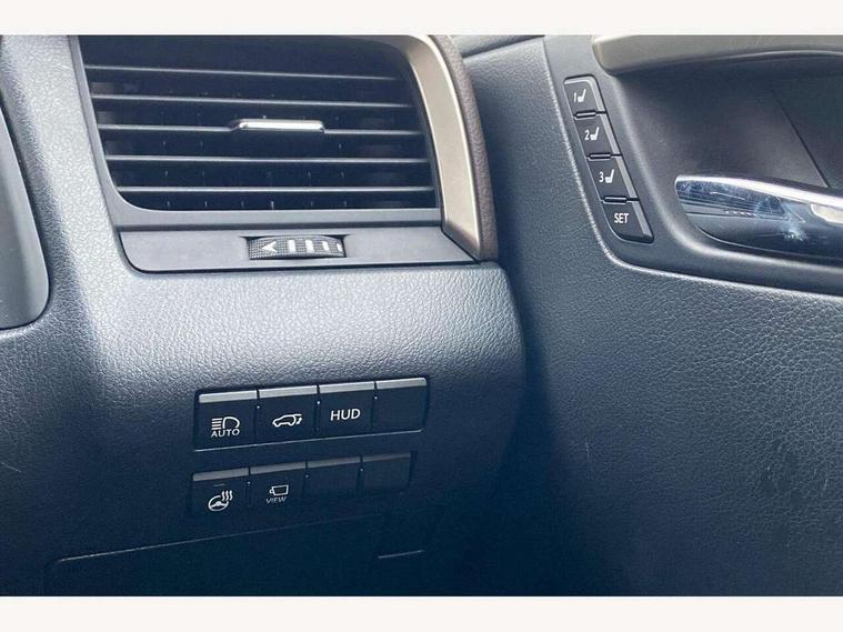 Adaptive cruise control + pre-crash system, Analogue clock, Blind spot monitoring, Bluetooth system, Drive mode selector, Driver alert system, EPAS, Hands free power tailgate, Head up Display, Intelligent parking assist, Lane keep assist, Multi-information display, Park assist system, Premium navigation system, Push button starter, Service interval indicator, Surround camera system, Traffic sign recognition, Trip computer, Wireless Smartphone charger, Adaptive variable suspension, VDIM, Vehicle Stability Control (VSC), Auxiliary input socket, DAB Digital radio, DVD System, Mark Levinson premium surround system, Steering wheel mounted audio/telephone controls, USB connection, Adaptive front lighting system, Adaptive high beam assist, Auto dimming interior mirror + dimming door mirrors, Body colour bumpers, Door mirror memory, Electric folding door mirrors, Electric sunroof, Electrochromatic rear view mirror, Front and rear electric windows, Front windscreen de-icer, Headlight washers, Heated door mirrors, Laminated front side windows, LED daytime running lights, LED front fog lights with static cornering light function, LED Headlights, LED rear lights, Privacy glass (rear side windows and rear screen), Puddle lights, Rain sensor windscreen wipers, Rear side window blinds, Rear wiper, Sunroof, UV reducing glass, 10 way electric power front seats, 2 bag hooks in luggage compartment, 3 rear headrests, 3 x 12V power sockets, 4 load securing hooks in luggage area, 4 way adjustable lumbar support, 60/40 split sliding rear seats, Auto air recirculation, Carpet mats, Centre armrest with storage box, Clean air filter, Driver and passenger seat memory, Driver/passenger temperature controls, Dual zone climate control, Electric adjustable steering column, Front centre armrest with 2 cupholders, Front head restraints, Front seat back map pockets, Heated and ventilated front seats, Illuminated entry system, Illuminated scuff plates, Isofix standard child seat restraint mounting, Leather gear knob, Leather gear lever, LED interior illumination, Memory for steering column, Multi function steering wheel, Rear armrest with storage + cupholders, Rear door map pockets, Semi-aniline leather upholstery, Sunglasses holder, Sunvisors with illuminated vanity mirrors, ABS, Curtain airbags, Driver/Front Passenger airbags, Driver/front passenger side airbags, Drivers knee airbag, EBD + Brake Assist, Electronic parking brake, Electronically controlled braking, Front/rear seatbelt pre-tensioners, Hill start assist, Passenger airbag cut-off device, Passenger knee airbag, Rear cross traffic auto brake, Rear passenger side airbags, Sway warning system, Three 3 point rear seatbelts, Traction control, Tyre pressure warning, WIL whiplash protection front seats, Anti theft alarm, Deadlocks, Immobiliser, Intrusion sensor and alarm, Locking wheel nuts, Remote central double locking, Smart card entry, Smart keyless entry, Laser cut dark wood with aluminium inlay, 20" Alloy wheels, Space saver spare wheel,