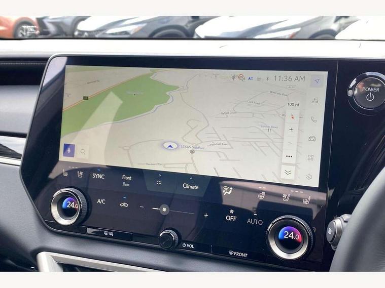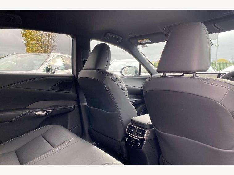 360 degree panoramic view monitor, Bluetooth mobile phone connectivity, BSM - Blind spot monitoring, Drive mode selector, Driver monitoring system, E-call, Head up Display, Intelligent clearance sonar, Lexus link connected services including over the air updates, MM21 Lexus link pro - 14" HD touchscreen with embedded and cloud based navigation, voice assistant, connected services, over the air and always online, Push button starter, Rear cross traffic alert, Speed sensitive electric power assisted steering, Ultrasonic parking sensors, Wireless Apple CarPlay and wired Android Auto, Wireless Smartphone charger, 3 pin to Type 2 10A charging cable, 6.6 kW onboard charger, E-Four Automatic transmission, Type 2 AC charging, Type 2 mode 3 32A charging cable, Vehicle Stability Control (VSC), 12 speakers audio, 5 USB ports (3 front USB C and 2 rear USB C), DAB Digital radio, 3 projector bi-beam LED headlight with auto high beam, Auto dimming rear view mirror, Auto headlights, Front and rear one touch power windows with voice command, Front and rear silver window frame mouldings, Glove and towel set, Headlight washers, Heated, auto-folding door mirrors, auto dimming with rerverse tilt, turn indicators and panoramic view sensors, L-shaped rear light bar, LED brake lights and rear lights with emergency brake signal, LED cornering headlights, LED daytime running lights, LED front and rear fog lights, LED Indicators, Power back door with kick sensor, Privacy UV glass, rear doors and tailgate, Rain sensor windscreen wipers, Rear side wing doors, Rear wash/wipe, Roof rails, Variable front intermittent wipers, 12V accessory port centre console and luggage compartment, 2 cup holders in centre console, 2 way electric lumbar support for driver and front passenger, 2 x Sunvisors with vanity mirror and lamp, 3 rear headrests, 3 seat bench in 2nd row, 40:20:40 split folding rear seats, 64 colour LED ambient interior illumination with 14 pre-set themed colour tones, 8 way electrically adjustable front seats, Charge cable bag, Driver seat memory function, Easy access driver seat, Easy access steering wheel, Front aluminium scuff plates, Front headrests, Front tray in front of centre console, Glovebox, Heated and ventilated front seats, Heated steering wheel, Leather steering wheel, Lever type shft control, Manually adjustable rear seats, Power adjustable steering wheel, Rear resin scuff plates, Single front passenger seat, Smooth leather upholstery, Textile carpet mats, Three zone climate control air conditioning system, Two way opening centre armrest with storage, 2 x Isofix child rear seat restraints, 3 point ELR front and rear seatbelts with pretensioners, ABS, Curtain shield airbags (front and rear), Driver and front passenger 2 stage airbag, Driver/front passenger side airbags, Drivers knee airbag, E-Latch with safe exit assist, EBD + Brake Assist, Electronic parking brake, Electronically controlled braking, Extended lexus safety system+ 3 - lane change assist, front cross traffic assist, Front and rear left/right force limiters and tension reducers, Front and rear left/right seatbelt reminders, Front centre airbag, Hill assist control, Lexus safety system+ 3 - dynamic radar cruise control, pre collision system day and night, lane tracing assist, road sign, Manual child lock in rear doors, Passenger airbag cut-off device, Traction control, Tyre pressure warning, 2 x remote key fobs, Customisable auto door lock, Locking wheel nuts, Motion sensor key, Smart keyless entry, Thatcham category 1 alarm + immobiliser, VIN etching, Black Inlay, 21" Alloy wheels,