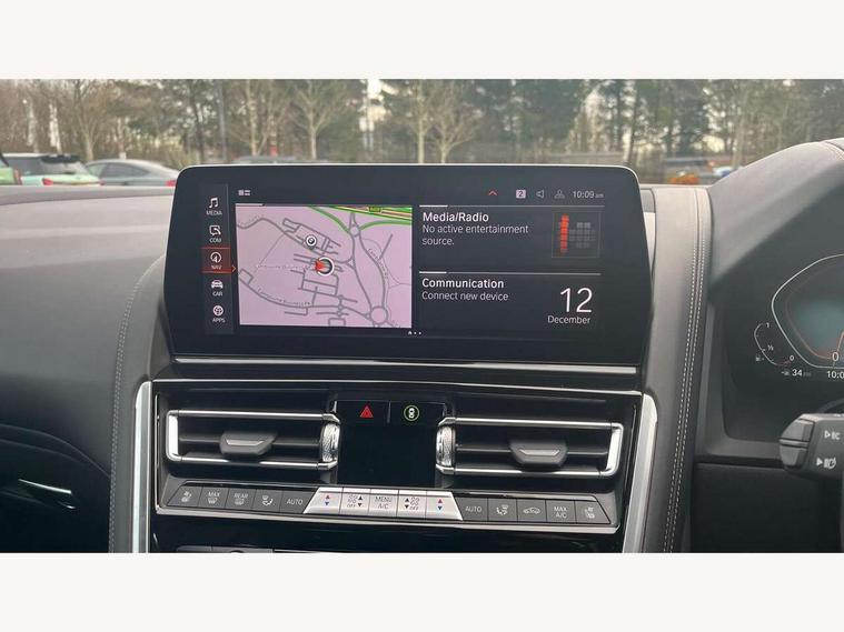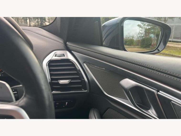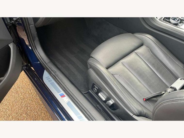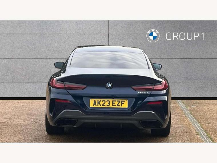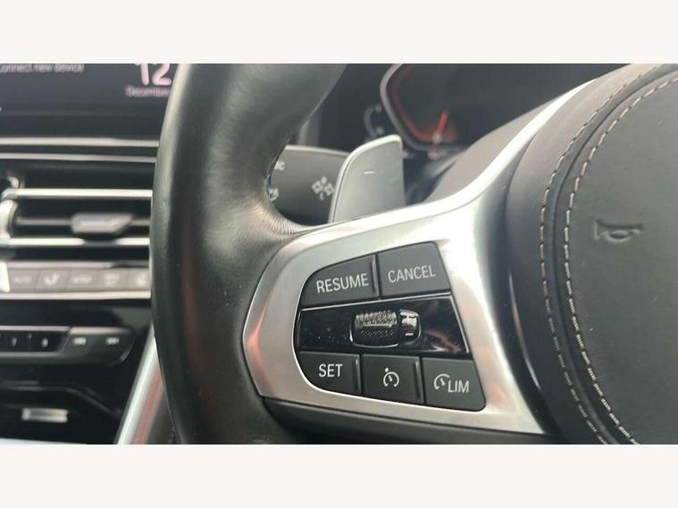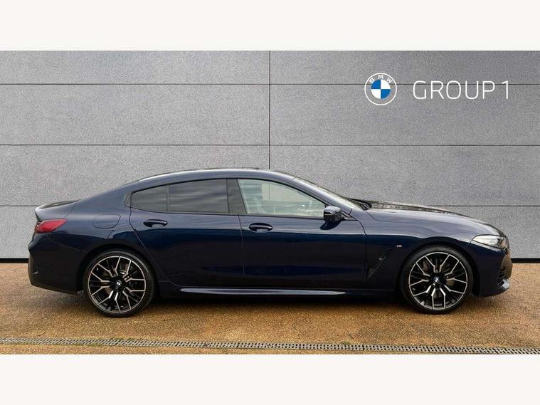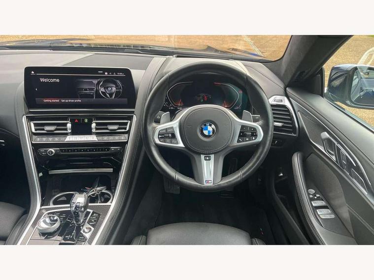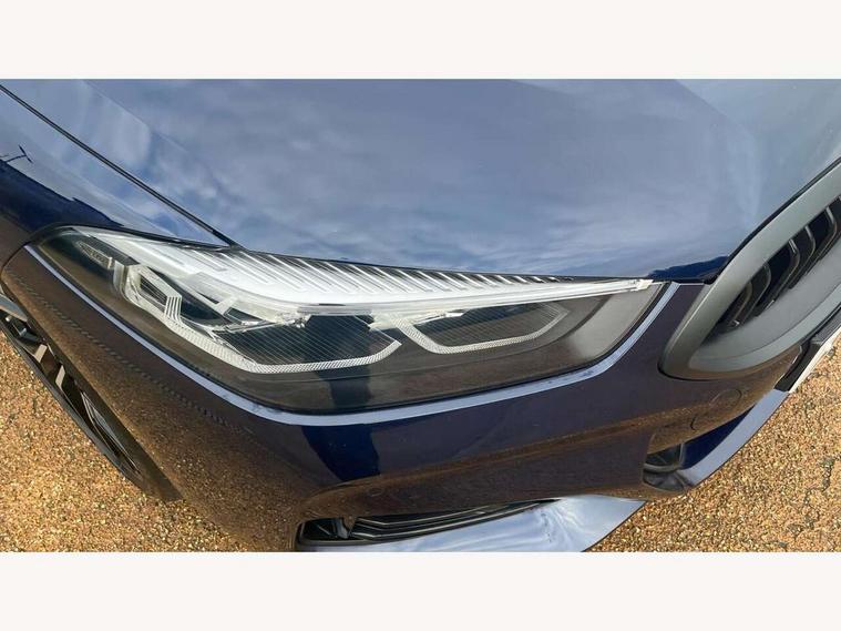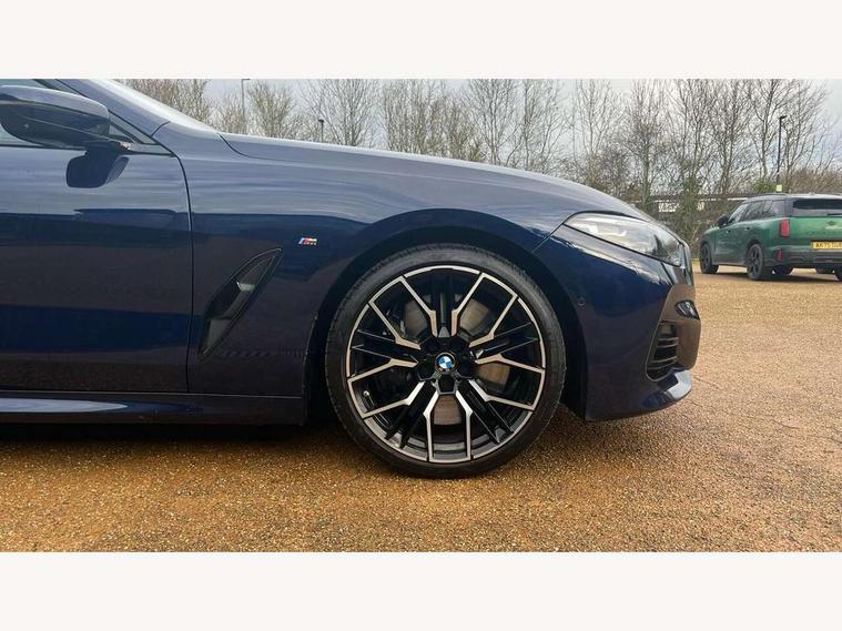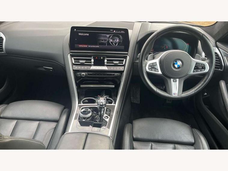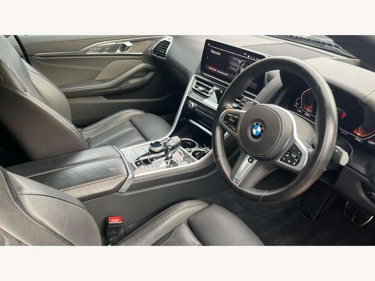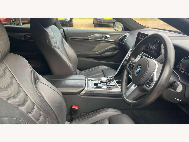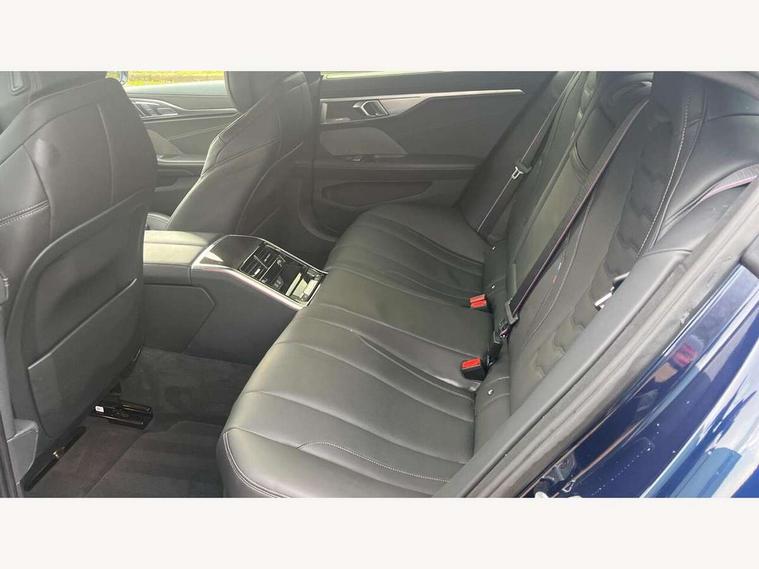 Automatic tailgate operation, remote opening with key, closing by tailgate button or remote control including tailgate in LED technology, Bluetooth hands free facility with USB audio interface, voice control and enhanced bluetooth + Wireless charging, BMW ConnectedDrive online services, BMW legal emergency call, BMW Teleservices, Brake pad wear indicator, Check control system, Condition based service, Drive experience control with Sport, Comfort, Eco Pro and Adaptive modes, Electric bootlid, Head up Display, iDrive controller with shortcut buttons, Instrument and upper door panel in walknappa leather, Integrated owners handbook, Light on warning, Oil sensor for level and grade, On board computer, Outside temperature display, Run flat indicator, Service interval indicator, Servotronic system, Speed limiter, Wi-Fi hotspot, Adaptive M suspension, Double wishbone front axle, Dynamic Damper Control, Eight speed sport automatic transmission, M Sport differential, Petrol Particulate Filter, Sport exhaust system, DAB Digital radio, Favourite buttons, Air breather inlay in pearl chrome, frame in black high gloss, Automatic windscreen wipers and automatic headlight, Carbon core, Climate comfort windscreen, Daytime driving lights front and rear active, Dynamic brake lights, Exterior mirrors - Floating design mirror, electric adjust/heated/folding, aspherical, Follow me home headlight function, Frameless interior mirror, Front and rear bumper system with replaceable deformation elements, Front electric windows, Front ornamental grille with kidney grille bars, Heat protection, sun protection glazing, Heated rear window, glass, Heated windscreen washer jets, High beam assistant, Illuminated door handles, Illuminated radiator grille iconic glow, LED rear lights, M emblem on front side panel in light chrome, Model logo on right tailgate, Radiator grille frame in pearl chrome, Radiator grille struts in aluminium matt, Rain sensor and automatic driving lights control, Rear boot, Rear side wing doors, sDrive designation on left tailgate, Sun protection glass, Thermally insulated windscreen, Third LED technology brake light in rear window, Welcome lights in interior and door handle area, Window frame and mirror base in black high gloss, 2 cup holders in front, 2 rear head restraints, 2 X front 12v power sockets, 3 spoke M sport leather multifunction steering wheel with shift paddle, 4 zone control automatic air conditioning, 5 seats, 50/50 split folding rear seat, Ambient light with dynamic interior light, BMW ID, Front and rear seat heating, Front centre armrest with light, 12V socket and USB and storage compartment, Front door pockets, Front entry lights doors, Front reading lights, Front sun visors with ticket holder and illuminated mirror, Interior lighting - Interior light front centre above interior mirror, luggage compartment light, automatic interior light system soft on/soft off, Lashing eyelets, Lockable glove compartment with light, Microfilter and active carbon filter, Steering column with adjustable height and length and activation via control on the steering column, Through loading function, BMW Live cockpit professional pack - 8 Series, Connected professional pack - 8 Series, Exterior items pack - 8 Series, M sport exterior styling aerodynamics pack - 8 Series, 18" M Sport braking system with blue painted brake calipers, 3x3 point rear seatbelts, ABS/EBD, Active protection, Airbags - Driver and front passenger airbag with seat occupancy detection, knee, side and front passenger seat airbag deactivation, Brake discs, compound structure, Child locks on rear doors, Cornering brake control (CBC), Crash sensor activating central locking release, hazard warning lights, fuel cut off, interior lighting, safety battery terminal clamp and airbags, DSC - Dynamic Stability Control, Dynamic brake control, Dynamic Traction Control - DTC, Electromechanical parking brake with automatic drive away release and auto hold function, Front three point with pyrotechnical belt latch tensioner seat belts, belt force limiter and belt stopper, Head airbags for 1st and 2nd seat row, Hill start assist, Integrated brake system, ISOFIX child seat mounting for the two outer rear seats, Rear three point with pyrotechnical belt latch tensioner seat belts and belt force limiter, Side impact protection, Tyre pressure monitoring system (TPMS), Warning triangle and first aid kit, Alarm system (Thatcham 1) with electronic engine immobiliser, Centre lock switch, Closing system with central locking, Comfort access system, Keyless entry with start/stop button, Locking wheel bolts, Vehicle key with exclusive M designation,