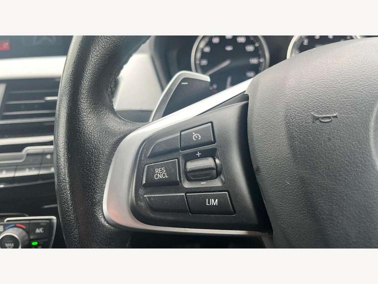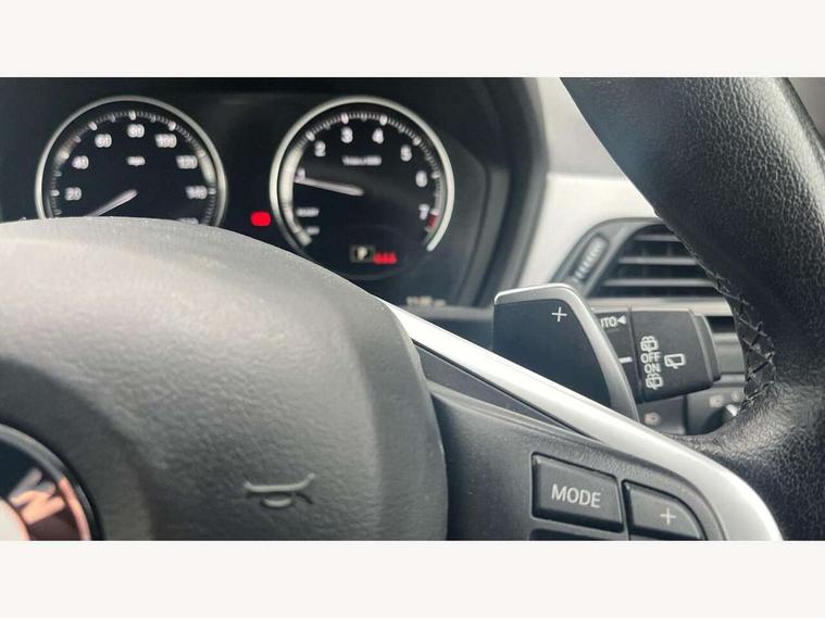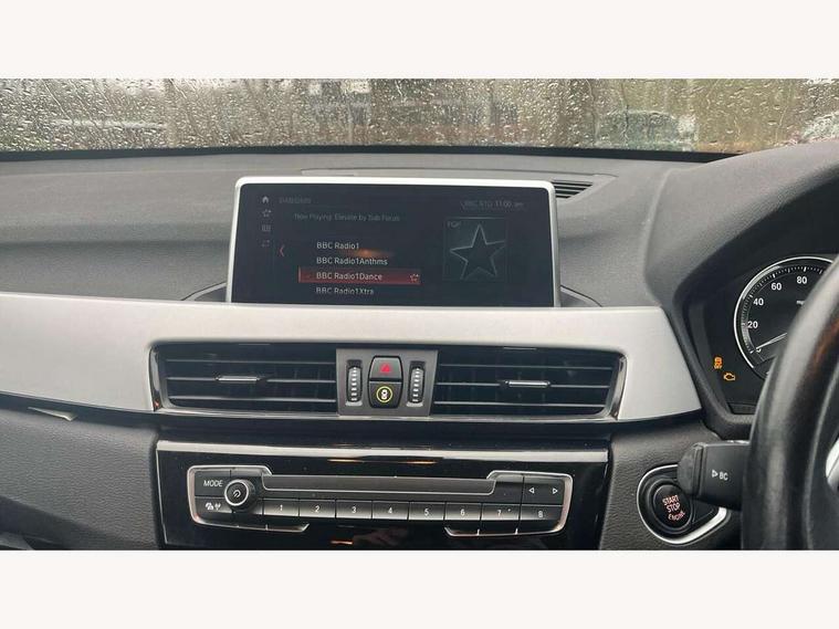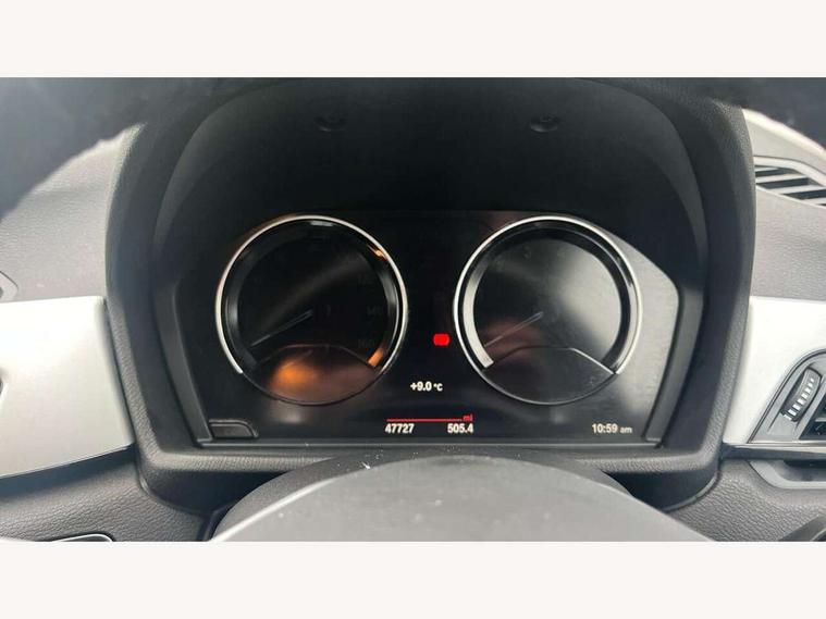 Ambient temperature display, Apple CarPlay, Arrow pointers, north up, direction of travel and perspective map displays, Attentiveness assist, Automatic tailgate opening, BMW ConnectedDrive, BMW Online services, BMW remote services, BMW Teleservices, Brake pad wear indicator in front and rear, Characteristic map controlled oil pump system, Front axle single joint with specific axle kinematics to minimise drive influences on steering + provide increased rigidity agile driving behaviour, Front/rear park distance control (PDC), Instrument cluster with Black optic display featuring superimposed dials and 5.7" colour display, Instrument cluster with speedometer with miles per hour read out, tachometer and fuel gauge, Integrated hard drive with map data updates via USB interface, Lights on warning by audio warning signal when ignition is switched off, On board computer, Operation by iDrive with direct selection buttons and 8 programmable buttons, Optimum shift indicator, Outside temperature gauge, Park assist system, Personal Profile - automatic lock when driving away selectable, Real time traffic information, Rigidly mounted rear subframe - Multi link construction with separate spring / damper configuration and excellent driving characteristics, Service interval indicator, Servotronic PAS, Tyre puncture warning system, 12V compressor with integrated sealant injection bottle and hose, 51 Litre fuel tank, Aluminium lightweight construction including crankcase, Anti-roll bars, Balancer shaft, Double VANOS, Drive performance control with ECO PRO comfort + sport mode, High precision injection, Performance Control, Seven speed sport dual clutch automatic transmission (DCT), Standard suspension, Stop/start function, Turbocharger with Valvetronic, Twin tube gas filled shock absorbers with degressive characteristic curve, DAB Digital radio, Adjustable headlights, Aero curtain, Automatically dimming rear view mirror, Black roof rails, BMW Icon design LED daytime driving lights, Body colour bumpers, Body colour door handles, Body colour door mirrors, Direction indicator side lights integrated exterior mirrors, Dynamic brake lights, Electric windows - front and rear, with open/close fingertip control, anti-trap facility and comfort closing, Electrically adjustable door mirrors with aspheric on driver side, convex on passenger side with integrated indicators, Follow me home headlights, Front air guide finished in black silver, Front and rear bumper system, Green tinted heat protection glazing glass, Headlight beam throw control, Heated door mirrors, Heated windscreen washer jets, High level third brake light, Kidney grille with 14 chrome black vertical bars, LED direction indicator lights in headlight eyebrow, LED front fog lights, Lightweight engineering, Model designation, Rain sensor including auto headlights activation, Rear fog lights, Rear window aerial, Rear window wash/wipe, Reversing light in rear light cluster, Roof mouldings in matt black, Shark fin antenna, Sill cover finished matt black, Twin chrome exhaust tailpipes x2, Two eye face design on light, Visible VIN plate, Welcome lighting, 12v power point in centre console, 2 cup holders in front, 3 rear headrests, 3 spoke sport leather steering wheel, 40:20:40 split folding rear bench seat, Black door sill finishers with BMW designation, Boot light, Centre armrest in 20 degree part rear seat backrest, Child seat ISOFIX attachment for two outer rear seats and front passenger seat with anchorage points, Conditioned based service, Driver/front passenger seat backrest back with luggage net, Dual zone automatic air conditioning, Four grab handles integrated in roof linings, Front and rear side armrests integrated into door trim, Front centre armrest/sliding cover, Front centre interior light over interior mirror and rear centre automatic interior light when door is opened/ignition switched off or via remote key, Front standard seats, Front/rear adjustable head restraints, Illuminated glovebox, Leather gearknob/gaiter/handbrake grip, Luggage area underfloor compartment, Luggage compartment access via recessed handle below tailgate, Luggage compartment lighting, Manually adjustment steering wheel column, Multifunction steering wheel, Rear coded belt buckles, Standing free front adjustable armrest and fixed in different positions, Steering wheel gearshift paddles, Velour floor carpets, Extended storage package - X1, ABS/EBD, Audio/visual collision warning system, Automatic Stability Control (ASC), Battery safety cut-off, BMW emergency call, Brake drying, Brake energy regeneration, Braking readiness, Cornering brake control (CBC), Crash Sensor - activates hazard/interior lighting + unlocks doors, Driver/Front Passenger airbags, Driver/front passenger side airbags, Dynamic brake control, Dynamic stability control + (DSC+), Dynamic Traction Control - DTC, Electronic differential lock control (EDLC), Electronic parking brake, Front and rear head airbags, Front passenger airbag deactivation, Front seatbelt force limiters, Front ventilated disc brakes, Hill start assist, Pyrotechnically pre-tensioned front seatbelts, Rear disc brakes, Rear door child safety locks, Seatbelt security check for driver and front passenger, Side impact protection, Three point seat belts in all belts, Twin horns, Tyre pressure monitor, Warning triangle and first aid kit, Central locking switch for all doors, fuel filler cap and luggage compartment, Check control system for monitoring of lights and door/luggage compartment open warning, Engine immobiliser, Locking wheel bolts, Remote control Thatcham category 1 alarm, Remote control with integrated two key, Start/stop button with comfort go keyless engine start and auto start stop deactivation button, Contrast stitching on instrument panel, Oxide Silver interior trim with high gloss black finisher, Low rolling resistance tyres,