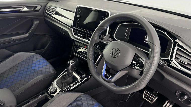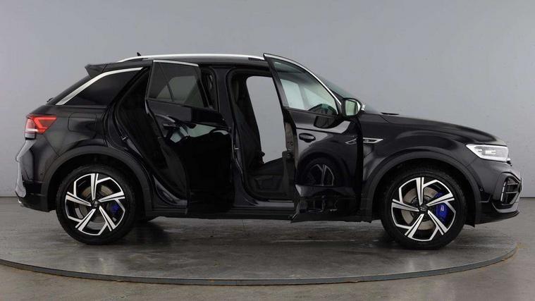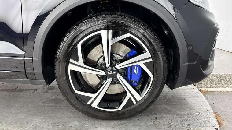 10.25" Digital cockpit pro, Advanced driver attention and drowsiness monitor, Emergency call service, Lane keeping system Lane Assist, Mobile phone interface, Modified key software - reduce switch off time for key status change to Long no motion, Online services, Park assist including front and rear parking sensors, Service interval indicator, Tailgate/trunk lid release from outside, Think blue trainer driver tips and journey analysis, Warning sound and light for front seatbelts unfastened, Wireless app connect, Battery regeneration during braking, Four wheel drive, Start/stop function with battery regeneration, DAB Digital radio, Diversity antenna for FM reception, Music playback - MP3, WMA and AAC files, Premium USB cable in choice of either Apple or Android smartphone compatibility, SD card slot, Simultaneous pairing of 2 compatible mobile devices, Title and cover art display, We Connect and We Connect Plus functionality, Auto dimming interior rear view mirror, Automatic hazard lights activation under emergency braking, Automatic headlight control with LED separate daytime running lights with coming/leaving home function, Body colour door handles, Electrically adjustable and heated door mirrors, Extended roof spoiler, Exterior mirror housings painted, Exterior mirrors aspherical on driver side, convex on front passenger side, External USB type C socket and charging sockets, Front windscreen wiper with intermittent wipe and 4 position delay, Heated rear window, LED 3rd brake light, LED rear combination lamps, LED rear number plate lights, Power windows with comfort operation and circuit breaker, Privacy glass for rear side windows and rear window, R-Line design body coloured bumpers, Rain sensor, Rear fog light on one side and reversing lights on both sides, Rear side wing doors, Rear wash/wipe with intermittent wipe setting, Remote electrically foldable door mirrors, puddle lights and reverse activated passenger's door mirror, 12V power socket in centre console, 3 rear head restraints, 3 seat bench in 2nd row, 4 load lashing points in luggage compartment, Air care climatronic air conditoning system with active combination filter and 2-zone temperature control, Ambient lighting - 10 colour (blue), Black roof lining, Chrome plated decorative trims, Chrome plated radiator grille inserts, air vent surrounds and light switch surrounds, Door and side trim panel with leatherette insert, Drawer under drivers seat, Front + rear carpet mats, Front centre armrest, Front cupholders x 2, Front footwell illumination, Front scuff plates with R logo in door apertures, Front seat back storage pockets, Front sport seats, Glove compartment door with light, Heated leather wrapped multi function sports steering wheel with tiptronic, Instrument lighting, white adjustable panel illumination, Interior light delay, Isofix child seat preparation, Leather gearshift handle, LED interior light with switch off delay/dimmer and 2 front/rear LED reading lights, Load-through provision with cup holder when folded down ('Unsplit rear seat bench, split folding backrest, with centre armrest), Luggage compartment lighting, Non-folding front passenger seat backrest, R-logo stitching in floor mats, Single front passenger seat, Stainless steel pedals, Storage compartment in left and right luggage area, Storage compartment in rear doors, Storage compartments in driver and front passenger doors, Sunvisors with illuminated vanity mirrors, Variable boot floor, height adjustable and removable, Driver assistance pack without proactive passenger protection - T-Roc, R styling pack - T-Roc, 3 point height adj front seatbelts + pretensioners, 3 point seatbelts in outer rear with ECE label, ABS, Child locks on rear doors, City emergency braking and pedestrian monitoring, Driver and front passenger airbag with front passenger airbag deactivation, Driver and front passenger safety-optimised head restraints, Drivers seatbelt reminder, Electronic parking brake, Electronic Stability Control (ESC) inc EDL (Electronic Differential Lock) and ASR (Traction Control), Front and rear passengers curtain airbag system including front side airbags, Hill descent control, Hill start assist, Predictive pedestrian protection, Rear disc brakes, Two tone horn, Tyre pressure loss indicator, Volkswagen roadside assistance, Trims for alloy wheels,