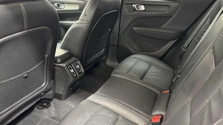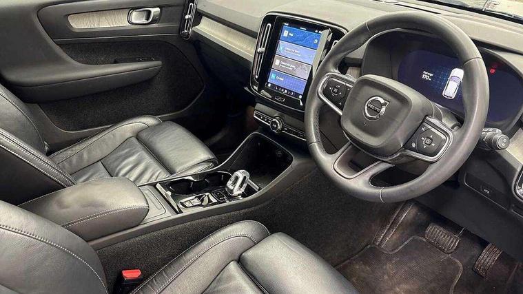 12.3" Progressive Driver Display, 360 degree surround view parking camera with side proximity sensors, 9" centre console portrait touch screen, Adjustable steering wheel force, Bluetooth hands free telephone kit, Cruise control, E-call, Front park assist, Google automatic services - Nav with google maps, apple carplay/android auto, voice recognition with google assistant, Hands free power tailgate, Lane keep assist with driver alert control, Oncoming Lane Mitigation, Rear park assist, Speed limiter, Speed sensitive steering, Wireless/Inductive Mobile Phone Charging, Dynamic chassis, DAB Digital radio, High performance sound, 8 speakers/250W, front USB and 2 rear type C USB, Steering wheel mounted remote controls, Adaptive brake lights with high level LED brake lights, Auto dimming feature for exterior door mirrors, Auto dimming interior mirror, Automatic headlamp levelling, Automatic LED Headlights + Active high beam incorporating daytime running lights, Front aluminium tread plates, Front and rear electric windows, High gloss black front and rear skid plate, High gloss black mesh front grille with high gloss black surround, High gloss black window trim, Home safe and approach lighting, Integrated roof rails in high gloss black, LED front fog lights, Puddle lights, Rain sensor with automatic windscreen wiper activation, Rear side wing doors, Rear wiper, Roof antenna, Roof spoiler, Visible VIN plate, 12V socket in front tunnel console and luggage compartment, 2-Zone electronic climate control with CleanZone air quality system and pollen filter, 3 seat bench in 2nd row, 3 Spoke tailored steering wheel with chrome trim, 60/40 versatile split folding rear seat, A-pillar parking ticket holder, Ambient front door and instrumental panel lighting, Centre console cupholders and storage, Flexible load floor and grocery bag holder, Floor mats, Front door pocket and front cupholder illumination, Front footwell illumination, Front headrests, Front reading light and theatre lighting, Front seat cushion extensions, Front tunnel pocket, Glovebox bag hook, Heated front seats, Height adjustable passenger seat, Height/reach adjustable steering column, High gloss centre tunnel deco, Illuminated glovebox, Illuminated luggage compartment, Illuminated tailgate, Illuminated vanity mirrors, Integrated waste bin, Isofix attachments on outer rear seats, Load protection net, Multi directional lumbar support, Power driver seat with memory + exterior mirrors memory, Rear armrest / integral cup holders / storage tray, Rear headrests, Rear reading and courtesy lights, Single front passenger seat, Underfloor cargo storage, Climate pack without heated front seats - XC40, 3x3 point rear seatbelts, City safety with steering support with Pedestrian + cyclist + front collision warning with full auto brake and rear auto brake, Drivers knee airbag, Dual stage driver/passenger airbags, Electronic parking brake with auto hold, First aid kit, Front and outer rear seatbelt reminder and pretensioners, Front seats SIPS airbags, Hill descent control, Hill start assist, Inflatable curtain, Passenger airbag cut-off device, Power child locks on rear doors, Road sign information display, Run off Road Mitigation, Run off Road Protection, SIPS (Side Impact Protection System), Slippery road and hazard light alert, Stability and Traction Control with Spin control, Engine Drag Control and Corner Traction Control, Tyre pressure monitoring system, Vehicle deceleration control with Anti-lock Brake System, Electronic Brake Distribution and Emergency Brake Assist, Warning triangle, WHIPS whiplash protection system - front, Anti-theft alarm including immobiliser/volume sensor + level sensor, Key integrated remote control central locking + fuel flap with deadlocking system and auto open/close power windows, Keyless drive includes keyless entry and keyless start, Locking wheel nuts,