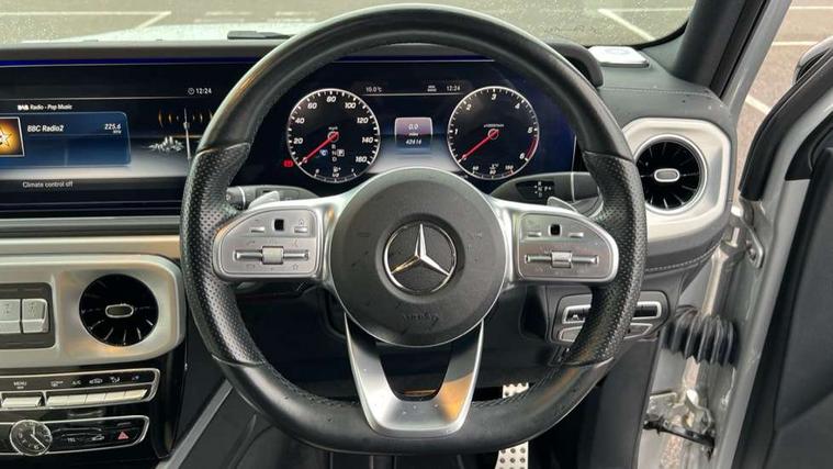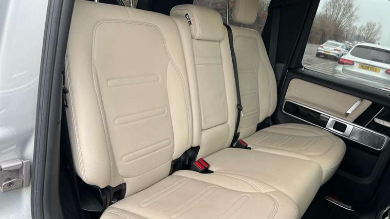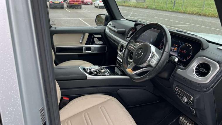 360 degree parking camera, Active lane keep assist, AMG dual bonded widescreen cockpit displays, Attention assist, Bluetooth interface for hands free telephone, COMAND online HDD Nav with media interface, radio/CD/DVD/MP3, 12.3" screen, linguatronic voice control, Communications module (LTE), Cruise control with speedtronic variable speed limiter, DYNAMIC SELECT with a choice of driving modes (ECO, Comfort, Sport, Sport+ and Individual), Mercedes connect me, Mercedes-Benz emergency call, Parktronic audio/visual front and rear parking aid, PAS, Service indicator (ASSYST), Smartphone integration with Apple CarPlay and Android auto, Touch pad controller for COMAND online, Traffic sign recognition, Trip computer, Diesel particulate filter (DPF), Differential lock, Electronic selectable low range gearing, Suspension with adaptive damping system, Aux-in socket, Burmester surround sound system with 16 speakers, DAB digital radio module, AMG bodystyling with flared wheel arches, Auto dimming rear view mirror, Automatic headlamp activation, Dark tinted heat insulated glass, Door mirror memory, Electric slide and tilt sunroof, Electrically adjustable and heated door mirrors, Front and rear electric windows, LED daytime running lights, Privacy glass, Radiator grille with chrome surround, Rain sensor windscreen wipers, Stainless steel door sill panels, set of four, illuminated and front Mercedes Benz lettering, Trailer coupling, Underguard - full length reinforced underfloor panelling, 1/3 to 2/3 split folding rear seats, 12V socket in boot/load compartment and rear passenger compartment, 2 cup holders in front and rear, Ambient lighting with 64 colours and projection of brand logo, AMG floor mats with AMG lettering, Electric adjustable steering column with memory, Electric front headrests with memory, Electric front seats with memory function, Electrically adjustable front seats, Front centre armrest with storage compartment, Heated front seats, Heated rear seats, Ionisation of interior air including fine particle activated charcoal filter system, Load protection net, Luggage compartment cover, Rear head restraints, THERMOTRONIC automatic climate control, Driving assistance pack - G Class, Exterior styling pack - G class, Stowage space pack - G class, 3x3 point rear seatbelts, ABS with Brake Assist, Adaptive brake system, Airbags - windowbags, Auto hold function, Black seat belts, Brake calipers with Mercedes-Benz lettering + perforated brake discs, Driver/Front Passenger airbags, Dry braking, Electronic four wheel traction control, ESP with ASR, Front side airbags, Hill start assist, i-Size and ISOFIX rear child restraint system, Pre-safe system for anticipatory occupant protection, Seatbelt pretensioners, Tyre pressure monitoring system, Anti-theft alarm system/interior protection with tow-away protection and interior monitoring systems, Immobiliser, Keyless Go access/ignition system, Remote central locking, Space saver spare wheel,