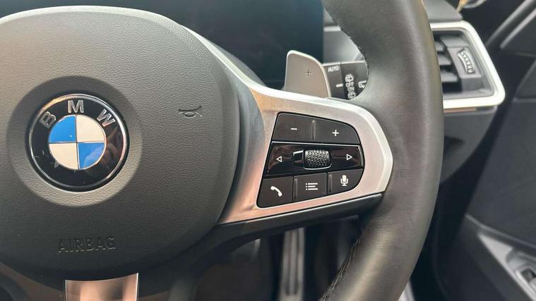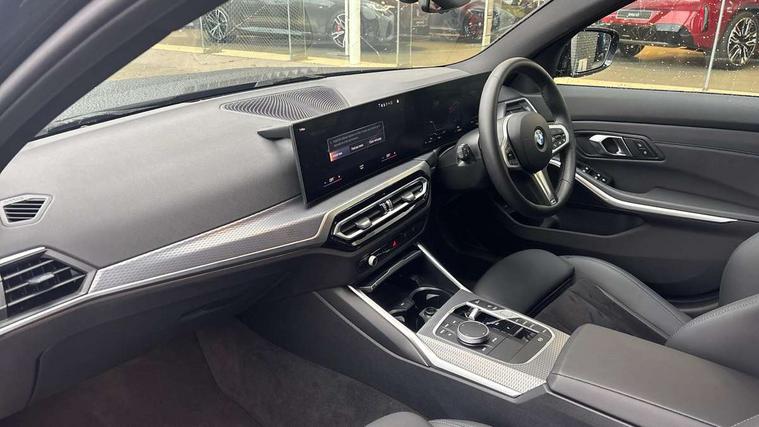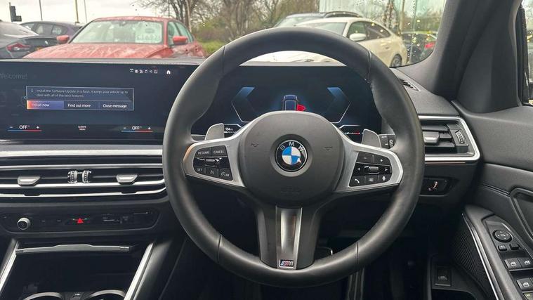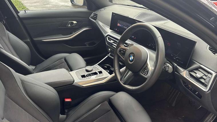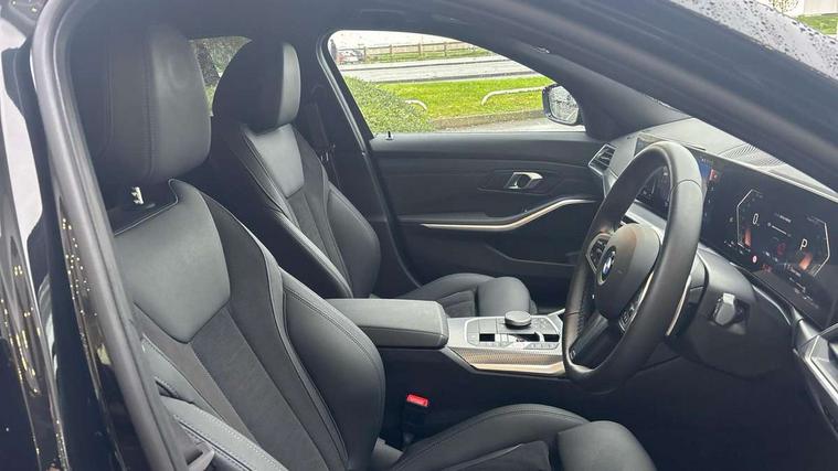 Active guard plus, Attentiveness assist, Automatic Start/stop button, BMW iDrive, BMW Teleservices, Condition based service, ConnectedDrive Services, Driving experience switch, Electric bootlid, Live cockpit plus with Navigation + 12.3" instrument display + 14.9" display, Intelligent voice assist, 2 USB, 4G LTE connect, Oil sensor for level and grade, PAS, Preparation for driver assistance, Shifting point display, Variable sport steering, Double joint spring strut front axle, Fuel tank breather system, Sport automatic transmission with steering-wheel mounted gearshift paddles and launch control, DAB tuner, 3rd brake light, Auto dimming rear view mirror, Auto dimming with folding wing mirrors, Automated High beam assist, Automatic headlight beam throw control with load dependent regulating reaction, dynamic compensation of braking dive and acceleration squat, BMW emblem, engine compartment lid and tailgate, Body colour roof fin, Door sill strips, Electric windows - front and rear, with open/close fingertip control, anti-trap facility and comfort closing, Follow me home headlight function, Front and rear bumper system with replaceable deformation elements, Front apron plastic in body colour, Fuel filler flap - right rear in body colour, Heated washer jets, High gloss shadow line exterior trim, High gloss shadow line roof rails, Illuminated bow type door handles in body colour drivers side with door lock, Interior rear view electrochromatic mirror with automatic anti dazzle function, LED headlights with LED daytime running lights and LED turn indicator, LED rear lights, Licence plate panel integrated into front bumper and tailgate, Matt black B-pillar finsher, Matt black window recess cover, Model designation on right side of tailgate, One piece front bumper cover including towing eye cover in body colour, Rain sensor with automatic headlight activation, Rear side wing doors, Rear wiper, Reversing lights, Side frame decorative moulding black matt, Visible exhaust tailpipe finisher, Welcome lights in interior and door handle area, 12V power socket in front storage compartment, 2 front cupholder in centre console with clamping elements and matt black inlay, 3 seat bench in 2nd row, 3 zone automatic air conditioning, 40:20:40 split folding rear seat with loading system, Ambient inside door handle light, Ambient light design projected onto the left and right entering and exiting area, Ambient storage compartment lighting in the centre console, Anthracite headlining, Armrest integrated in front and rear door trim + front centre console armrest, BMW ID, Contour lighting in instrument panel and door trim panel, Cruise control operation in steering wheel, Driving experience mode switch, Extended storage, Folding rear centre armrest with 2 cupholders, Front and rear ambient footwell lighting, Front and rear door exit lighting (left / right), Front and rear headrests, Front and rear reading lights, Front and rear velour floor mats, Heated front seats, Height adjustable mechanically and infinitely variable steering column, Illuminated armrest storage compartment, Illuminated glove compartment, Illuminated luggage compartment, Lashing eyelets in luggage compartment, M Sport multifunction leather steering wheel, Make-up mirror lights, Single front passenger seat, Standard seat for driver and passenger with manual adjustment, Sunvisors with illuminated vanity mirrors and ticket pocket, Toolkit located in luggage compartment, Connected pack professional - 3 Series Saloon/Touring, Interior and exterior mirror pack - 3 Series Touring/Saloon, M Aerodynamics package - 3 Series Saloon/Touring, M sport exterior styling pack - 3 Series Saloon/Touring, Parking assistant pack - 3 Series, Storage compartment pack - 3 Series Saloon/Touring, 3x3 point rear seatbelts, BMW emergency call, Child locks on rear doors, Crash sensor activating of airbags, Unlocking doors, hazard warning lights, interior light, safety battery terminal, Driver and front passenger with seat occupancy detection for driver's and passenger side, Driver and passenger side airbags, body protection at side and airbags deploy from seat backrests, Dynamic brake control, Dynamic stability control + (DSC+) - Anti-lock Braking System (ABS) with brake assist and cornering brake control + Automatic Stability Control (ASC), Dynamic Traction Control - DTC, Electric parking brake including automatic hold function and automatic release of the parking brake when driving off, Electronic differential lock control (EDLC), Front airbag deactivation, Head airbags in 1st and 2nd row, head protection at side, curtain airbags open from headliner above 1st and 2nd row, Plastic fuel tank, Side impact protection, Tyre pressure monitoring with three level warning strategy, Ventilated front and rear disc brakes, Warning triangle and first aid kit, Alarm system, Centre lock switch, Closing system with central locking, Electronic vehicle immobiliser, Locking wheel bolts, Tyre repair kit,