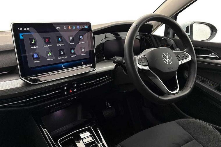 Activated carbon canister, Adaptive cruise control (ACC), Advanced driver attention and drowsiness monitor, Dynamic road sign display, E-Sim card for online connectivity, eCall emergency call system, Multi-color Digital cockpit pro, selection of different info profile possible, Multifunction front facing camera for distance control, Navigation system, Oncoming vehicle braking when turning including swerve support, Side assist blind spot lane change system, rear traffic alert and exit warning system, Speed limiter, Speedo, rev counter, electronic odometer, trip, service interval display, exterior temperature and fuel gauge, Traffic jam assist, Voice enhancer and voice control, Warning signal and warning light for front and rear seatbelts not fastened, We connect plus preparation, We connect preparation, Wireless app connect, Charging cable Mode 2 Type 2 (10A), Charging cable mode 3, type 2 32 A, Hybrid propulsion system, Start-stop system with battery regeneration (recuperation - energy recovery during braking), XDS electronic differential lock for improved traction and handling, 2 USB C ports in front, 2 USB charging sockets on the centre console in the rear charging capacity upto 45W, 6 Speakers - 4 in front and 2 in rear with central speaker, Digital radio reception (DAB), Diversity antenna for FM reception, Gaming platform via car app, Infotainment system with 12.9" display, Mobile phone interface with inductive charging feature, 3rd brake light, Automatic headlamp activation with Coming home and Leaving home feature, Body colour bumpers, Body colour door handles, Body colour door mirrors, Chrome trimmed front air intake surrounds, Chrome trims on the side window bottom, Exterior mirrors convex on the left and aspherical on the right, Front and rear electric windows, Heat insulating windshield made of laminated glass, LED separate daytime running light, Rear exhaust tailpipe, Rear fog light on one side and reversing lights on both sides, Rear side wing doors, Rear windscreen washer and wiper with interval delay, Remote electrically foldable door mirrors, puddle lights and reverse activated passenger's door mirror, Welcome light with surround lighting, 12V socket in front centre console, 12V socket in luggage compartment, 3 rear head restraints, 3 seat bench in 2nd row, Air care climatronic 3 Zone automatic climate control with rear air conditioning control panel, Ambient lighting with 30 colour including LED light unit in front footwell with selectable light colour, Chrome plated radiator grille inserts, air vent surrounds and light switch surrounds, Front + rear black carpet mats, Front centre armrest, ISOFIX anchors for child seats on outer rear bench seats and on front passanger seat compatible for i-Size, Luggage compartment lighting, Plastic gear knob, Rear cupholder and loadthough, Single front passenger seat, Soul black instrument panel, Split folding backrest with centre armrest and unsplit rear seat bench, Standard pedal cluster, Storm grey roof lining, Sun visors with illuminated vanity mirrors, Driver assistance pack - Golf Estate/Hatchback Auto, 3 point height adj front seatbelts + pretensioners, 3 rear three point seatbelts, ABS, Autonomous emergency braking front assist with pedestrian and cyclist monitoring, Child locks on rear doors, Driver and front passenger airbag with front passenger airbag deactivation, Electronic parking brake with auto hold, ESC (Electronic Stability Control), Extended pedestrian protection measures, Hill start assist, Rear disc brakes, Two tone horn, Tyre pressure loss indicator, Volkswagen roadside assistance, Anti theft wheel bolts, Preparation for alcohol interlock, New brushed dark metal decorative inserts for dashboard and front door panels, Tool kit for tyre mobility set, Tyre mobility kit Includes 12V compressor and tyre sealant,