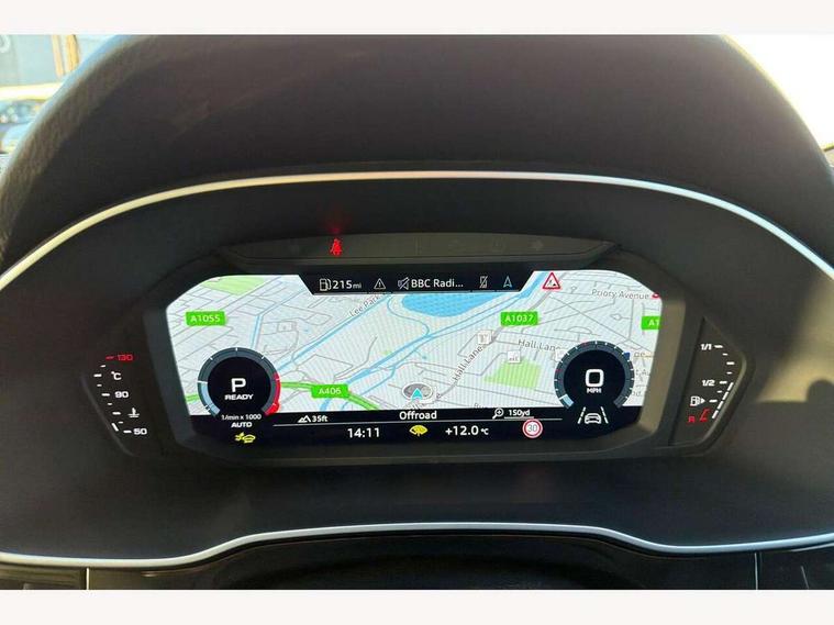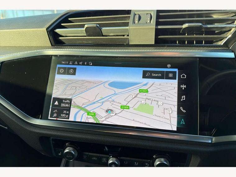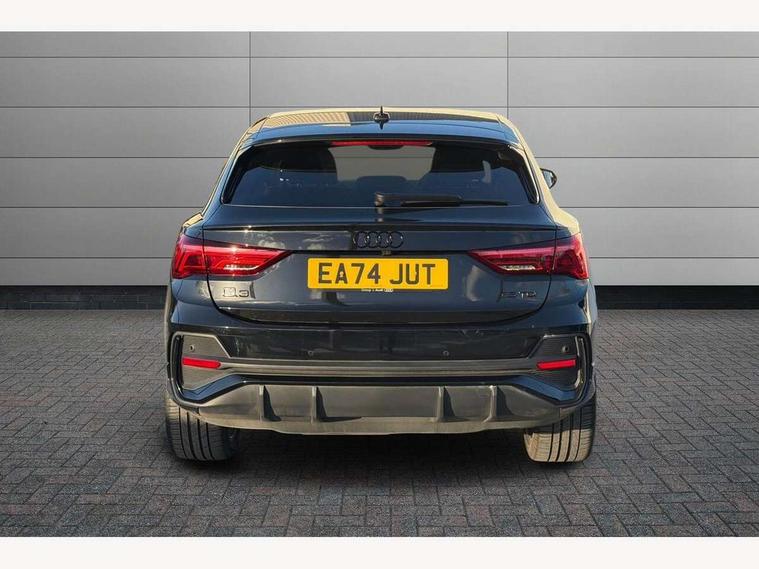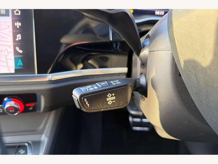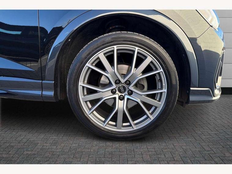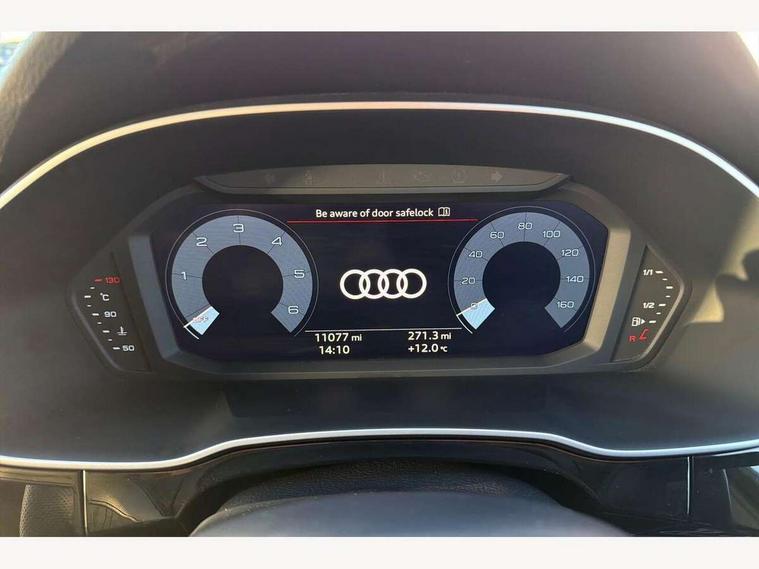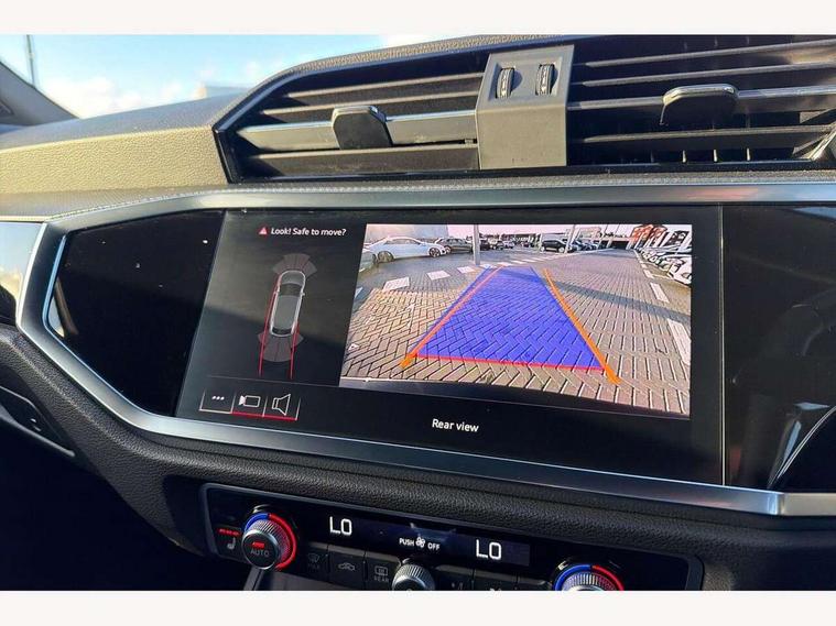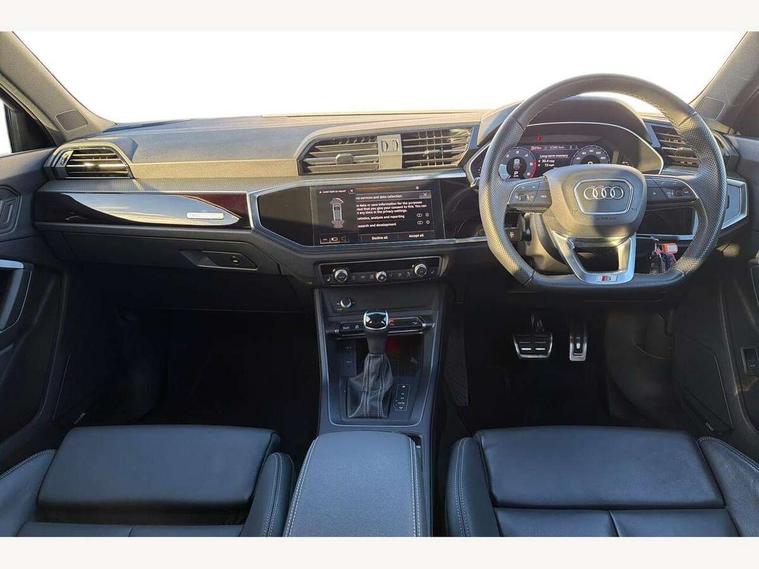 Audi connect safety and service, Audi drive select, Audi lane departure warning, Audi Virtual Cockpit - 10.25" display, Bluetooth interface, Camera based traffic sign recognition, Distraction and Fatigue warning, Legal emergency call, MMI Navigation Plus with high resolution 10.1 inch touchscreen colour display, Power operated tailgate, Progressive steering, Service interval indicator, Smartphone interface includes wireless Apple carplay/Android Auto, Start stop system with recuperation, Voice control system with natural language interaction, Diesel particulate filter, Sports suspension, 2 USB-C ports with charge and data functions, 6 passive loudspeakers, DAB digital radio module, Acoustic windscreen, Audi Beam uses LEDs to project the Audi logo onto the ground as you exit your Q3, Auto dimming door mirrors, Auto dimming frameless rear view mirror, Diffuser grille in grained matt black, Diffuser trim in selenite silver, Electrically folding, adjustable and heated door mirrors with integrated LED side indicators and kerb view function for passenger side, Front and rear electric windows, Front fog lights, Front underbody protection in manhattan grey paint finish, High gloss black finish B and C pillars, LED Dynamic rear indicators, LED headlights with LED daytime running lights, LED rear lights, LED third brake light, Privacy glass dark tinted rear and rear-side windows (from B-pillar backwards), Rain and light sensors, Rear side wing doors, Rear underbody protection in matt black, Rear wiper, S line front and rear bumpers and side skirts in contrasting Manhattan grey paint finish, Variable front intermittent wipers, 12V socket in rear centre console, 3 seat bench in 2nd row, 40:20:40 folding with manual adjustment for 60:40 forwards/backwards position and backrest angle, Adjustable rear seat bench/backrest with centre armrest and cupholder, Black cloth headlining, Dual zone electronic climate control, Electric lumbar support, Front and rear black floor mats with contrast stitching, Front and rear headrests, Front centre armrest, Height and reach adjustable steering wheel, Illuminated door sill trims with S logo, ISOFIX child seat mounting for front passenger with airbag deactivation and outer rear seat including top tether attachment point for outer rear seats, Luggage compartment sill protection in stainless steel, Manual front seats with height adjustment, Perforated leather gearknob, Single front passenger seat, Stainless steel pedals, Twin leather upholstery with front sport seats + S embossing, Black styling pack - Q3, Non smoking pack - Q3, 3x3 point rear seatbelts, 6 airbags - Driver, front passenger, curtain and side windows, Audi pre-sense front with pedestrain and cyclist recognition, Electrically operated child locks on rear doors, Electromechanical parking brake, Electronic stabilisation control including ABS, ASR and EDL, Front seatbelt reminder, Hill descent control, Hill hold assist, Pre sense basic, Seatbelt monitoring, Tyre pressure warning, Warning triangle and first aid kit, Anti theft alarm, Anti theft wheel bolts, Immobiliser, Remote central locking, Aluminium look interior elements, Detail dashboard around MMI touch colour display in glass look, black with surround in aluminium look, Leatherette door armrest, Piano black inlay,