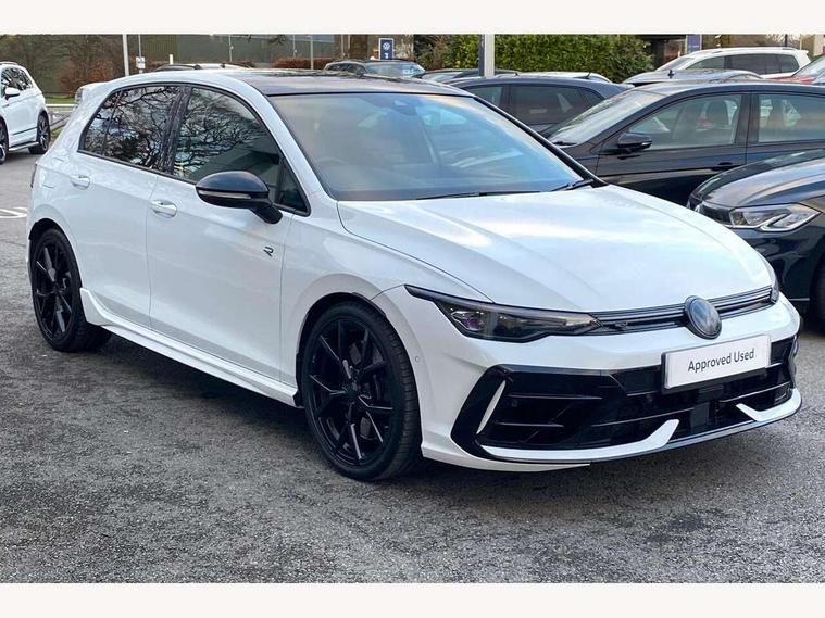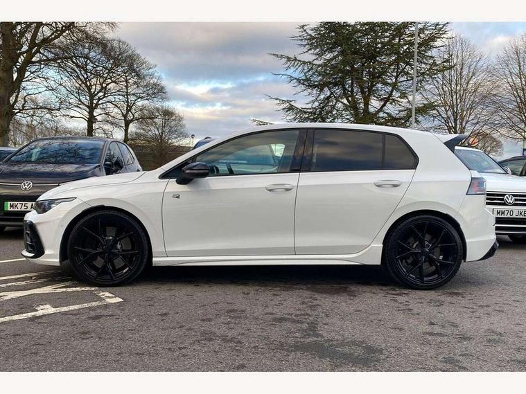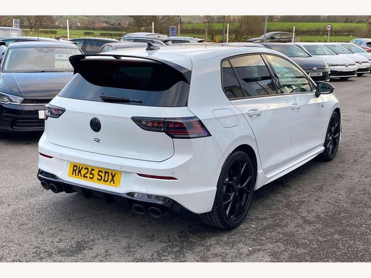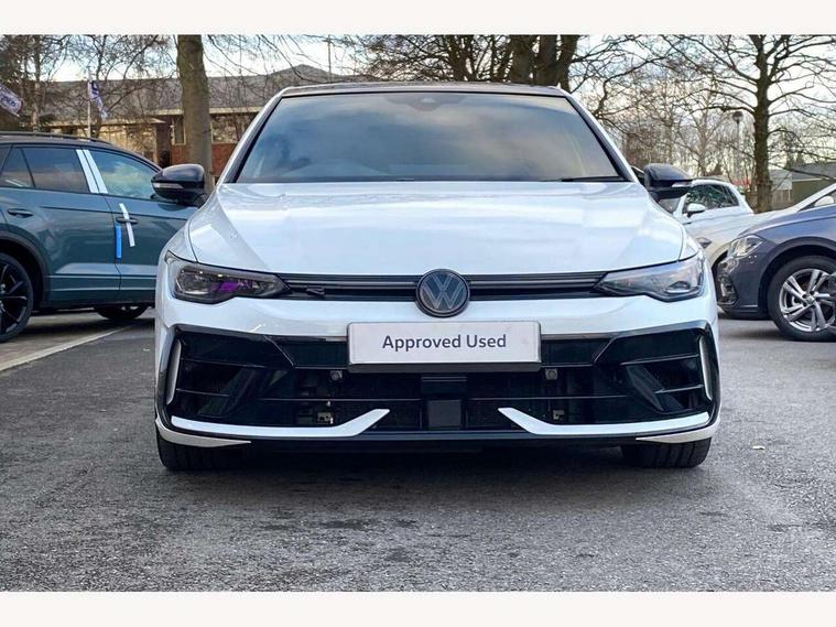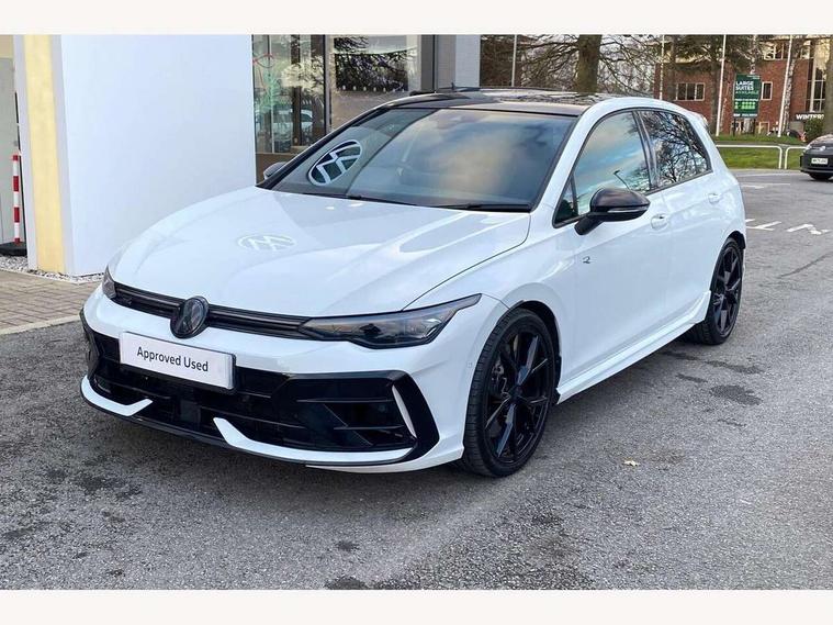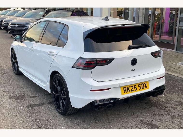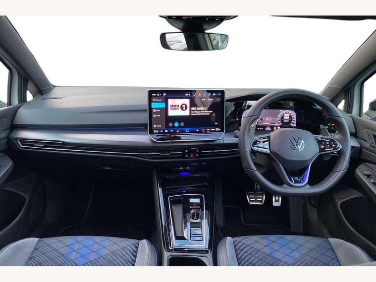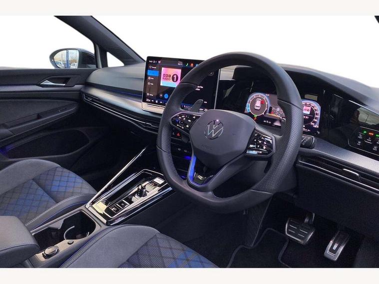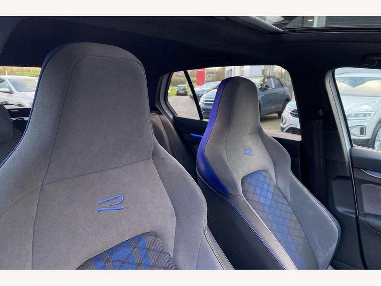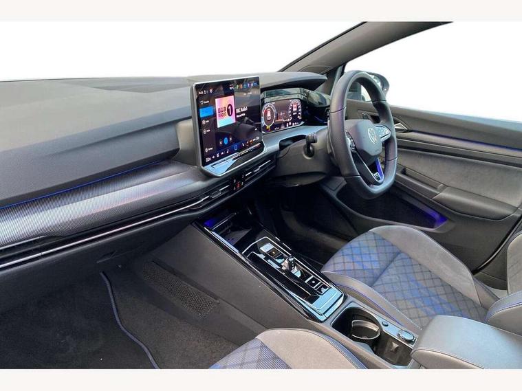 Activated carbon canister, Adaptive cruise control (ACC), Advanced driver attention and drowsiness monitor, Dynamic road sign display, E-Sim card for online connectivity, eCall emergency call system, Electronic maximum speed limit increased to 270 km/h, includes driving Modes 'drift' and 'special', larger roof spolier and GPS laptimer + G-Meter, Multi-color Digital cockpit pro, selection of different info profile possible, Multifunction front facing camera for distance control, Navigation system, Oncoming vehicle braking when turning including swerve support, Preparation for light assist system, Progressive steering, Side assist blind spot lane change system, rear traffic alert and exit warning system, Speed limiter, Speedo, rev counter, electronic odometer, trip, service interval display, exterior temperature and fuel gauge, Traffic jam assist, Voice enhancer and voice control, Warning signal and warning light for front and rear seatbelts not fastened, We connect plus preparation, We connect preparation, Wireless app connect, All wheel drive - 4Motion, Petrol Particulate Filter, Sports suspension, Start-stop system with battery regeneration (recuperation - energy recovery during braking), XDS electronic differential lock for improved traction and handling, 2 USB C ports in front, 2 USB charging sockets on the centre console in the rear charging capacity upto 45W, Comfort telephony + wireless charging, without wireless aerial connection, Digital radio reception (DAB), Diversity antenna for FM reception, Gaming platform via car app, Infotainment system with 12.9" display, Mobile phone interface with inductive charging feature, 3rd brake light, Auto dimming rear view mirror, Auto headlights, Automatic headlamp activation with Coming home and Leaving home feature, Black badge on B-pillar, Black mirror caps, Black strips on radiator grille and headlights, Body colour door handles, Darkened headlights, Darkened R Logos and VW logos in front, rear and on fender, Exhaust system with black tailpipe, Exterior ambient lighting with illuminated lighting animation and wake up/goodbye scenario, Exterior mirrors convex on the left and aspherical on the right, Front and rear electric windows, Front fog lamps and cornering light, Heat insulating windshield made of laminated glass, LED daytime running lights, LED matrix headlights with ambient light V2, advanced high beam, dynamic range contol with cornering, LED rear lamp with indicator, poor weather, R name plate, Rain sensor, Rear fog light on one side and reversing lights on both sides, Rear side wing doors, Rear tinted glass 65% light absorbing from B pillar backwards, Rear windscreen washer and wiper with interval delay, Remote electrically foldable door mirrors, puddle lights and reverse activated passenger's door mirror, Welcome light with surround lighting, 12V socket in front centre console, 12V socket in luggage compartment, 3 rear head restraints, 3 seat bench in 2nd row, 30 colour ambient lighting, illuminated center console storage compartment in front, Air care climatronic 3 Zone automatic climate control with rear air conditioning control panel, Aluminium gearshift handle, Brushed stainless steel pedals, Carpet mats, front and rear, Front centre armrest, Integrated front head restraints, ISOFIX anchors for child seats on outer rear bench seats and on front passanger seat compatible for i-Size, Luggage compartment lighting, Rear cupholder and loadthough, Single front passenger seat, Soul black instrument panel, Split folding backrest with centre armrest and unsplit rear seat bench, Storm grey roof lining, Sun visors with illuminated vanity mirrors, Driver assistance pack - Golf DSG Estate/Hatchback, R styling pack - Golf, Technology park and comfort pro package - Golf Hatchback, 3 point height adj front seatbelts + pretensioners, 3 rear three point seatbelts, ABS, Autonomous emergency braking front assist with pedestrian and cyclist monitoring, Child locks on rear doors, Disc brakes in rear incl. brake calipers in black with darkened R-logo, Driver and front passenger airbag with front passenger airbag deactivation, Electronic parking brake with auto hold, ESC (Electronic Stability Control), Extended pedestrian protection measures, Hill start assist, Two tone horn, Tyre pressure loss indicator, Volkswagen roadside assistance, Anti theft wheel bolts, Preparation for alcohol interlock, Wheel hub cover with darkened R-logo,