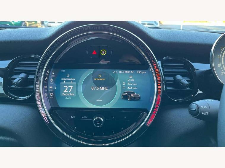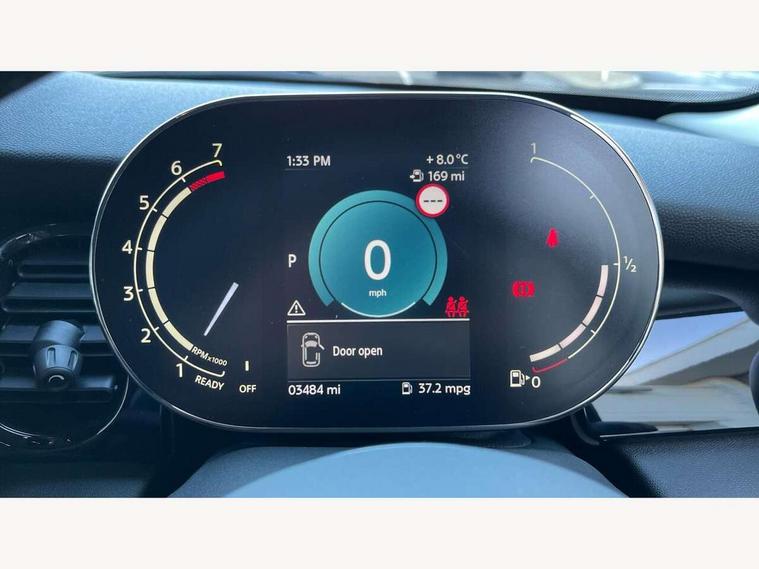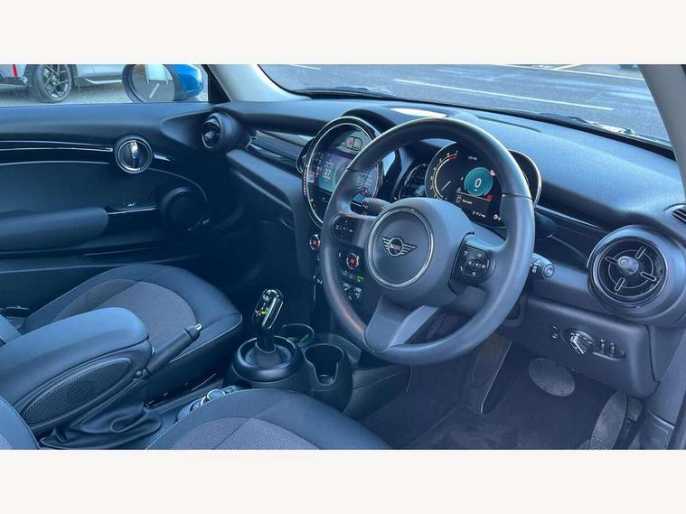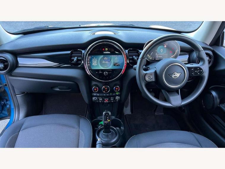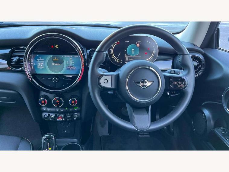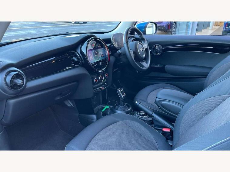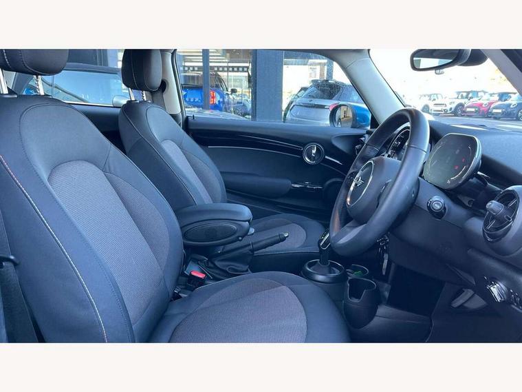 Apple CarPlay, Automatic start/stop function with brake energy recuperation, Compatible mobile phone bluetooth with audio streaming, Cruise control with brake assist, Electro-mechanical speed dependant steering assistance, Flexible car sharing preparation, Instrument cluster, Mini E-call, MINI TeleServices, On board computer, Service interval indicator, Double Vanos system, Fully variable valve control, High precision injection, Performance Control, Steptronic transmission with double clutch, 8.8" touchscreen with LED ring, FM tuner and DAB digital radio, 3rd brake light, Automatic headlight activation switch, Body colour fuel filler cap, Chrome border high gloss black slats radiator grille, Dynamic brake lights, Electric front windows, Exhaust tailpipe on left with chrome finisher, Heated rear window, Heated windscreen washer jets, LED headlight with closed ring and daytime driving lights, Metal door sill strips with MINI imprint, Model logo Cooper on right of tailgate, Rain sensor window wipers, Rear fog lights, Rear LED lights with union jack design, Rear window wiper, Side scuttle panel with integrated indicator, Sun/heat protection glass, White indicator lenses, 12V Accessory socket in centre console, 2 seat bench in 2nd row, 4 lashing eyes in luggage compartment, 60/40 split folding rear seat, Ambient lighting, Carbon black colour line - Knee roll and door armrest, Chrome interior highlights, Cupholders, Front and rear head restraints, Front and rear isofix with front passenger airbag deactivation, Front floor mats in velour, Glove compartment, Height and length steering column adjustment, Interior lighting with 12 different colours across the dashboard, underneath door bezel with illuminated laser-engraved design on central display, Leatherette gearshift lever and handbrake gaiters, LED reading lights, vanity mirror lights, front foot well light and spotlight on front seats, Manual air conditioning, Mechanical seat adjustment - forward/back & backrest for front seats and driver seat height adjust, Multifunction steering wheel, Passenger seat height adjuster, Satellite grey headlining including grab handles and clothes hooks, Single front passenger seat, Sport leather steering wheel with speed limiter and audio/communication controls, Storage compartments in doors, Sunvisors with vanity mirrors, 3 point seatbelts on all four seats, 6 Airbags - front, side, head and seat belt tensioners, Anti-lock braking system (ABS), DSC - Dynamic Stability Control, Front and rear disc brakes, Single tone fanfare horn, Tyre pressure monitoring system, Alarm system with tilt sensor, monitoring doors, bonnet interior and tailgate, Electronic vehicle immobiliser, Start/stop toggle with keyless go, Piano black interior trim, Tool kit, Tyre repair kit,