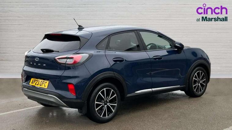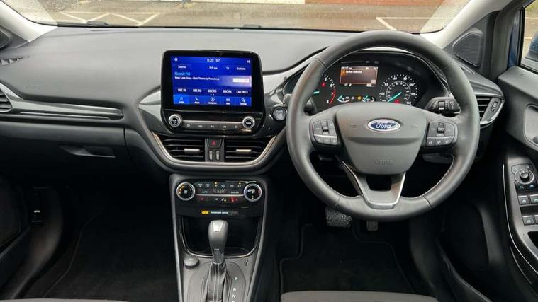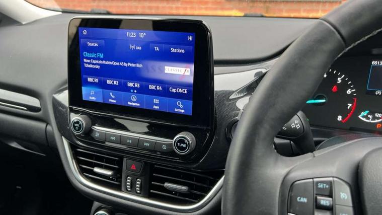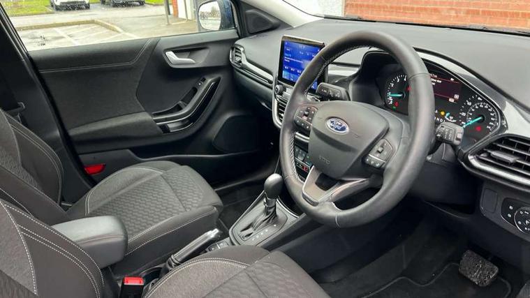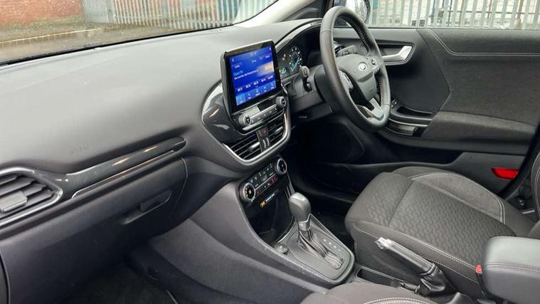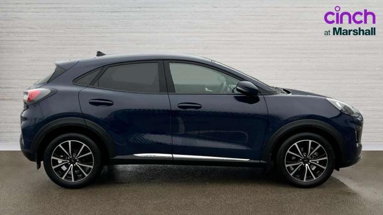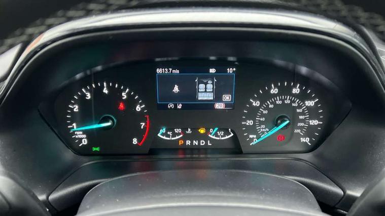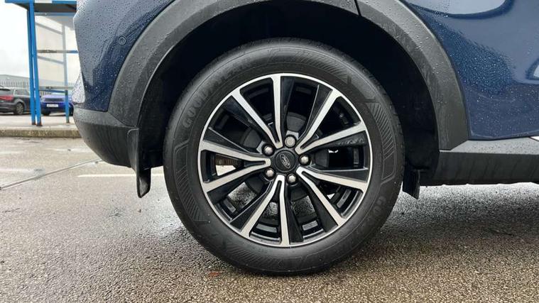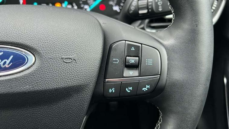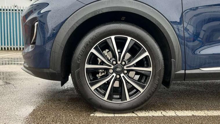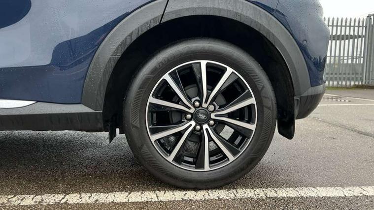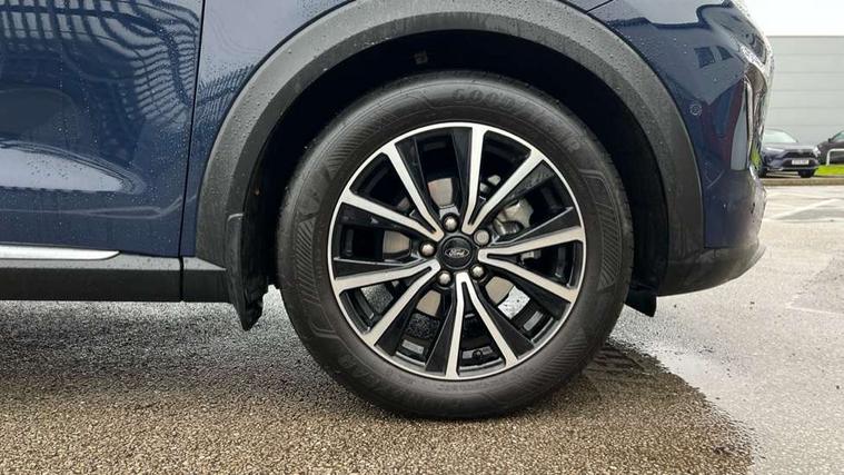 Driver impairment monitor, Emergency call service, Ford easy fuel, Lane keeping aid with lane departure warning, Power assist steering, Power start button, Rear parking sensor, Selectable drive modes(Normal, Eco, Sport, Slippery and Trail), Speed sign recognition, Standard suspension, Automatic headlights with auto high beam, Automatic rain sensing wipers, Body colour rear spoiler, LED rear lamps, Power foldable heated door mirrors with puddle lamps, Projector headlamps with LED day time running lights and front fog lamps, Quickclear heated windscreen, Rear side wing doors, Rear wiper, Third brake light, 3 seat bench in 2nd row, Centre console with armrest and stowage, Electronic automatic temperature control (EATC), Ford megabox extended bootspace, Front and rear head restraints, Front floor mats, Manual 2 way passenger seat adjustment, Manual 4 way driver seat adjust with lumbar adjustment, Sensico leather steering wheel/gear knob/handbrake, Single front passenger seat, Titanium cloth upholstery, Ford SYNC 3 navigation pack - Puma, 3 rear seatbelts, Child safety lock, Electronic stability control (ESC) and hill start assist, Pedestrian/cyclist detection & post-collision braking, Pre collision assist system, Tyre pressure monitoring system (TPMS), Thatcham alarm, 17" 10 spoke absolute black machined finish alloy wheel,