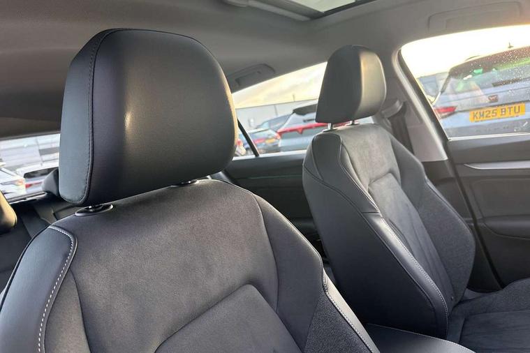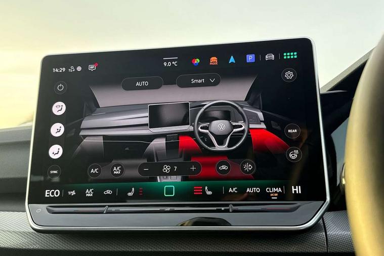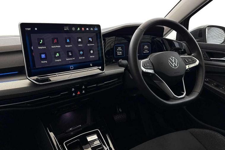 Activated carbon canister, Adaptive cruise control (ACC), Advanced driver attention and drowsiness monitor, Dynamic road sign display, E-Sim card for online connectivity, eCall emergency call system, Multi-color Digital cockpit pro, selection of different info profile possible, Multifunction front facing camera for distance control, Navigation system, Oncoming vehicle braking when turning including swerve support, Side assist blind spot lane change system, rear traffic alert and exit warning system, Speed limiter, Speedo, rev counter, electronic odometer, trip, service interval display, exterior temperature and fuel gauge, Traffic jam assist, Voice enhancer and voice control, Warning signal and warning light for front and rear seatbelts not fastened, We connect plus preparation, We connect preparation, Wireless app connect, Charging cable Mode 2 Type 2 (10A), Charging cable mode 3, type 2 32 A, Hybrid propulsion system, Start-stop system with battery regeneration (recuperation - energy recovery during braking), XDS electronic differential lock for improved traction and handling, 2 USB C ports in front, 2 USB charging sockets on the centre console in the rear charging capacity upto 45W, 6 Speakers - 4 in front and 2 in rear with central speaker, Digital radio reception (DAB), Diversity antenna for FM reception, Gaming platform via car app, Infotainment system with 12.9" display, Mobile phone interface with inductive charging feature, 3rd brake light, Automatic headlamp activation with Coming home and Leaving home feature, Body colour bumpers, Body colour door handles, Body colour door mirrors, Chrome trimmed front air intake surrounds, Chrome trims on the side window bottom, Exterior mirrors convex on the left and aspherical on the right, Front and rear electric windows, Heat insulating windshield made of laminated glass, LED separate daytime running light, Rear exhaust tailpipe, Rear fog light on one side and reversing lights on both sides, Rear side wing doors, Rear windscreen washer and wiper with interval delay, Remote electrically foldable door mirrors, puddle lights and reverse activated passenger's door mirror, Welcome light with surround lighting, 12V socket in front centre console, 12V socket in luggage compartment, 3 rear head restraints, 3 seat bench in 2nd row, Air care climatronic 3 Zone automatic climate control with rear air conditioning control panel, Ambient lighting with 30 colour including LED light unit in front footwell with selectable light colour, Chrome plated radiator grille inserts, air vent surrounds and light switch surrounds, Front + rear black carpet mats, Front centre armrest, ISOFIX anchors for child seats on outer rear bench seats and on front passanger seat compatible for i-Size, Luggage compartment lighting, Plastic gear knob, Rear cupholder and loadthough, Single front passenger seat, Soul black instrument panel, Split folding backrest with centre armrest and unsplit rear seat bench, Standard pedal cluster, Storm grey roof lining, Sun visors with illuminated vanity mirrors, Driver assistance pack - Golf Estate/Hatchback Auto, 3 point height adj front seatbelts + pretensioners, 3 rear three point seatbelts, ABS, Autonomous emergency braking front assist with pedestrian and cyclist monitoring, Child locks on rear doors, Driver and front passenger airbag with front passenger airbag deactivation, Electronic parking brake with auto hold, ESC (Electronic Stability Control), Extended pedestrian protection measures, Hill start assist, Rear disc brakes, Two tone horn, Tyre pressure loss indicator, Volkswagen roadside assistance, Anti theft wheel bolts, Preparation for alcohol interlock, New brushed dark metal decorative inserts for dashboard and front door panels, Tool kit for tyre mobility set, Tyre mobility kit Includes 12V compressor and tyre sealant,