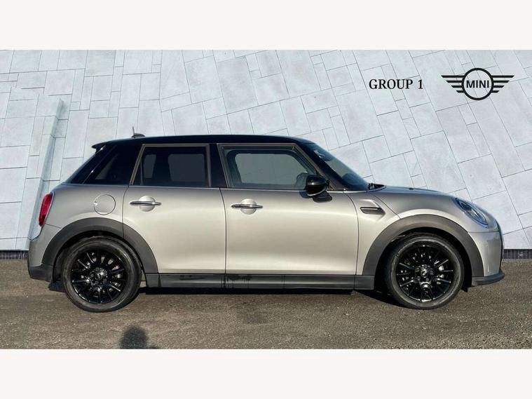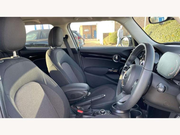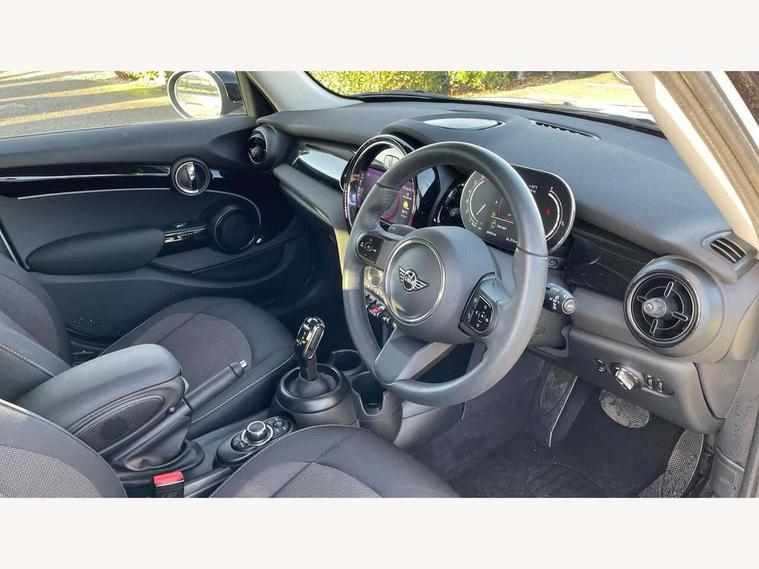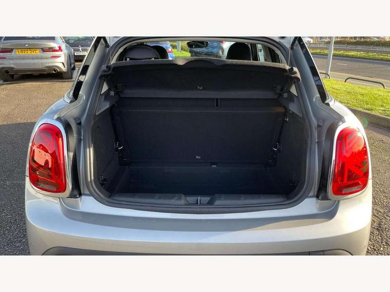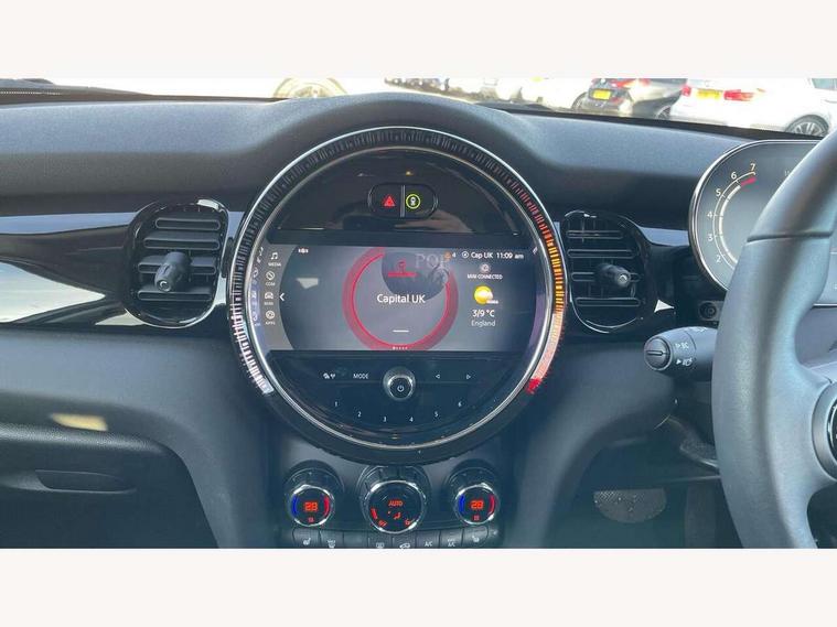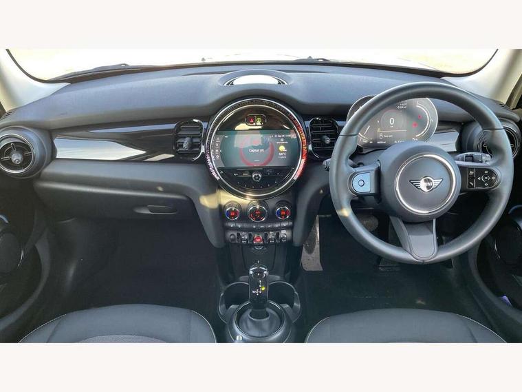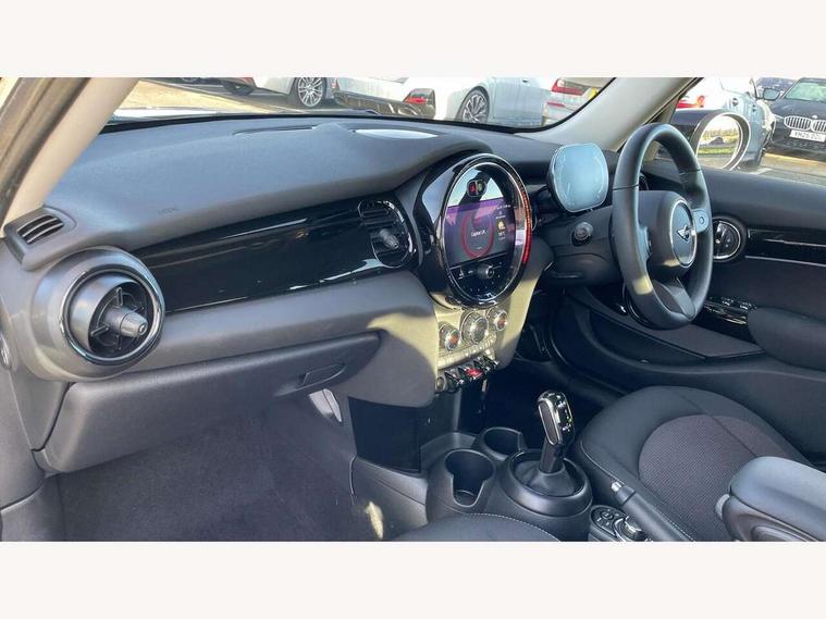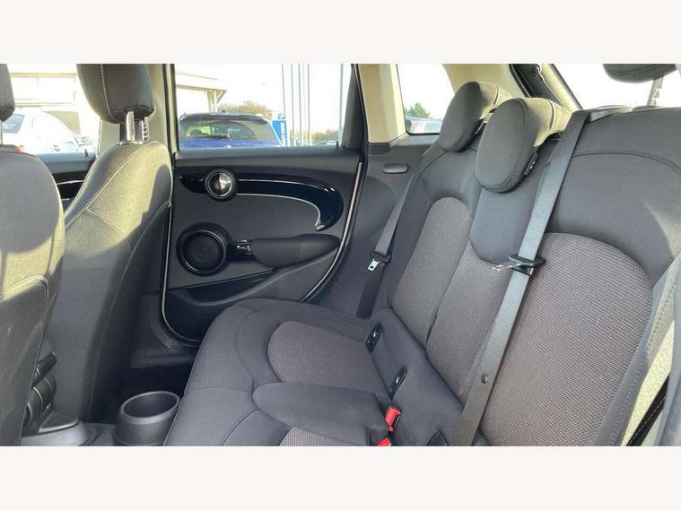 Apple CarPlay, Automatic start/stop function with brake energy recuperation, Compatible mobile phone bluetooth with audio streaming, Electro-mechanical speed dependant steering assistance, Flexible car sharing preparation, Mini E-call, MINI TeleServices, On board computer, Service interval indicator, Double Vanos system, Fully variable valve control, Gear change indicator display, High precision injection, Performance Control, Steptronic transmission with double clutch, 8.8" touchscreen with LED ring, FM tuner and DAB digital radio, 3rd brake light, Automatic headlight activation switch, Body colour fuel filler cap, Chrome border high gloss black slats radiator grille, Dynamic brake lights, Electric front+rear windows, Exhaust tailpipe on left with chrome finisher, Heated rear window, Heated windscreen washer jets, Metal door sill strips with MINI imprint, Model logo Cooper on right of tailgate, Rain sensor window wipers, Rear fog lights, Rear LED lights with union jack design, Rear side wing doors, Rear window wiper, Side scuttle panel with integrated indicator, Sun/heat protection glass, White indicator lenses, 12V Accessory socket in centre console, 3 seat bench in 2nd row, 4 lashing eyes in luggage compartment, 60/40 split folding rear seat, Ambient lighting, Carbon black colour line - Knee roll and door armrest, Chrome interior highlights, Cupholders, Front and rear head restraints, Front and rear isofix with front passenger airbag deactivation, Front and rear velour floor mats, Glove compartment, Height and length steering column adjustment, Interior lighting with 12 different colours across the dashboard, underneath door bezel with illuminated laser-engraved design on central display, Leatherette gearshift lever and handbrake gaiters, LED reading lights, vanity mirror lights, front foot well light and spotlight on front seats, Mechanical seat adjustment - forward/back & backrest for front seats and driver seat height adjust, Multifunction steering wheel, Satellite grey headlining including grab handles and clothes hooks, Single front passenger seat, Sport leather steering wheel with speed limiter and audio/communication controls, Storage compartments in doors, Sunvisors with vanity mirrors, 3 point seatbelts on all five seats, 6 Airbags - front, side, head and seat belt tensioners, Anti-lock braking system (ABS), Child locks on rear doors, DSC - Dynamic Stability Control, Front and rear disc brakes, Hill start assist, Single tone fanfare horn, Tyre pressure monitoring system, Alarm system with tilt sensor, monitoring doors, bonnet interior and tailgate, Electronic vehicle immobiliser, Start/stop toggle with keyless go, Piano black interior trim, Tool kit, Tyre repair kit,