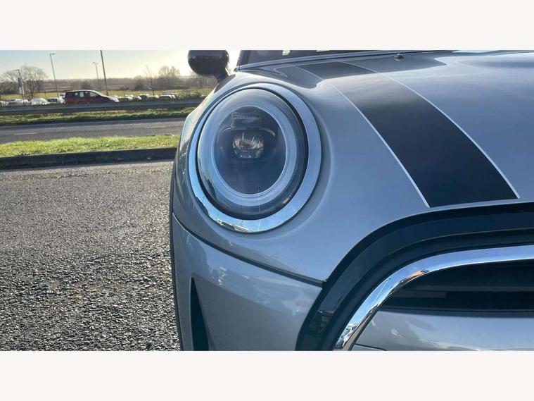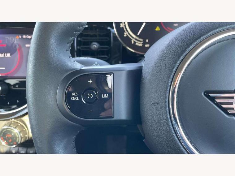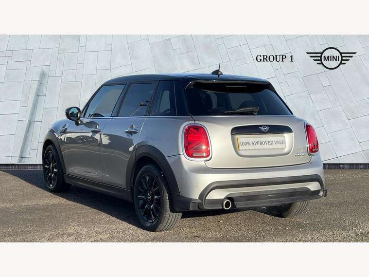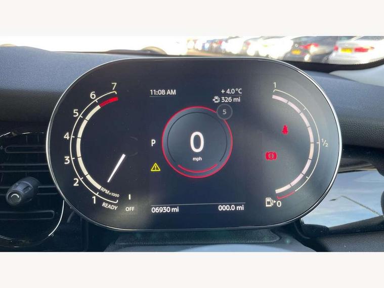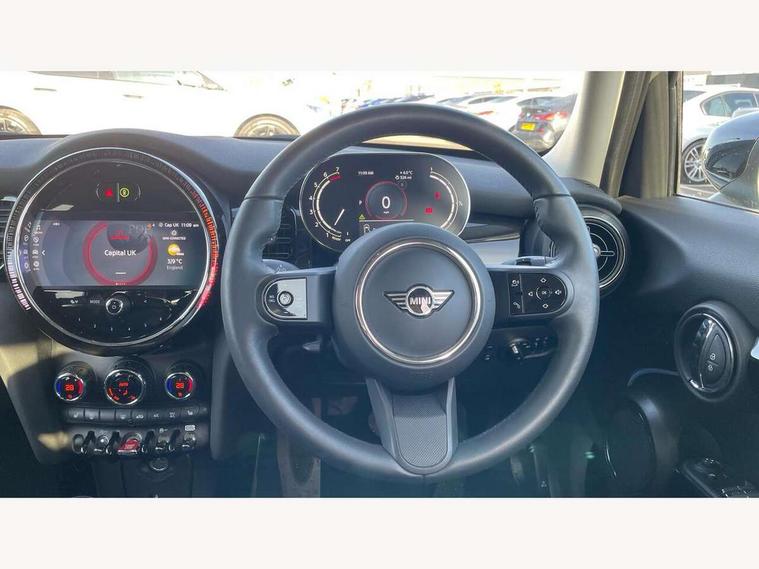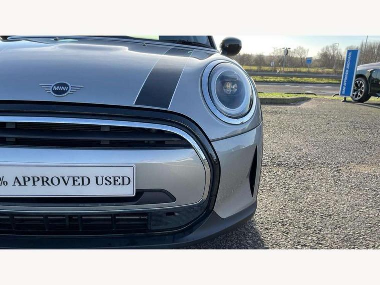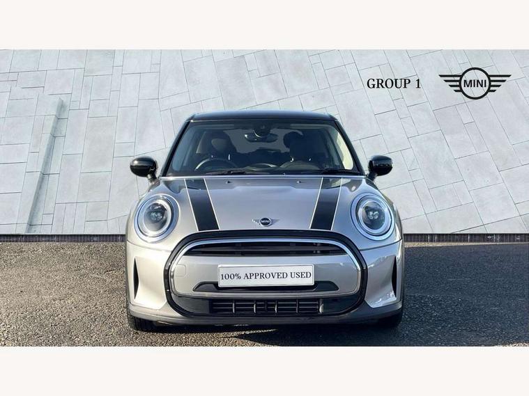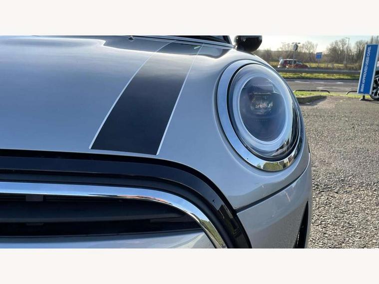 Apple CarPlay, Automatic start/stop function with brake energy recuperation, Compatible mobile phone bluetooth with audio streaming, Electro-mechanical speed dependant steering assistance, Flexible car sharing preparation, Mini E-call, MINI TeleServices, On board computer, Service interval indicator, Double Vanos system, Fully variable valve control, Gear change indicator display, High precision injection, Performance Control, Steptronic transmission with double clutch, 8.8" touchscreen with LED ring, FM tuner and DAB digital radio, 3rd brake light, Automatic headlight activation switch, Body colour fuel filler cap, Chrome border high gloss black slats radiator grille, Dynamic brake lights, Electric front+rear windows, Exhaust tailpipe on left with chrome finisher, Heated rear window, Heated windscreen washer jets, Metal door sill strips with MINI imprint, Model logo Cooper on right of tailgate, Rain sensor window wipers, Rear fog lights, Rear LED lights with union jack design, Rear side wing doors, Rear window wiper, Side scuttle panel with integrated indicator, Sun/heat protection glass, White indicator lenses, 12V Accessory socket in centre console, 3 seat bench in 2nd row, 4 lashing eyes in luggage compartment, 60/40 split folding rear seat, Ambient lighting, Carbon black colour line - Knee roll and door armrest, Chrome interior highlights, Cupholders, Front and rear head restraints, Front and rear isofix with front passenger airbag deactivation, Front and rear velour floor mats, Glove compartment, Height and length steering column adjustment, Interior lighting with 12 different colours across the dashboard, underneath door bezel with illuminated laser-engraved design on central display, Leatherette gearshift lever and handbrake gaiters, LED reading lights, vanity mirror lights, front foot well light and spotlight on front seats, Mechanical seat adjustment - forward/back & backrest for front seats and driver seat height adjust, Multifunction steering wheel, Satellite grey headlining including grab handles and clothes hooks, Single front passenger seat, Sport leather steering wheel with speed limiter and audio/communication controls, Storage compartments in doors, Sunvisors with vanity mirrors, 3 point seatbelts on all five seats, 6 Airbags - front, side, head and seat belt tensioners, Anti-lock braking system (ABS), Child locks on rear doors, DSC - Dynamic Stability Control, Front and rear disc brakes, Hill start assist, Single tone fanfare horn, Tyre pressure monitoring system, Alarm system with tilt sensor, monitoring doors, bonnet interior and tailgate, Electronic vehicle immobiliser, Start/stop toggle with keyless go, Piano black interior trim, Tool kit, Tyre repair kit,