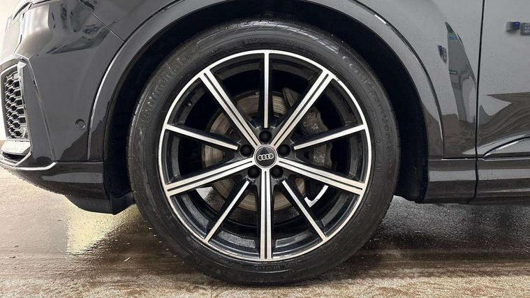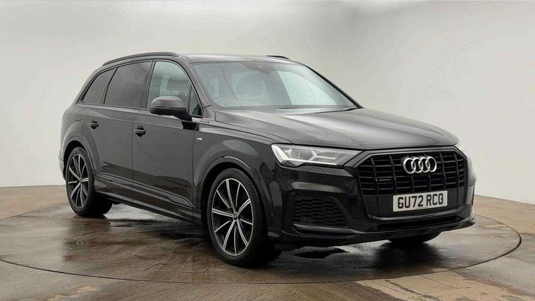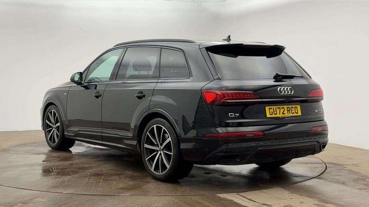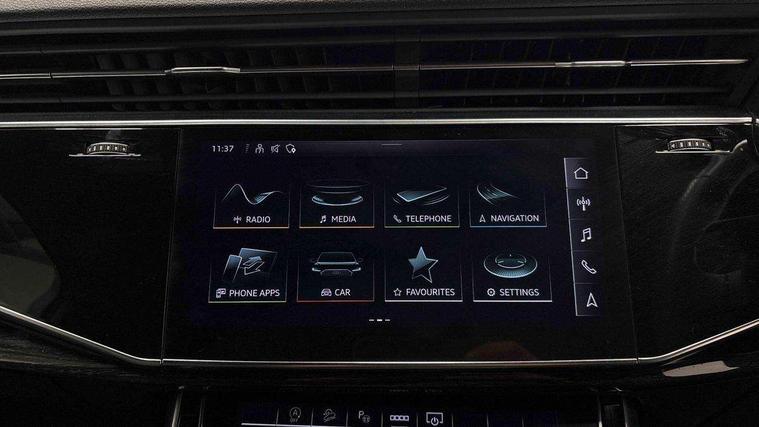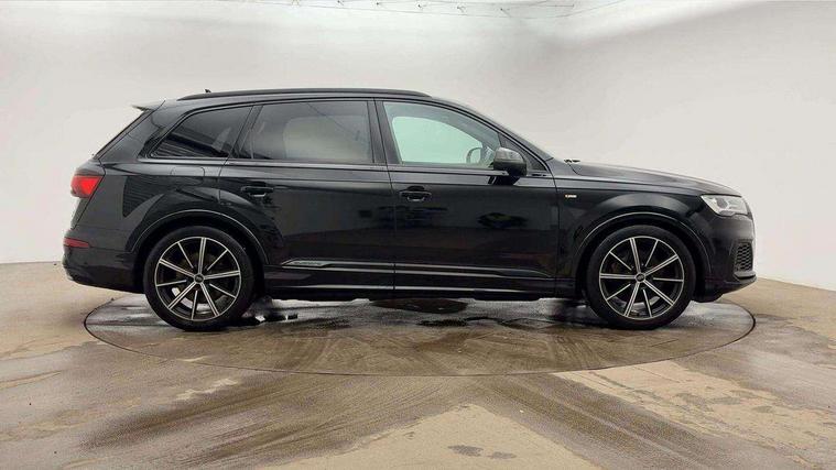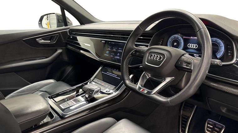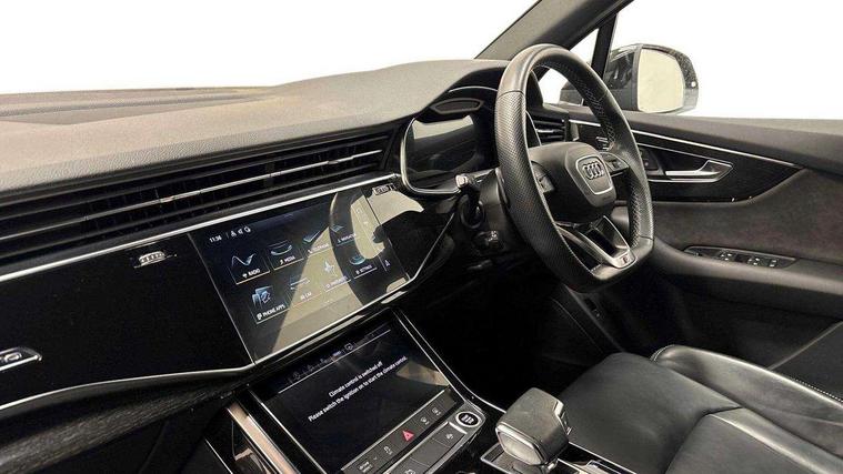 Audi connect safety and service (e-call), Audi connect with Amazon Alexa Integration, Audi drive select (Auto, Comfort, Dynamic, Efficiency, Individual, Off-road and All road), Bluetooth interface, Camera based traffic sign recognition, Electromechanical steering, MMI navigation plus with MMI touch screens includes 10.1" and 8.6" screens with haptic feedback, Natural voice recognition, Parking system plus with 360 degree display (front, rear and side sensors) - acoustic and visual park assist system, Power operated tailgate, Rear view camera, Smartphone interface includes wireless Apple carplay/Android Auto, Start/stop system, 48V Mild hybrid technology, 85 litre fuel tank, Adaptive air sports suspension, Quattro all wheel drive with self locking centre differential, Audi music interface - front 2 USB-C ports with charger and data functions, Audi sound system with 6 channel amplifier, 180 watt amplifying capacity and 10 loudspeakers including subwoofer, DAB digital radio module, 3rd brake light, Audi matrix LED headlights with dynamic front and rear indicators, Auto dimming frameless rear view mirror, Black roof rails, Bumpers in contrast paint scandium grey finish includes door trim and wheel arch trim strips, inlays in door strip contain quattro embossing, Electrically adj heated/folding + automatically dimming exterior mirrors with memory + automatic kerb side function for passenger side exterior mirror, Heat insulating glass in windshield, Integrated LED indications in door mirrors, LED daytime running lights, LED rear tail lights, Privacy glass - dark tinted rear and rear side windows from B-pillar backwards, Rear side wing doors, Rear wiper, 2 seat bench in 3rd row, 3 seat bench in 2nd row, 4 zone deluxe automatic climate control, 7 seat layout with ISOFIX points for the front passenger seat and rear passenger seat, Black cloth headlining, Comfort front centre armrest, Electric adjustable front seat with 4 way lumbar support, driver memory functionality, Folding rear seats, Front head restraints, Front/rear floor mats, Heated front seats, Illuminated door sill trims with S logo, LED interior ambient lighting, Luggage compartment cover, Luggage compartment sill protection in stainless steel, Rear head restraints, Single front passenger seat, Stainless steel pedals, Sunvisors with illuminated vanity mirrors, Titanium black styling pack - Q7/SQ7, 3 point seatbelts on all rear seats, Audi pre sense front, Child locks on rear doors, Driver and front passenger, front side and curtain airbags, Electromechanical parking brake, Electronic Stabilisation Control (ESC) including ABS, ASR and EDL, Extended pedestrian protection measures, Hill hold assist, Seatbelt monitoring, Tyre pressure loss indicator, Warning triangle and first aid kit, Anti theft alarm, Anti-theft wheel bolts and wheel loosening detection, Keyless Go, Remote central locking, Polished oak trim with grey finish inlay, Tool kit, Tyre repair kit,
