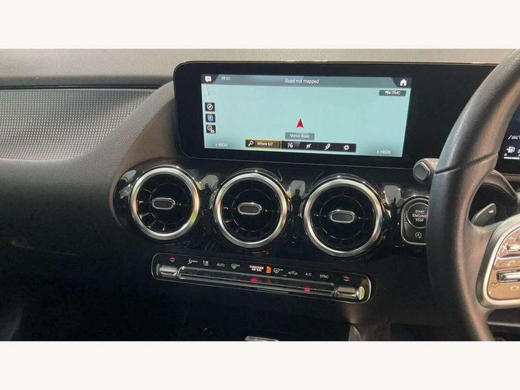 10.25 inch touchscreen central media display, 7 inch digital instrument cluster display, Active lane keeping assist, Attention assist, Cruise control + speed limiter, DYNAMIC SELECT with a choice of driving modes (ECO, Comfort, Sport and Individual), ECO start/stop function, Fluid level warning indicator for fuel, oil, coolant and washer fluid, Hard-disk navigation, Hey Mercedes Voice activation, Lamp failure indicator, Mercedes me connect including emergency call system, accident recovery, breakdown and maintenance management, Mercedes me remote services, Multi function trip computer, Outside temperature gauge, Owners manual and service booklet in English, Pre-installation of private car share, Radio aerial integrated into front and rear windshields, Service indicator (ASSYST), Smartphone integration with Apple CarPlay and Android auto, Speed limit assist, Speed sensitive power steering, Status display for rear seat belts in instrument cluster, Comfort suspension, Rear axle multi-link, 2 USB ports (type C) in rear stowage compartment and one in front of center console, Bluetooth connectivity including audio streaming, DAB Digital radio, MBUX multimedia system, Media interface, Mercedes-Benz sound system - 100W, Adaptive brake lights, Aerial for GPS, Aluminium roof rails, Automatic headlamp activation, Beltline strips and weather strip in chrome, Black grained claddings with chrome parts, Body colour bumpers, Body colour door handles, Body colour door mirrors, Car wash function, Dark chrome front and rear apron trim, Electric front windows, Electric rear windows, Electrically adjustable and heated door mirrors with integrated LED indicators, Exhaust system with dual flow exhaust pipes in chrome (non-functional), Front bumper with underride guard in high gloss chrome, Front door sills with Mercedes-Benz lettering, Heated glass rear windscreen + timer control, Heated windscreen wash system, Interior mirror with black reading lamps and frameless, LED high performance headlamps with integrated LED daytime running lights, LED tail lights in two piece design, LED third brake light, Rain sensor windscreen wipers, Rear fog lights, Rear side wing doors, Rear wiper, Roof spoiler, Simulated body styling underguard in matt chrome, Single lamella radiator grille painted in silver matt with chrome inlay and black dots, 12V power socket in centre console, 3 seat bench in 2nd row, 3 spoke leather multifunction sports steering wheel with chrome elements, 40:20:40 split folding rear seat backrests, Adjustable head restraints, Air conditioning - Two zone thermotronic luxury automatic climate control with display, Artico man-made leather/Bertrix fabric upholstery, Auto Mercedes-Benz child seat recognition sensor, Black roof lining, Comfort seats, Courtesy light in boot, Floor mats in velour, Front centre armrest with stowage, Gearshift paddles, Heated front seats, Illuminated glovebox, Leather trimmed gearknob, Luggage net on driver/front passenger seat backrest, Manually height and reach adjustable steering column, Multi-gesture touchpad control on center console, Single front passenger seat, Stowage compartment in centre console, Stowage compartment with retractable cover, Sunvisors with illuminated vanity mirrors, Twin front cup holders, Two outer rear seat isofix and top tether child seat fixing points, Comfort seat pack - GLA Class, Interior lighting with light and sight pack - GLA, Load compartment pack - GLA, Mirror pack - GLA Class, Parking pack - GLA, 3 rear 3 point seatbelts, ABS with Brake Assist, Active bonnet pedestrain safety measure which detects an impact and raises bonnet by 65mm, Active brake assist includes forward collision warning system with autonomous braking, Adaptive brake assist with hold function and hill start assist, Bonnet with power domes, Brake pad wear warning indicator, Childproof locks manually operated for rear doors and electrically operated for rear power windows, Crash responsive emergency lighting, Driver and passenger head and side airbags, Drivers knee airbag, Dual stage driver/passenger airbags, Electronic parking brake, ESP curve dynamic assist, ESP with ASR, Front and rear seatbelt reminder, Front passenger seat occupancy sensor, Tyre pressure monitoring system, Warning triangle and first aid kit, Window airbags, Alarm system with immobiliser and interior protection -Thatcham category 1, Keyless Go starting function, Remote central locking and crash sensor with emergency opening function, Urban guard vehicle protection, Vehicle key with decorative surround in chrome, Chrome air vent surrounds, Spiral look trim, 18" 5 twin spoke light alloy wheels aerodynamically optimised painted in black with a high sheen finish, Summer tyres, Tirefit tyre sealant kit,