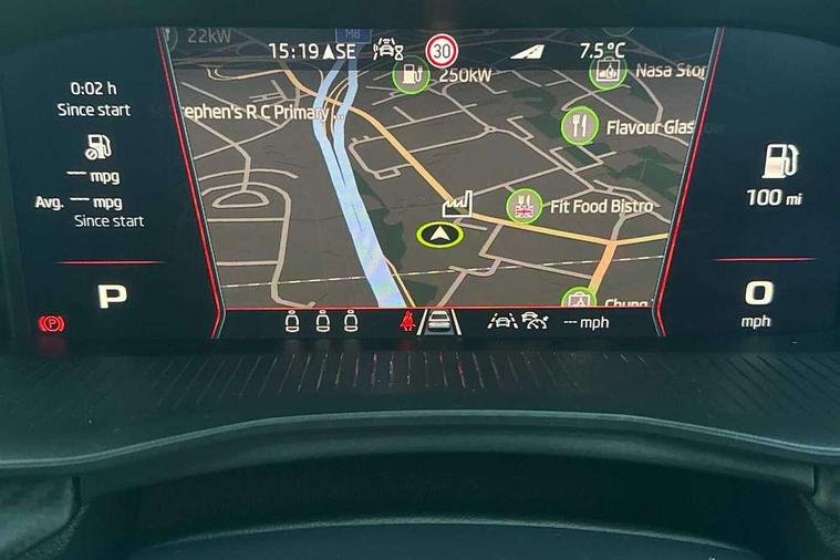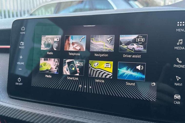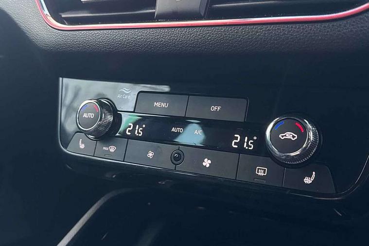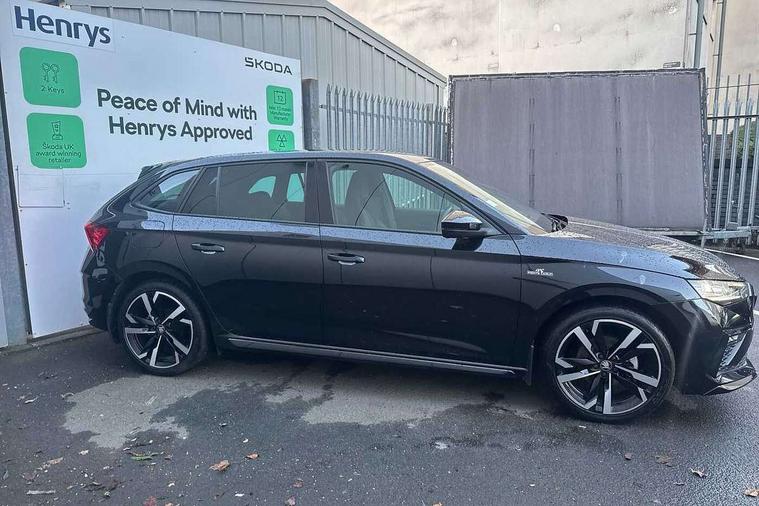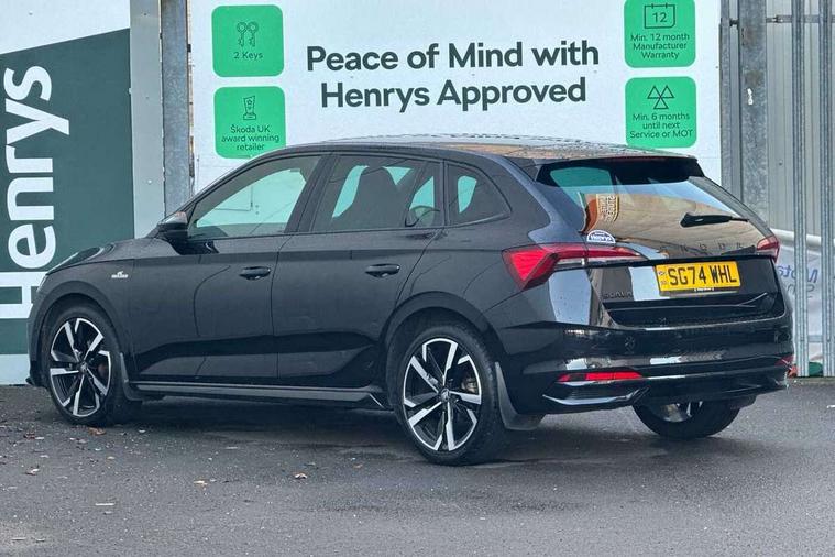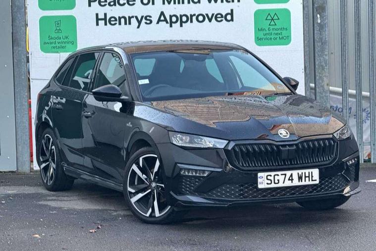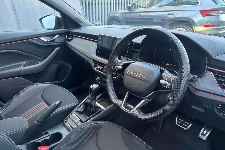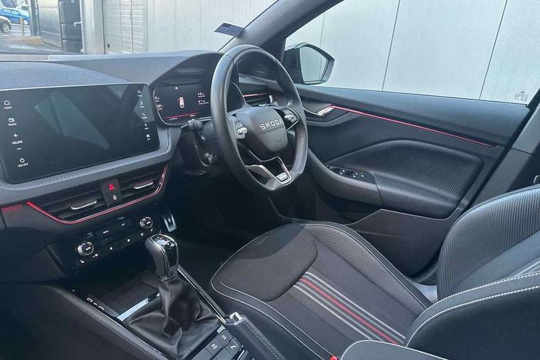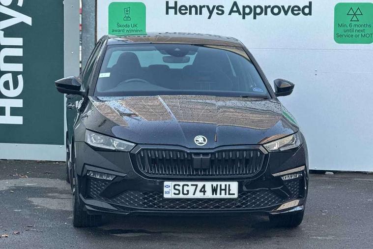 Advanced driver attention and drowsiness monitor, Bluetooth, e-Call (emergency call), Front assist system, PAS, Rear parking sensors, Rear view camera, Speed limiter, Tailgate, Traffic sign recognition, Virtual Cockpit - 10.25" digital display, Voice control system, Wireless smartlink, 4 USB C ports, 8 Speakers, 9.2" Skoda navigation display, DAB radio, Auto dimming rear view mirror, Automatic headlamp activation with Coming home and Leaving home feature, Automatic high/low beam, Automatic intermittent wipers, Black door mirrors, Black lettering on boot lid, Black radiator grille, Black rear diffuser, Black roof spoiler, Body colour bumpers, Body colour door handles, Chrome moulding around grille, Extended tailgate glass, Front and rear electric windows, Heated rear window, LED 3rd brake light, LED brake lights, LED daytime running lights, LED high beam, LED low beam, Light sensors, Monte carlo plaque, Panoramic glass roof, Privacy glass, Rear LED fog light, Rear side wing doors, Rear wiper, Tinted windows, Unique dark chrome design logo on alloy wheels, 12V socket in luggage compartment, 3 seat bench in 2nd row, Aluminium pedals, Ambient lighting in white/red, Black / White armrest stitching, Black ceiling, Black roof headlining, Cargo elements, Chrome inner door handles, Door inserts in art.leather carbon, Driver and passenger sun visors with vanity mirror, Dual zone climate control, Front and rear roof lights, Front centre armrest, Front head restraints, Height adjustable driver seat, Height adjustable passenger seat, Ice scraper, Illuminated glove compartment, Inner circulation control with pollen filter, ISOFIX for front passenger seat, Isofix preparation for back seats, Leather gearknob and handbrake lever, Luggage net under rear parcel shelf, Manual lumbar support for front seats, Monte Carlo cloth upholstery, Net package and top tether hooks in boot space, Pocket on the back of both front seats, incl. mobile phone pockets, Rear centre armrest, Red hotstamping, Single front passenger seat, Skoda lettering on steering wheel, Sport seats, Textile floor mats, Third rear headrest, Ticket holder, Top tether for front passenger seat, Umbrella in driver's door, Light and view plus pack - Scala, 3x3 point rear seatbelts, ABS, Child locks, Curtain airbags and front side airbags, Disc brakes, Driver and front passenger airbags, ESP, Hill hold control, Manual leather parking brake, One tone horn, Passenger airbag switch off function, Seatbelt reminder for driver and front passenger, Tyre pressure monitoring system, Anti theft alarm system with interior monitoring, backup horn and towing protection, Anti-theft wheel bolts, Remote central locking with 2 remote folding keys, SAFE function for remote central locking, Carbon effect decorative inserts, 18" Ursa black diamond cut alloy wheels,