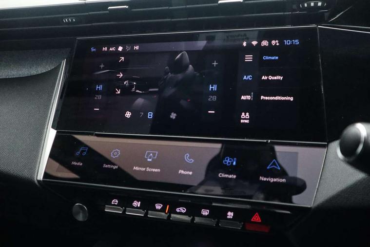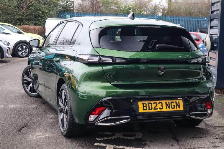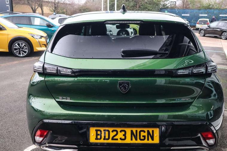 10" Capacitive colour touchscreen with connected 3D navigation, Bluetooth telephone facility, Compact automatic gearbox impulse selector, Driver attention warning, E-remote control, Emergency call service, Exterior temperature indicator with ice warning, Intelligent speed adaptation, Lane keep assist, Mirror screen with mirror link, apple carplay and android auto, Multi driving mode selector - Electric/HYBRID /Sport mode, Multi function trip computer, PEUGEOT i-Cockpit with 10" digital instrument panel display, PEUGEOT i-Cockpit with compact steering wheel, Rear parking sensor, Service interval indicator, Speed limit recognition and recommendation, Sport pedals with foot rest, Wireless charging, Mode 3 type 2 cable for wallbox charging, 6 speakers radio with mp3 compatible, DAB Digital radio, Peugeot customisable iToggles, Steering column mounted multifunction controls, Voice recognition for radio, navigation and telephony features, Acoustic and tinted windscreen, Automatic hazard light activation upon heavy brake application, Automatic triggered rear windscreen wiper in reverse gear, Body colour door handles, Dark tinted rear side and tailgate windows, Dichroic hybrid badging, EcoLED headlights, Electric operated/heated door mirrors, Framed electrochromatic rear view mirror, Front and rear electric windows with one touch/anti pinch, Front grille with horizontal chrome stamping, Gloss black finish B pillar, Gloss black rear cluster connecting strip, High beam assist, LED rear number plate lights, LED side indicator lights integrated into door mirrors, Manual headlight position correction/adjustment, Model designation badges on front and rear, Nera black door mirrors, Peugeot signature LED daytime running lights, Power folding door mirrors, Rain sensor, Rear full LED 3D peugeot signature claw effect lights with daylight function, Rear lower bumper gloss black diffuser effect trim, Rear reversing lights, Rear side wing doors, Tailgate with heated rear windscreen and wiper blade, Twin exhaust pipes with chrome surround, 1/3 to 2/3 split folding rear seats, 12V socket, 2 front USB socket including 1 USB type c, 3 seat bench in 2nd row, 8 Colour personalisable ambient lighting, Automatic air conditioning with AQS 3, Central front armrest with storage compartment, Driver and front passenger seat height adjustment, Driver and front passenger seat manual adjustment in longitudinal and back rest angle, Driver seat lumbar adjustment, Dynamic front seats, Electric power steering with reach and rake adjustable steering column, Falgo tri-material with isabella leather effect and cloth upholstery, Front central console with two cup holders, Manual driving mode - change gear manually via steering mounted paddles, Multifunction split leather and gloss steering wheel, Piano keys gloss black plated toggle switches to access main functions of the vehicle, Roof lining - light grey, Seatbelt unfastened on the move audible and visual alert for front and rear seats, Single front passenger seat, Ski hatch with central rear armrest with cup holder, Sunvisor with concealable mirrors and LED lighting, Visibility pack with automatic magic wash windscreen wipers - 308, 2x Isofix child seat fitting on outer rear seats, 3x Rear three-point retractable seatbelts with force limiters in the outer rear seats, ABS + EBD + EBA, Active safety brake with night function/cyclists/pedestrians, Adaptive driver and front passenger airbags with passenger airbag deactivation function, Automatic post collision braking, Child locks on rear doors, Driver/front passenger side airbags, Electronic parking brake, ESP, Front and rear curtain airbags, Front optimised safety headrests and rear retractable headrests (x3), height adjustable, Front three point retractable seatbelts with force limiters, Front/rear disc brakes, Hill start assist, Tyre pressure sensor, Acoustic vehicle alert system (AVAS), Automatic door locking when moving off, Deadlocking system, Electronic code immobiliser, Locking wheel nuts, Thatcham cat. 1 alarm with anti lift sensor, 17" Calgary diamond cut alloy wheels,