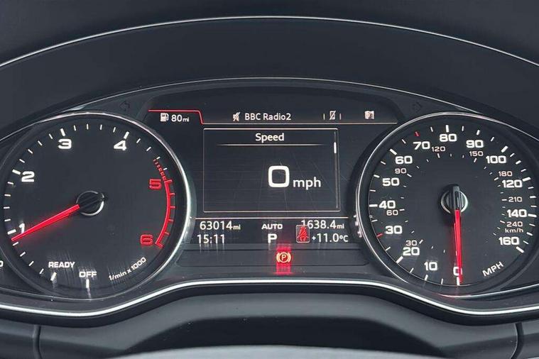 Audi connect, Audi drive select, Audi smartphone interface, Driver information centre with colour display in instrument panel, Electric power steering, Power tailgate, Remote electric boot opening/closing, SD card based MMI navigation, Service interval indicator, Voice control system, Diesel particulate filter, 2 USB ports, Audi sound system, Auxiliary input socket, CD player, DAB Digital radio, MMI radio plus with 7" colour MMI screen and MMI controller, Acoustic windscreen, Aluminium roof rails, Aluminium sill plates, Auto dimming rear view mirror, Black high gloss front air inlet in matt aluminium effect, Body colour bumpers, Body colour door mirrors, Body colour rear diffuser insert, Chrome exhaust tailpipe, Electric headlight adjustment, Electrically adjustable and heated door mirrors, Front and rear electric windows, Front fog lights, Headlight range control, Headlight washers, Honeycomb side air inlet in titan black, Light and rain sensor for auto activation of lights and windscreen wipers, Loading sill protector in stainless steel, Privacy glass with front acoustic glazing, Rear diffuser strip in matt aluminium silver, Rear spoiler, Rear wiper, S Line side skirts, Selenite silver underbody guard, Twilight grey matt radiator grille with matt aluminium horizontal chrome struts, 3 rear headrests, 3 zone climate control, 4 way electric lumbar support for driver and front passenger, 40:20:40 split folding rear bench seat, Black cloth headlining, Front centre armrest with 12v socket, Front sports seats, Front/rear floor mats, Height adjustable driver's seat, Height adjustable front head restraints, Illuminated door sills, Isofix front passenger and rear seat preparation, Jack and tool kit, Load compartment cover, Luggage compartment carpet, Matt selenite silver door inserts, Perforated leather gearknob, Reach + rake adjustable steering column, Removable luggage compartment floor, Removable net partition, Roller blind loadspace cover, Stainless steel pedals, Sunvisors with vanity mirrors, Non Smokers pack, 3 point seatbelts on all seats, ABS, Curtain airbags, Driver and passenger airbags, Driver and passenger side airbags, Electromechanical parking brake, ESC with ASR, ESP, First aid kit, Front passenger airbag deactivation, Hill descent control, Seat belt force limiter, Seatbelt warning lamp, Traction control, Tyre pressure monitor, Warning triangle, Keyless Go access/ignition system, Locking wheel bolts, Remote central locking, Thatcham category 1 alarm + immobiliser, Contrast stitching,
