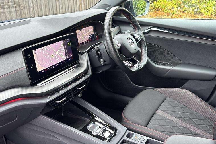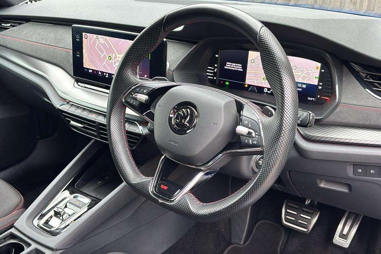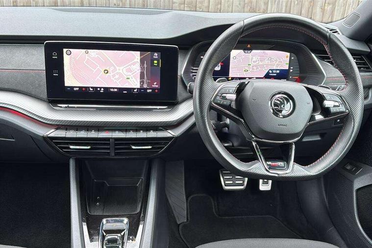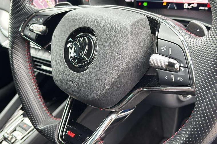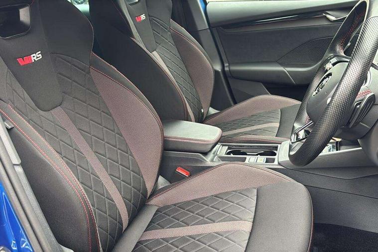1x USB Type C port in rear view mirror (charging only), 2x USB Type C ports in rear of front centre armrest (charging only), Bluetooth system, Columbus satellite navigation with 10" touchscreen display, Driver fatigue sensor, eCall emergency system, Front and rear parking sensors with manoeuvre assist, Front assist system, Progressive dynamic steering, Speed limiter, Turn Assist, Virtual Cockpit - 10.25" digital display, Virtual pedal with electrically operated boot door (Rear LED lights (high functionality), dynamic indicators, Voice control system, Wireless SmartLink for Apple Car Play, Electronically controlled limited slip differential, Front and rear stabilizers, 2x USB Type C ports (for charging and data transfer), 8 Speakers, DAB Digital radio, Aero front windscreen wipers with intermittent function, Auto dimming rear view mirror, Body colour door handles, Chrome exhaust tailpipes, Door sills with vRS logo, Electric front and rear windows, Exterior gloss black sports styling including front grille, side strip, window surrounds, door mirror and badging, Full LED Matrix headlights with AFS, rear LED lights (high functionality) and dynamic indicators and cornering front fog lights, Headlight washers, Heated rear windscreen, High level third brake light, Ice scraper in fuel cap, LED daytime running lights, Rain and light sensors, Rear fog light on one side, Rear privacy glass, Rear side wing doors, vRS bumpers and lip spoiler, 3 rear headrests, 3 seat bench in 2nd row, 4 foldable roof handles, Aluminium pedals, Black headlining, Black microsuede padded dash panel with red contrast stitching, Chrome inner door handles, Front centre armrest, Front head restraints, Heated front seats, Illuminated glovebox, Leather trimmed gearshift lever, Luggage compartment lighting x1 light, Mechanical rear seat release, Parcel shelf - folding, Single front passenger seat, Sunglasses storage, Textile floor mat set, Three spoke leather sports multifunction steering wheel with paddles, Ticket holder, Umbrella in door panel, Unsplit rear bench seat and split folding backrest, LED interior light pack - Octavia, 3 point front/outer rear seatbelts+pre-tensioners, Alarm with interior monitoring, tilt sensor and back up horn, Automatic door unlocking in case of crash, Automatic fuel cut off in case of crash, Automatic warning lights in case of emergency braking, Curtain airbags and front side airbags, Driver and front passenger airbags, Drivers knee airbag, Electronic parking brake, ESC including ABS, EBV, MSR, ASR, EDS, HBA, DSR, Front and rear disc brakes, Front central airbag, Hill hold control, Hill start assist, ISOFIX on front passenger seat and outer rear seats, Manual rear child locks, Passenger airbag deactivate switch, Pro active services, Red brake calipers, Two tone horn, Tyre pressure monitor, Visual and acoustic seat belt reminder, Warning reflectors in front door, Door locks with immobiliser, Keyless entry and start/stop including rear doors, Remote central locking, Carbon optic decorative inserts, Gloss black air vent surrounds, 19" Altair anthracite alloy wheels,