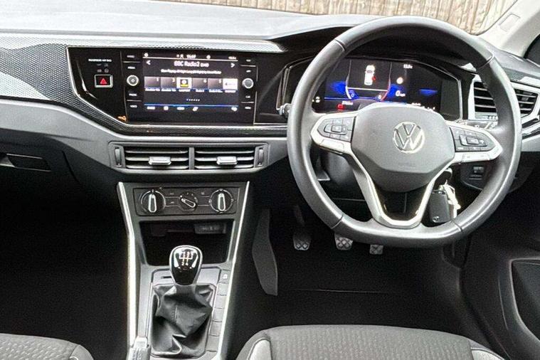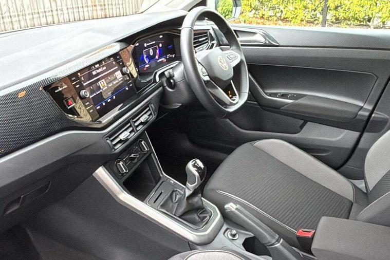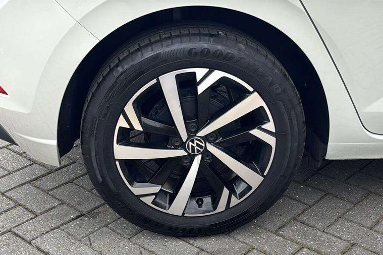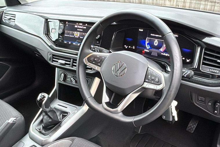 Adaptive cruise control without follow-to-stop and speed limiter, Advanced driver attention and drowsiness monitor, Bluetooth mobile phone interface, Dynamic road sign display, Emergency call service, Multifunction front facing camera for distance control, Park distance control, Power assisted speed sensitive steering, Preparation for navigation system with media and internet package, Preparation for We connect and We connect plus, Rear view camera, Speedo and rev counter, electronic odometer, trip, service interval display and exterior temperature gauge, Standard rear axle, Travel Assist - Lane keeping system and traffic jam assist, Travel assist including emergency assist, Trip computer, Warning signal and warning light for front and rear seatbelts not fastened, Washer fluid level indicator, Wireless app connect, Front wheel drive, Rear shock absorpion, Start-stop system with battery regeneration (recuperation - energy recovery during braking), DAB Digital radio, Diversity antenna for FM reception, Front and rear 6 speakers, Automatic dimming interior rear view mirror, Automatic headlight control with LED separate daytime running lights with coming/leaving home function, Body colour bumpers with chrome inserts, Body colour door handles, Body colour door mirrors, Electric front windows, Engine badge deletion, Headlight range adjustment, Heat insulating and laminated safety glass windshield, LED Headlights, LED rear combination lamps, Power folding adjustable/heated exterior mirrors and front passenger exterior mirror lowering function, Rain sensor, Rear electric windows, Rear fog light, Rear side wing doors, Rear tinted glass from B-pillar backwards approx 65% tinted, Rear windscreen washer and wiper with interval delay, Third brake light, 12V power socket in centre console, 2 front and 2 rear reading lights with switch off delay and dimmer, 2 USB-C ports in the front, 2 USB-C charging sockets on the center console in the rear, 3 rear head restraints, 60/40 split folding rear seat and rear seat bench not split, Ceramique roof lining, Chrome plated radiator grille inserts, air vent surrounds and light switch surrounds, Door and side trim panel, Driver and front passenger seat height adjustment, Driver/passenger sunvisors with illuminated vanity mirrors, Front centre armrest, Front seat backrest storage pockets, Front standard seats, Handbrake lever handle in leather, Hartley/Thomas cloth upholstery, Headliner in recycled material, Isofix child seat preparation easy-fit (for two outer rear seats, and front passenger seat) compatible with I-size, Leather trimmed gear knob, Luggage compartment cover, Luggage compartment lighting, Removable luggage compartment floor, Single front passenger seat, Standard climatic zones, Standard pedal cluster, Three spoke leather wrapped multifunction steering wheel, Light and vision pack - Polo, 3 point height adj front seatbelts + pretensioners, 3 point seat belt for centre rear seat, 3 point seatbelts, outer rear with ECE lable, ABS, Driver and front passenger airbag with front passenger airbag deactivation, Drivers and front passengers safety optimised head restraints, ESC (Electronic stability control) + EDL (Electronic Differntial lock) and ASR (Traction control), Extended and predictive pedestrian/ cyclist protection, Front assist with autonomous emergency braking (for Adaptive Cruise Control ACC up to 130 mph), Front curtain and side airbags with center airbag, Front disc brakes, Hill hold control, Manual child lock in rear doors, Rear drum brakes, Single tone horn, Tyre pressure loss indicator, Alarm with interior protection, Anti-theft alarm system with interior monitoring, backup horn, and towing protection, Anti-theft wheel bolts, Electronic engine immobiliser, Lava stone black gloss/matt decorative inserts in dash and front door panels, 16" Torsby alloy wheels, Low rolling resistance tyres,