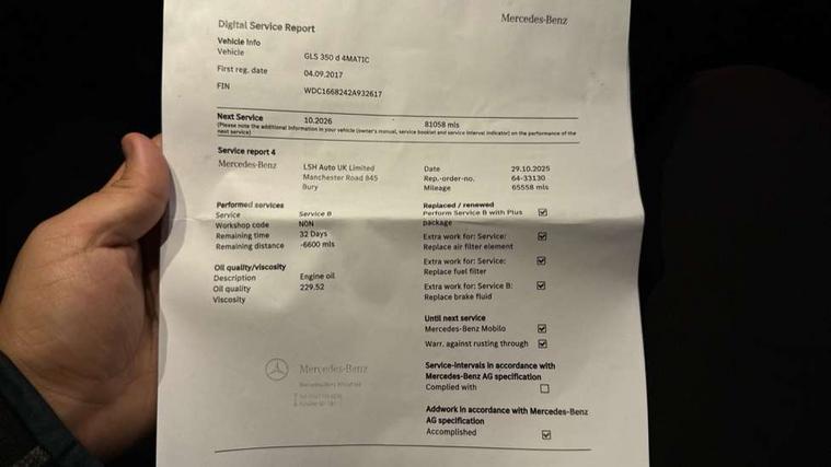 Attention assist, Bluetooth interface for hands free telephone, Collision prevention assist plus, COMAND HDD Navigation with media interface, radio/CD/DVD/MP3, 8" screen, linguatronic voice control, memory card slot, Crosswind Assist, DYNAMIC SELECT with a choice of driving modes (ECO, Comfort, Sport, Sport+ and Individual), Easy-pack tailgate - Powered opening/closing automatically, Outside temperature gauge, Parking pilot with front and rear sensors, steering assist and 360 camera, Service indicator (ASSYST), Smartphone integration with Apple CarPlay and Android auto, Speed limit and traffic sign assist, Speed sensitive steering, Trip computer, Adaptive damping system, Airmatic air suspension, Diesel particulate filter, 2 USB ports in centre console, DAB Digital radio, Adaptive brake lights, Adaptive high beam assist plus, Aluminum running boards with rubber studs, AMG bodystyling, Body coloured bumpers, Electric windows, Fixed panoramic sunroof with electric sunblind, Headlamp assist, Heated screen wash system, Intelligent LED headlight system with active cornering lights, LED daytime running lights, LED rear lights, Privacy glass, Rain sensor windscreen wipers, Tinted glass, 12V socket in luggage compartment, 12V socket in passenger compartment, Ambient lighting with three colour setting, Auto Mercedes-Benz child seat recognition sensor, Easy-pack folding rear seat backrests, Electrically folding 3rd row seats, Front centre armrest with storage compartment, Front cupholders x 2, Front/rear reading lights, Gearshift paddles, Head restraints for all seats, Heated front seats, Heated rear seats, Illuminated door sills, Isofix child seat attachment, Leather upholstery, Load securing rings in luggage compartment, Luggage cover, Manual height/reach adjust steering wheel, Rear cupholder, Rear folding armrest, Storage and 12V socket in front centre console, Sunvisors with illuminated vanity mirrors, THERMOTRONIC automatic climate control, Velour floor carpets, Memory package - GLS, Mirror pack - GLS, 3 point seatbelts on all seats, ABS with Brake Assist, Active bonnet, Adaptive brake system, Airbags - windowbags, Brake calipers with Mercedes-Benz lettering + perforated brake discs, Downhill speed regulation (DSR) with switch, Driver/Front Passenger airbags, Drivers knee airbag, Electrically adjustable easy entry for rear seats, Electronic four wheel traction control, Electronic parking brake, ESP with ASR, Front side airbags, Hill start assist, Pre-safe system for anticipatory occupant protection, Rear seatbelt warning indicator, Rear side airbags, Sports braking system, STEER Control - steering assistance system, Tyre pressure monitor, Warning triangle and first aid kit, Alarm system/interior protection/immobiliser, Keyless Go access/ignition system, Remote central locking,