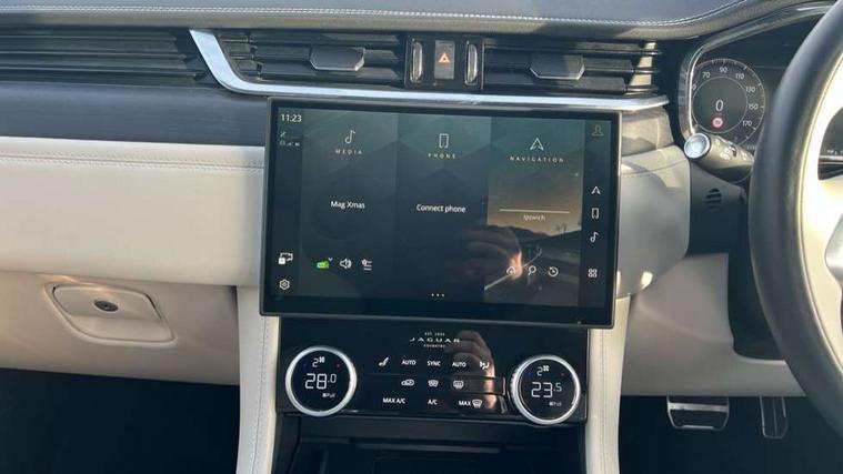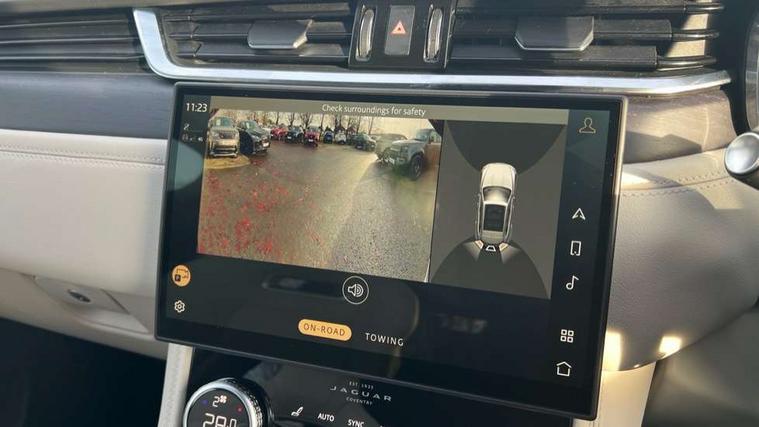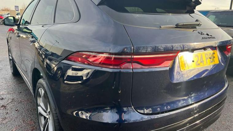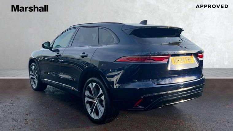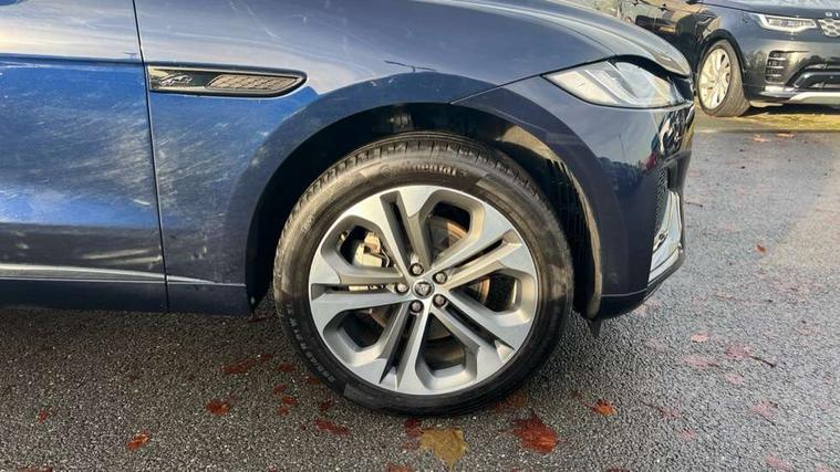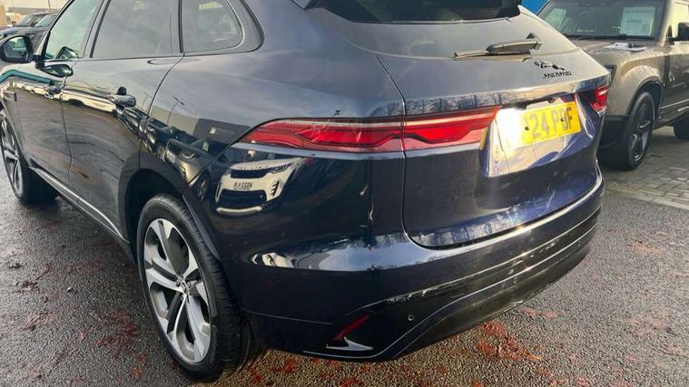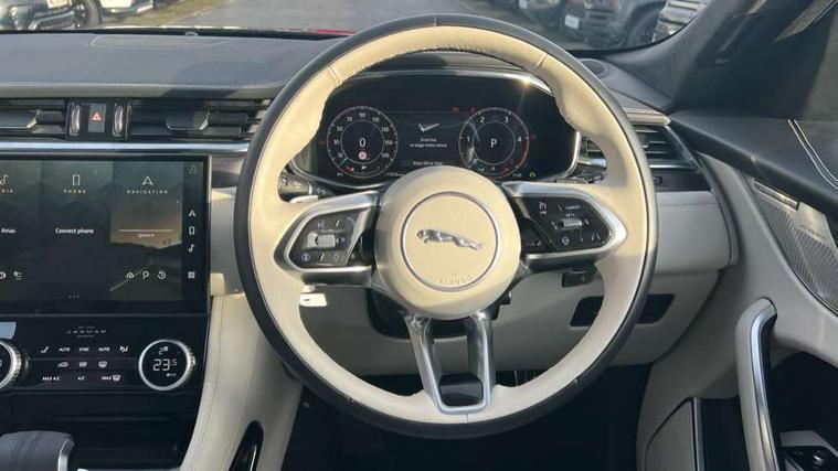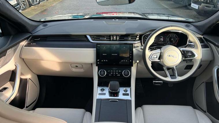 11.4" touchscreen, Adaptive cruise control with steering assist, Android Auto, Apple car play, Blind spot assist, Bluetooth connectivity, Clear exit monitor, Driver alert system, Driver condition monitor, eCall emergency call system, Eco driving style assistant, Electric power assisted steering, InControl remote, Interactive driver display digital with 12" TFT display, Jaguar Toggle shift selector, Lane departure warning system, Lane keep assist, Outside temperature gauge, Personalisation profile management, Pivi pro connected navigation system with app interface and media storage, Pro services and wifi hotspot, Push button starter, Rear collision monitor, Rear traffic monitor, Service interval indicator, Speed proportional steering, Start up sequence with movement in dials and lighting, Traffic sign recognition with adaptive speed limiter, Trip computer, Voice control system, Wireless device charging, 8 speed automatic transmission, Adaptive dynamics, All terrain progress control, All Wheel Drive (AWD), Configurable dynamics, Open differential with torque vectoring by braking, AM/FM radio, Bluetooth streaming, DAB Radio (Digital Audio Broadcasting), Dynamic volume control, InControl apps, InControl protect, iPod integration, 3 flash lane change indicators, AHBA and animated directional indicators, Approach Illumination, Auto dimming rear view mirror, Automatic headlights, Electric heated/power fold memory door mirrors with approach lights and auto dimming driver side, Electric windows with one touch open/close and anti trap, F-Pace and R Dynamic badge, Green tinted glass, Heated front windscreen + heated washer jets, Heated rear window with timer, Illuminated metal tread plates with Jaguar script, Jaguar script and leaper, LED High level third brake light, LED tail lights, Metal load space scuff plates, Non acoustic front windscreen, Privacy glass (rear side windows and rear screen), R Dynamic badge on side door, Rain sensor windscreen wipers, Rear fog lights, Rear metal tread plates, Rear side wing doors, Rear wiper, Trailer stability assist, Variable front intermittent wipers, 12V power point front, 3 rear headrests, 3 seat bench in 2nd row, Additional power sockets - Two additional USB sockets in rear centre console and one 12V socket in trunk, Air distribution speed, Bright metal foot pedals, Centre armrest console, Centre console with side storage, Configurable cabin lighting, Deletion loadspace storage rails, Door sill tread plates, Ebony suede cloth headlining, Electrically adjustable steering column, Fold flat front seats, Front centre armrest with storage compartment, Front door storage space, Glovebox finisher with jaguar script, Heated steering wheel, Hooks in loadspace, Illuminated glovebox, Interior front door handles with separate locking switches, ISOFIX on outer rear seats, Jaguar sense, Leather steering wheel, Luggage tie downs in loadspace, Mist sensing, Multifunction steering wheel, Overhead lighting console, Overhead stowage for sunglasses, Passive front head restraints, Premium carpet mats, Rear air vents, Rear armrest with twin cupholders, Rear centre headrest, Rear door storage space, Reversible boot floor, Satin chrome gearshift paddles, Shopping bag hook, Single front passenger seat, Sunvisors with illuminated vanity mirrors, Twin front cupholders with cover, Online Pack with data plan - F-Pace, 355mm front brakes and 325mm rear brakes, 3x3 point rear seatbelts, ABS, All surface progress control (ASPC), Brake pad warning light, DSC - Dynamic Stability Control, Electric parking brake (EPB), Emergency brake assist, Front airbags with passenger seat occupant detector, Front and rear seatbelt reminder, Front side airbags, Full length side window curtain airbag, Hill launch assist, Power operated child locks, Traction control, Tyre pressure monitoring system, Immobiliser, Keyless entry, Keyless Start, Locking wheel nuts, Perimeter alarm, Remote central locking, Valet mode,