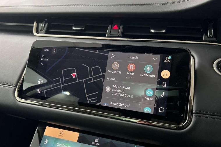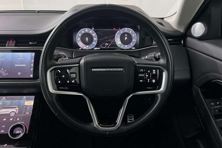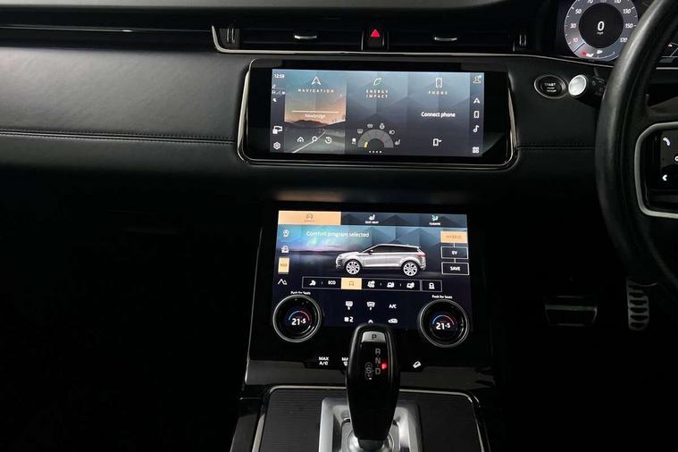 10" deployable touchscreen with lower touchscreen, Adaptive cruise control, Android Auto, Apple car play, Blind spot assist, Bluetooth connectivity, Brake pad wear indicator warning light, Driver condition monitor, eCall emergency system, Electronic power assisted steering (EPAS), Front and rear parking aid, InControl remote, Land Rover InControl apps, Lane keep assist, Pivi pro connected includes upgraded infotainment, connected navigation pro, Nuance speech licence, Powered gesture tailgate/boot lid, Push button starter, Rear collision monitor, Rear traffic monitor, Traffic sign recognition with adaptive speed limiter, Voice control system, 7 kW onboard charger, All terrain progress control, Configurable dynamics, Electric rear axle drive, Home charging cable, Large fuel tank, Passive suspension, Public charging cable, Terrain Response 2 Auto, Digital Audio Broadcast radio-DAB, Meridian surround sound system with 650W subwoofer and 14 speakers, Steering wheel mounted controls, Auto headlights, Autobiography badge, Automatic headlight levelling, ClearSight interior rear view mirror, Electric windows with one touch open/close and anti trap, Evoque and R-Dynamic badge, Flush deployable exterior door handles, Heated rear window with timer, Heated washer jets, Heated windscreen, Matrix LED headlights with signature DRL, intelligent high beam assist, signature Hi-Line tail lights and animated directional indicators, Power fold, auto-dimming, heated door mirrors with approach lights and auto dimming driver side, R-Dynamic branding illuminated metal tread plates in loadspace and row 1 with brand name script and non illuminated metal in row 2, Rain sensing windscreen wipers, Rear fog lights, Rear side wing doors, Rear wiper, Tailgate spoiler, Third brake light, 14 way electric heated/cooled front and rear seats with driver memory, 2 way man headrest, electric 4 way lumbar support, bolsters + headrest adj, 40:20:40 split folding rear seats with centre headrest and armrest, Ambient interior lighting, Bright metal pedals, Electrically adjustable steering column with memory function and easy entry/exit, Full extended leather upgrade, Heated steering wheel, Isofix system on outer rear seats, Overhead lighting console, Overhead stowage for sunglasses, Passive front head restraints, Perforated full leather steering wheel, Premium cabin lighting, Premium carpet mats, Rear air vents, Rear centre headrest, Rear head restraints, Satin chrome gearshift paddles, Single passenger seat, Sunvisors with illuminated vanity mirrors, Twin sliding front centre armrest, 3 rear 3 point seatbelts, Anti-lock braking system (ABS), Customer configurable autolock, DSC - Dynamic Stability Control, Electronic brake force distribution, Electronic parking brake, Electronic traction control, Emergency braking, Front and rear seatbelt reminder, Hill descent control, Hill launch assist, Low traction launch, Power operated child locks, Red brake calipers, Roll stability control, Six airbags - Driver and passenger airbags/driver knee airbag/front side airbag and curtain airbags, Torque vectoring brake, Tyre pressure monitoring system, Alarm, Immobiliser, Intrusion sensor, Keyless entry, Locking wheel nuts,