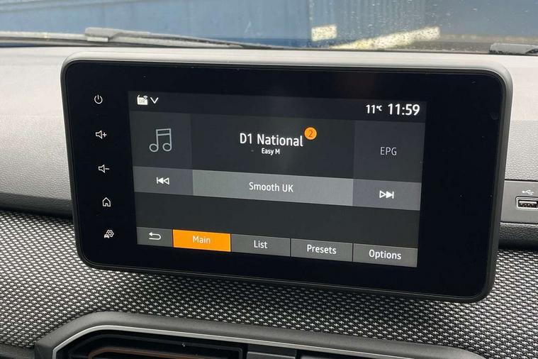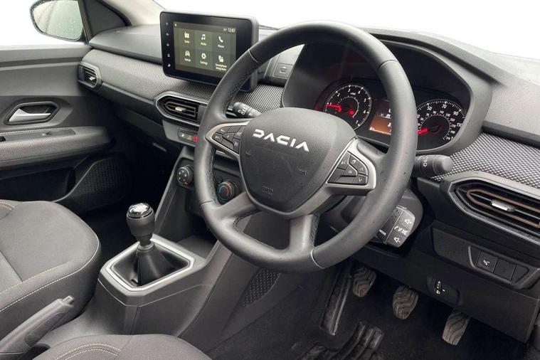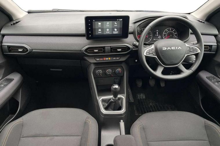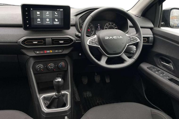 3.5" TFT instrument panel with on-board computer, Cruise control with speed limiter, Driver attention warning, eCall emergency call system, Eco mode, Electric power assisted steering, Emergency Stop Signal (ESS), Event data recoder, Lane departure warning, Lane keep assist, Rear parking sensors, Rescue code, Rev counter, Reversing camera, Stop/start system, Traffic sign recognition with speed alert/Intelligent speed assist (ISA), 8" Media display - DAB radio, smartphone replication, bluetooth, 4 speakers, Apple CarPlay and Android Auto, USB connection for data transfer and charging, USB socket, USB-C plug, 3 speed windscreen wipers, Auto lighting, Automatic wipers, Black radiator grille with white inserts stepway inscription, Body colour door handles, Body colour door mirrors, Body coloured bumpers, Drivers one touch electric windows, Electrically adjustable and heated door mirrors, Expression specifc decal below door mirror, Front electric windows, Front fog lights, Heated rear window, High level third brake light, LED automatic daytime running lights, LED Y-shape Dacia signature lighting, Megatith modular roof bars, Rear electric windows, Rear side wing doors, Rear wash/wipe, Tinted windows, White Dacia inscription on tail gate, White stepway inscription on roof bars, 1/3 to 2/3 split folding rear seats, 12 volt front socket, 12 volt rear socket, 3 height adjustable rear headrests, 3 seat rear bench, Driver and passenger vanity mirror with cover, Fabric upholstery, Fixed smartphone holder on dashboard, Floor mats, Fog grey and copper orange air vents, Fog grey interior door handles, Gear shift indicator, Height adjustable drivers seat with armrest, Height adjustable front headrests, Height/depth adjustable steering wheel, Isofix points for child seats in both outer rear seats, Manual air conditioning, Single front passenger seat, Soft feel steering wheel, Steering wheel controls, 3x3 point rear seatbelts, ABS and Emergency brake assist, Advanced emergency braking system, Alcohol imoboliser predisposal, Automatic emergency braking system, Child locks on rear doors, Door open visual and audible warning, Driver airbag, EBD - Electronic brakeforce distribution, ESC (Electronic Stability Control), ESP + Hill Start Assist, Front curtain airbags, Front seatbelt pretensioners, Front side airbags, Height adjustable front seatbelts, Passenger airbag, Seatbelt reminder for driver and front passenger, Side impact protection, Tyre pressure monitor, Automatic central locking, Immobiliser, Keyless entry, Remote central locking, Decopart on instrument panel and door with textile, 16" Atara dark flexwheels,