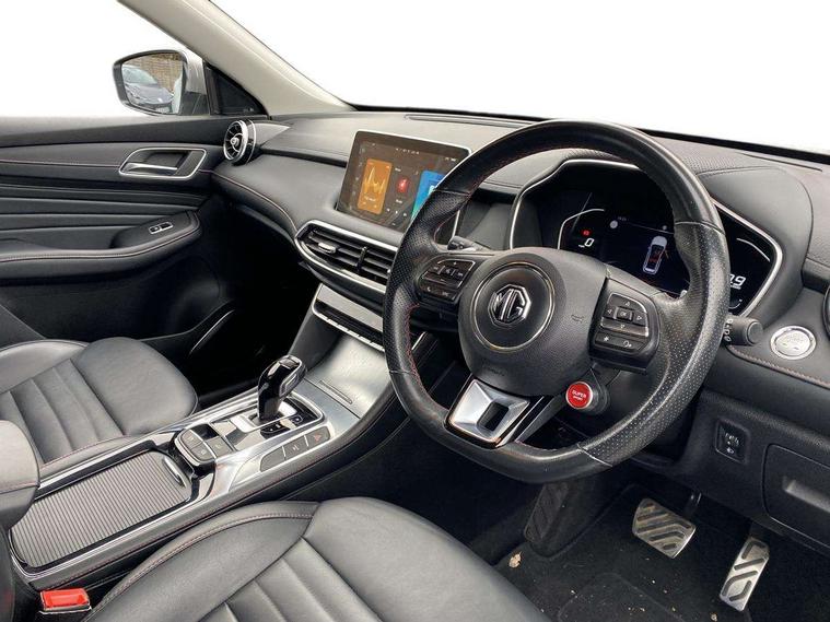 10.1" colour touchscreen, 12.3" Full digital driver information display, Adaptive cruise control, Android Auto, Apple CarPlay, Blind Spot Detection (BAS), Bluetooth connectivity, Driving modes, Emergency call service, Intelligent speed assist, Lane keep assist system (LAS) with Lane departure warning system (LDWS), PAS, Power tailgate, Rear cross traffic alert, Rear parking camera, Rear parking sensors, Satellite navigation system, Tailgate, Traffic jam assist, Trip computer, USB mobile phone charging function, 6 speaker audio system, DAB audio, Auto dimming rear view mirror, Automatic headlights, Body colour electric adjustable heated door mirrors, Electric folding door mirrors, Follow me home headlights, Front and rear aero wiper, Front and rear electric windows with one-touch up/down, Front fog lights, Intelligent high beam, LED Bi-Function headlights, LED centre brake light, LED daytime running lights, LED front and rear sequential indicators, Rain sensing wipers, Rear privacy glass, Rear side wing doors, Silver roof rails, 12V power sockets, 2nd row 60/40 split fold seat, 2nd row seat with 2 stage incline adjustment, 3 rear headrests, 3 seat bench in 2nd row, 4 way electric adjustable passenger seat, 6 way electric adjustable drivers seat + lumbar support, Ambient lighting (adjustable colour), Dual zone automatic air conditioning, Front centre sliding armrest with storage compartment, Front headrests, Heated front seats, Height and reach adjustable steering wheel, ISOFIX restraints on outer rear seats x2, Leather steering wheel, Metal sports pedals, Single passenger seat, Sports Style Front Seats with One-Piece Back, Steering wheel paddle shift, 3x3 point rear seatbelts, ABS/EBD, Active emergency braking with pedestrian/Bicycle detection, Anti rolling protection, Cornering brake control (CBC), Drivers seatbelt reminder, Dual front airbags, Electric parking brake with auto hold function, ESP, Front and rear passenger seat belt reminder, Front passenger airbag deactivation switch, Front seat belt height adjuster, Front seatbelts (3-point + pretensioner + load limiter), Front side airbags, Hill descent control, Hill launch assist, Manual rear child locks, Rear outer seatbelt pretensioner and load limiter, Side curtain airbags, Tyre pressure monitoring system, Alarm system and engine immobiliser, Keyless entry and push button start system, Remote central locking, Speed sensing door locks, 18" Hurricane diamond cut alloy wheels, Tyre repair kit,