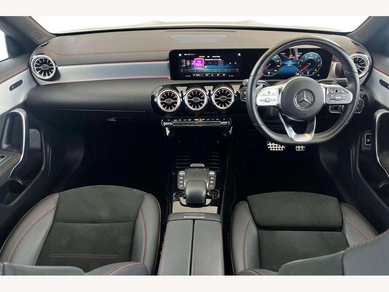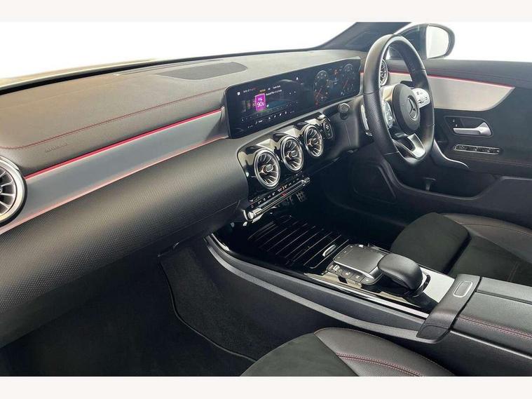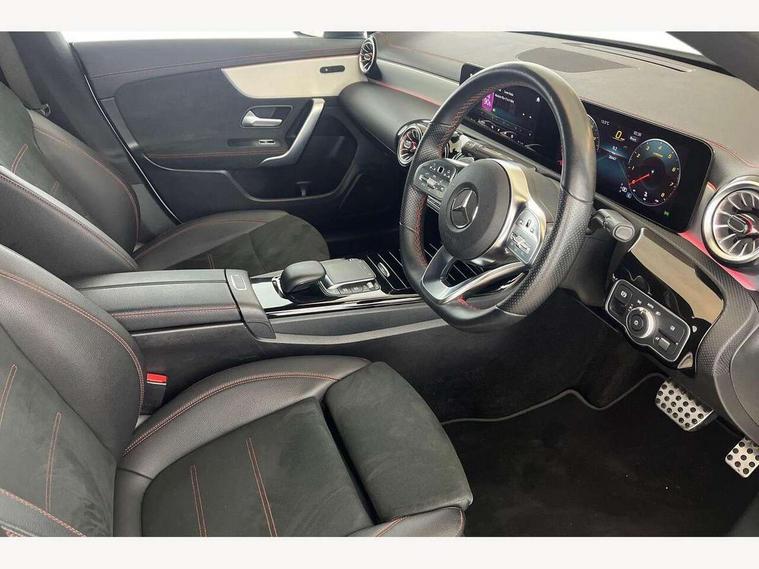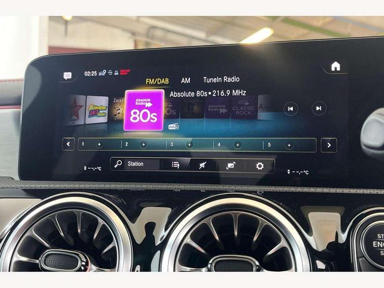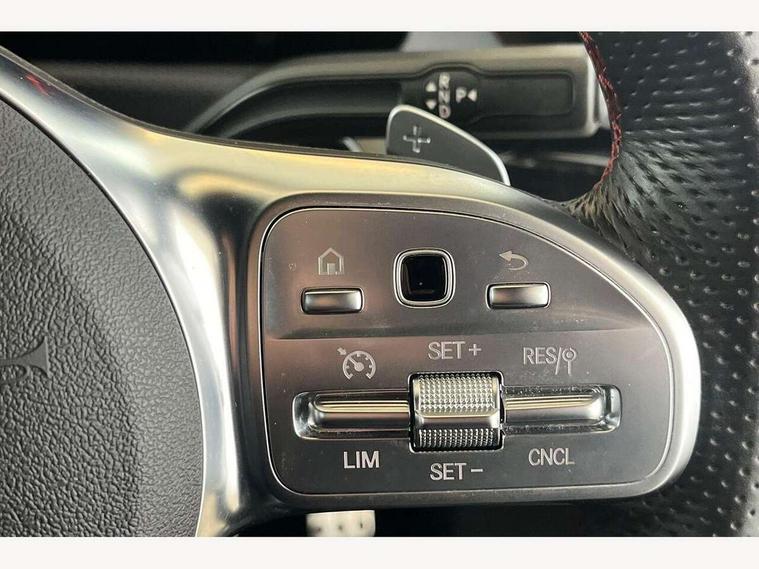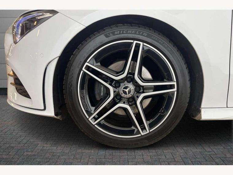 10.25 inch Instrument display with digital cockpit, 10.25 inch touchscreen central media display, Active lane keeping assist, Attention assist - Monitors steering behaviour and long journey fatigue, Bluetooth connection, Car wash mode, Cruise control with limiter, Direct steer system with speed sensitive power steering, DYNAMIC SELECT with a choice of driving modes (ECO, Comfort, Sport and Individual), ECO start/stop function, Fluid level warning indicator for fuel, oil, coolant and washer fluid, Hard-disk navigation, Hey Mercedes Voice activation, Lamp failure indicator, Mercedes me connect including emergency call system, accident recovery, breakdown and maintenance management, Mercedes me remote services, Outside temperature gauge, Owners manual and service booklet in English, Pre-installation of private car share, Preinstallation for Mercedes Benz link, Radio aerial integrated into front and rear windshields, Service indicator (ASSYST), Smartphone integration with Apple CarPlay and Android auto, Speed limit assist, Trip computer in multifunction display with current consumption indicator, Lowered comfort suspension, Rear axle multi-link, DAB digital radio tuner, MBUX multimedia system, Mid-range sound system, USB (type C) ports (2) in stowage compartment and 1 in front of centre console, Adaptive brake lights, AMG body styling with AMG front apron and rear apron and visible exhaust tailpipe in chrome trim elements, AMG bodystyling side skirts, Body colour bumpers, Body colour door handles, Chrome beltline strips, Diamond radiator grille pins in chrome, Electric windows, Electrically adjustable and heated door mirrors with integrated LED indicators, Exhaust system with 2 Visible tailpipe trim elements and rear apron with trim in chrome, Headlamp assist automatic headlamp activation, Heated glass rear windscreen + timer control, High level LED third brake light, Interior mirror with black reading lamps and frameless, LED high performance headlamps with integrated LED daytime running lights, LED tail lamp, Privacy glass with dark tinting on rear side windows and rear window, Rain sensing windscreen wipers with two sensitivity settings, Rear boot, Rear fog lamp, Rear side wing doors, Variable front intermittent wipers, Window line trim strip in chrome, 3 seat bench in 2nd row, 3 spoke flattened bottom nappa leather multifunction steering wheel with perforated leather in grip area, 40:20:40 split folding rear seat backrests, Air conditioning - Two zone thermotronic luxury automatic climate control with display, Air vents with surround in silver chrome, Artico man-made leather upholstery, Automatic child seat recognition sensor, Black roof lining, Brushed stainless steel sports pedals with rubber studs, Floor mats with stitched AMG lettering, Front centre armrest with stowage, Galvanished gear shift paddles on steering wheel, Heated front seats, Illuminated front door sills with changeable cover, Illuminated glove compartment stowage, Interior lighting - 64 colour Ambient lighting, Luggage net on driver/front passenger seat backrest, Manually adjustable front seats, Manually height and reach adjustable steering column, Rear armrest with two integral cup holders for drinks, Rear head restraints, Single front passenger seat, Sport seats with fixed head restraints, Stowage compartment in centre console with retractable cover, Sunvisors with illuminated vanity mirrors, Touchpad on center console, Twin front cupholders, Two outer rear seat isofix and top tether child seat fixing points, Keyless go comfort pack - CLA, Light and sight pack - CLA, Mirror pack - CLA, Night package - CLA, Parking package - CLA, Seat comfort pack - CLA, Active bonnet pedestrain safety measure which detects an impact and raises bonnet by 65mm, Active brake assist includes forward collision warning system with autonomous braking, Adaptive brake assist with hold function and hill start assist, Anti lock braking system (ABS) with brake assist, Black seat belts, Bonnet with power domes, Brake pad wear warning indicator, Childproof locks manually operated for rear doors and electrically operated for rear power windows, Crash responsive emergency lighting, Driver and front passenger head and sidebags, Driver and front passenger windowbags, Drivers knee airbag, Dual stage driver and front passenger airbags, Electric parking brake, Electronic stability programme with acceleration skid control, ESP curve dynamic assist, Front and rear seatbelt reminder, Front passenger seat occupancy sensor, Three point rear seat belts, Tyre pressure monitoring system, Warning triangle and first aid kit, Guard 360 degree guard vehicle protection system with immobiliser and interior protection, Remote central locking and crash sensor with emergency opening function, Light aluminium with longitudinal grain interior trim, 18" AMG 5 twin spoke light alloy wheels painted in black with high sheen finish, Summer tyres, Tirefit tyre sealant kit,