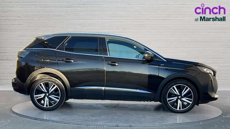 3D connected navigation with 10" HD touchscreen, Bluetooth telephone facility, Drive modes select (Eco, normal and sport), Driving Time Warning (DAA1), Emergency services call system, Extended traffic sign recognition, Exterior temperature indicator with ice warning, Front and rear parking sensors, Mirror screen with mirror link, apple carplay and android auto, Multi function trip computer, Passive blind spot monitoring without Steering correction, PEUGEOT i-Cockpit with 10" high definition capacitive touchscreen, Peugeot i-cockpit with compact multi-function sports steering wheel, PEUGEOT i-Cockpit with configurable 12.3" Head-up digital instrument panel, PEUGEOT SOS and assistance, Rear passenger USB charging sockets (x2) (type A), Speed limit recognition and recommendation, Visio park assist 360 with colour camera system + automatic parking assist, Voice recognition, Dynamic stability control and electronic anti-skid system, Stop/start function, DAB Digital radio, Focal premium HiFi sound system, USB socket, Auto self levelling headlights, Automatic hazard light activation upon heavy brake application, Automatic triggered rear windscreen wiper in reverse gear, Black with chrome detailed front wing trim, Body colour door handles, Body colour rear roof spoiler with stainless steel edging trim, Body protectors (bottom of front and rear bumpers + wheel arches + protection at bottom of doors) in black, Dark tinted rear side windows + tailgate window, Diamond Black door mirror shells, Door mirror mounted LED courtesy floor lighting, Electric folding door mirrors with exterior courtesy LED lighting, Electric operated/heated door mirrors, Fog Mode, Front windscreen wiper with magic wash cleaning system, Full LED headlights with LED fog lights with static cornering function, Gloss black B and C pillar and aerodynamic deflector trim, Gloss black front bumper air scoops, Gloss black rear cluster connecting strip, Gloss black windscreen trim, GT emblem in satin copper (front wings and tailgate), Headlights left on audible warning, Heated rear windscreen with integrated antenna, LED daytime running lights, LED front indicator, LED rear number plate lighting, LED side indicator lights integrated into door mirrors, LED third brake light, One touch electric front/rear windows with pinch protection, Rear LED Peugeot signature 'Claw Effect' lights, Rear side wing doors, Stainless steel roof arches, Twin exhaust tailpipe, 1/3 to 2/3 split folding rear seats, 12V Sockets in dashboard, rear cabin and load area, 2 cupholders in front centre console, 2 cupholders in rear armrest, 2 x Rear reading spotlights, 2x Rear coat hooks, 3x Isofix child seat fittings in the front passenger and outer rear seats, 4 Grab handles retractable and damped, Aikinite stitching in armrest, gear lever and dashboard facia, Aluminium pedals, Blue ambient lighting for connecting zone, Blue ambient lighting to front door panels, central storage and cupholders, Blue ambient lighting to headup instrument panel, Centre front armrest with butterfly wing opening and illuminated storage compartment, Dual zone automatic climate control, Electric power steering with reach and rake adjustable steering column, Flocked front door pocket interior with blue ambient lighting, Flocked glovebox interior, Focal tweeter speaker grilles in Belem bronze metal effect finish, Foldable front passenger seat with picnic table, Footwell illumination, Front interior light with 2 reading spotlights and rear interior light with timer, Front passenger seat manual adjustment (longitudinal and back rest angle), Front seat back map pockets, Gear shift indicator, Illuminated glovebox, Individual left and right controls in boot for seat folding, LED interior lighting in storage spaces and load area, LED roof interior lighting, Mistral floor mats with Aikinite contrast stitching, Mistral full grain perforated leather steering wheel with aikinite stitch detail and satin chrome 'GT' emblem, Rear bench seat with central armrest and ski hatch, Rear centre console ventilation system, Roof lining - Mistral black, Satin chrome dashboard trim, Satin chrome digital instrument panel and touchscreen trim, Satin chrome front door panel recess trim, Satin chrome interior door handles, Satin chrome scorpion's tail and toggle switch trim, Seatbelt not fastened audible and visual alert for front seats, Seatbelt unfastened on the move audible and visual alert for front and rear seats, Sunvisors with illuminated vanity mirrors, Two position boot floor, Drive assist plus pack - 3008, Driver sport pack - 3008 Auto, Safety plus pack with high beam assist - 3008, Visibility pack - 3008, 3x Rear three-point retractable seatbelts with force limiters in the outer rear seats, ABS (Anti-lock Braking System) with EBD (Electronic Brakeforce Distribution) and EBA (Emergency Braking Assistance), Adaptive driver and front passenger airbags with passenger airbag deactivation function, Driver and front passenger side airbags, Electric child locking functionality on rear windows and doors, Electric parking brake, Front and rear curtain airbags, Front optimised safety headrests and 3 x rear retractable headrests with height adjustable, Front three point retractable seatbelts with pre tensioners and force limiters, Front ventilated disc brakes and rear disc brakes, Hill start assist, Two tone horn, Automatic door locking when moving off, Electronic immobiliser, key operated exterior door lock from the left hand door, Perimetric and volumetric alarm with lift and tilt sensor, Peugeot Open and Go System, Remote control central locking with two plip keys, Puncture repair kit including compressor, sealant cartridge and towing eye,
