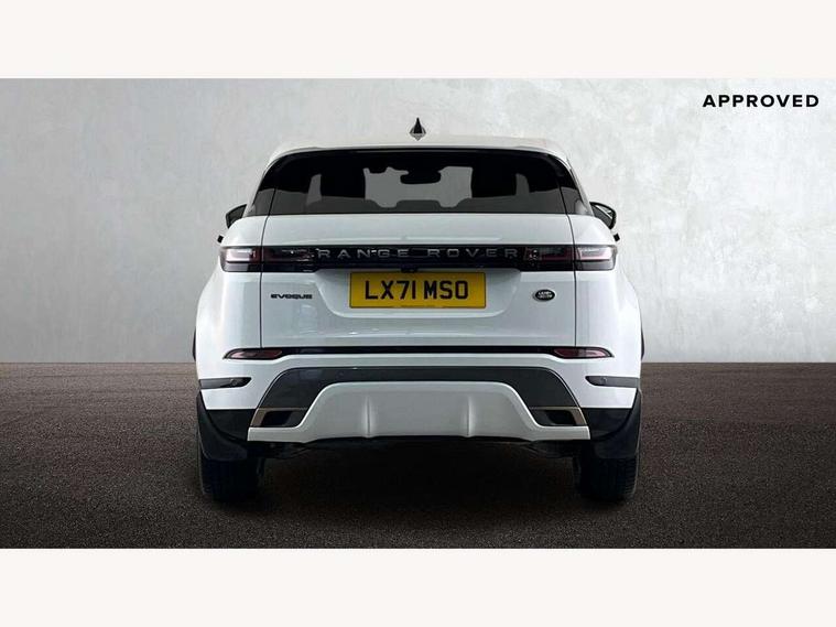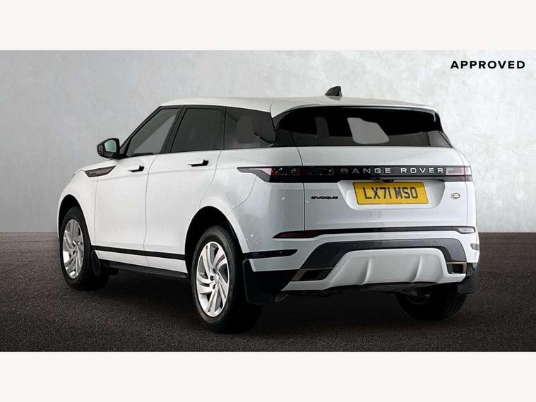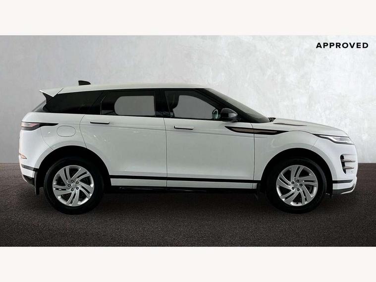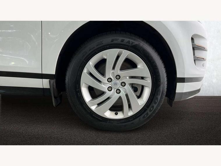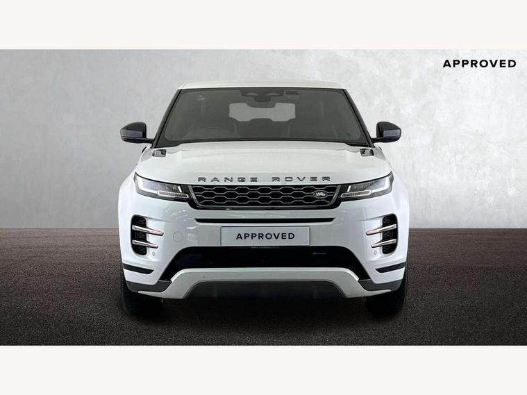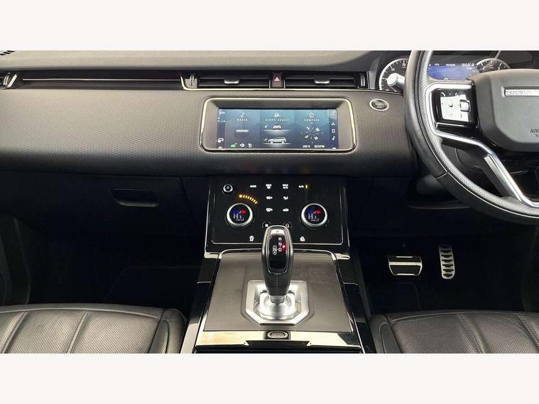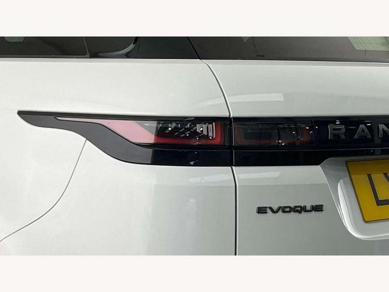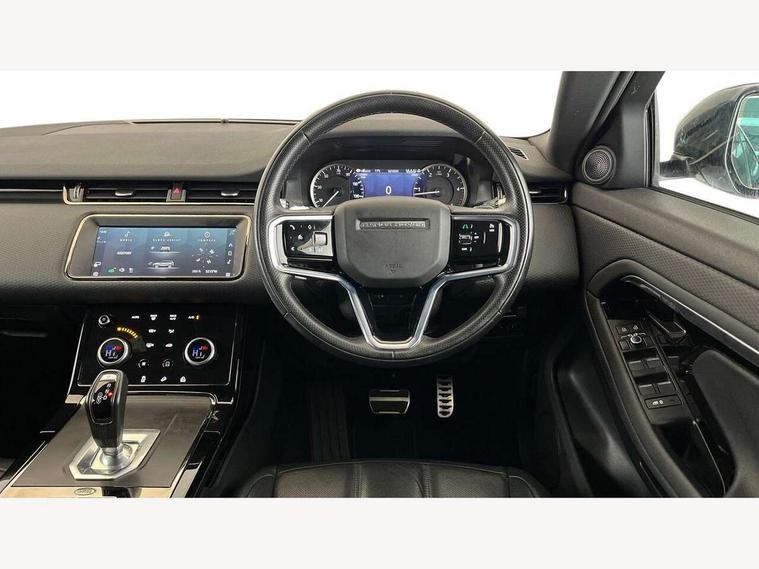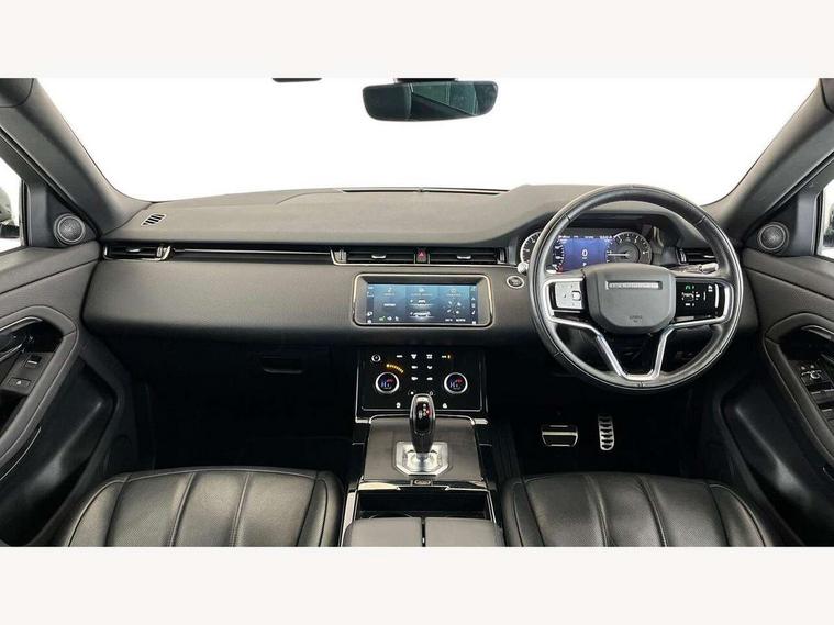 Android Auto, Apple car play, Bluetooth connectivity, Brake pad wear indicator warning light, Driver condition monitor, Electronic power assisted steering (EPAS), Front and rear parking aid, InControl remote, Land Rover InControl apps, Lane keep assist, Pivi pro connected includes upgraded infotainment, connected navigation pro, Nuance speech licence, Push button starter, Traffic sign recognition with adaptive speed limiter, Voice control system, All terrain progress control, Efficient Driveline, Passive suspension, Terrain Response 2 Auto, Digital Audio Broadcast radio-DAB, Steering wheel mounted controls, Electric windows with one touch open/close and anti trap, Evoque and R-Dynamic badge, Flush deployable exterior door handles, Heated rear window with timer, Heated washer jets, Heated windscreen, Power fold, auto-dimming, heated door mirrors with approach lights and auto dimming driver side, Rain sensing windscreen wipers, Rear fog lights, Tailgate spoiler, 40:20:40 split folding rear seats with centre headrest and armrest, Ambient interior lighting, Bright metal pedals, Isofix system on outer rear seats, Overhead lighting console, Overhead stowage for sunglasses, Passive front head restraints, Rear air vents, Rear centre headrest, Satin chrome gearshift paddles, Sunvisors with illuminated vanity mirrors, Twin sliding front centre armrest, 3 rear 3 point seatbelts, Anti-lock braking system (ABS), Customer configurable autolock, DSC - Dynamic Stability Control, Electronic brake force distribution, Electronic parking brake, Electronic traction control, Emergency braking, Front and rear seatbelt reminder, Hill descent control, Hill launch assist, Low traction launch, Power operated child locks, Roll stability control, Six airbags - Driver and passenger airbags/driver knee airbag/front side airbag and curtain airbags, Torque vectoring brake, Tyre pressure monitoring system, Alarm, Immobiliser, Intrusion sensor, Locking wheel nuts,
