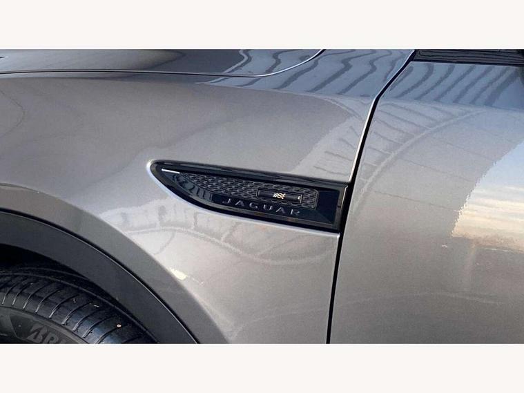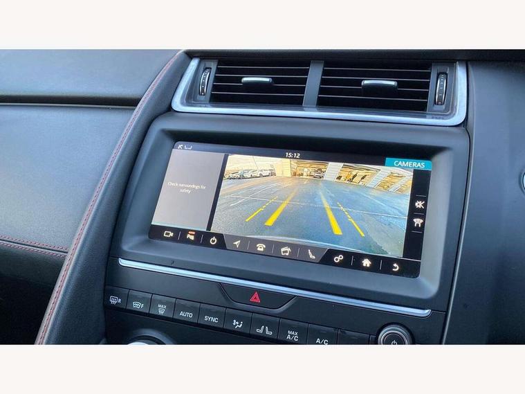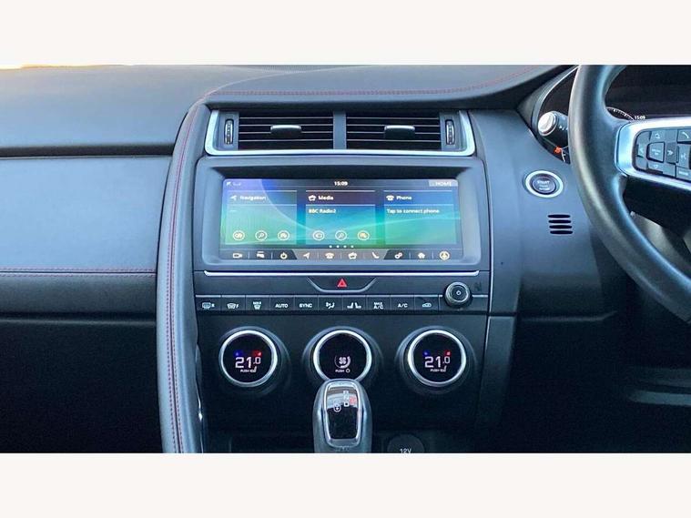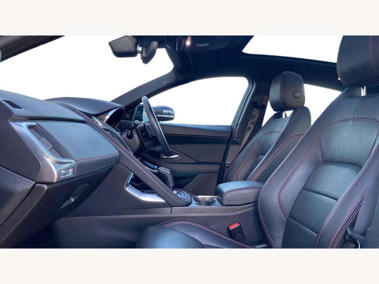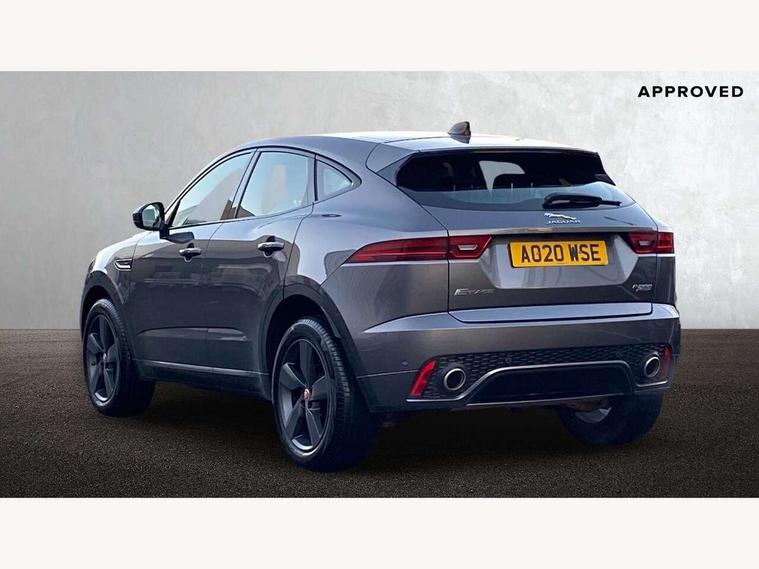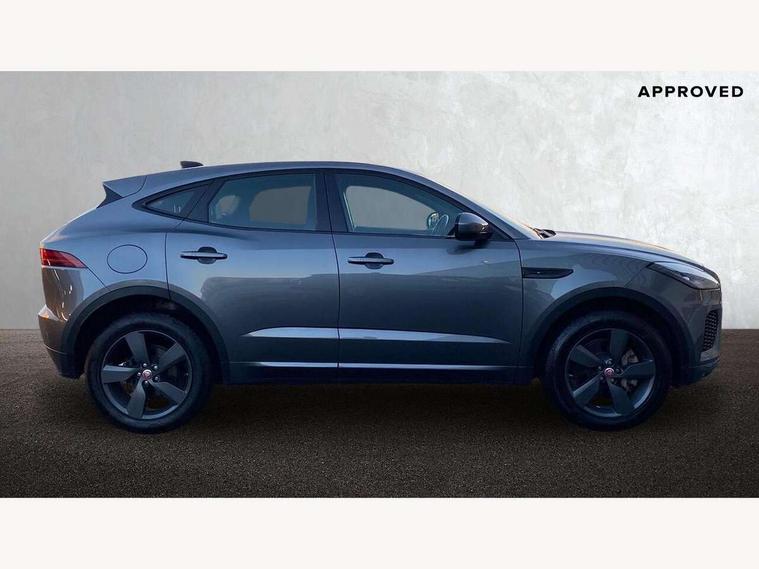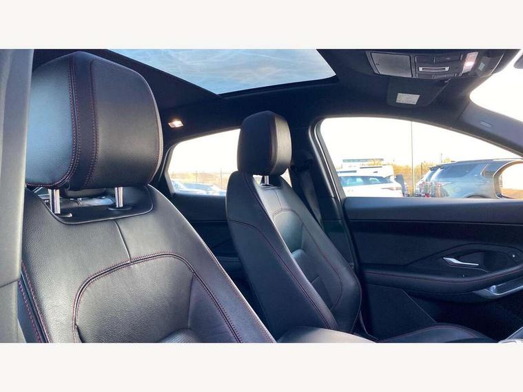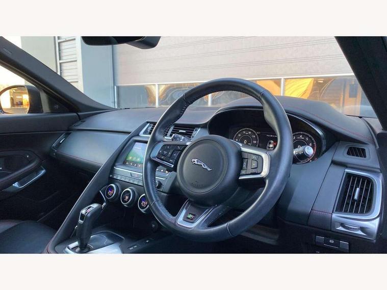 Driver condition monitor, Eco driving style assistant, Electric power assisted steering, InControl remote, InControl Touch navigation pro, Interactive Driver display instrument cluster, Lane keep assist, Outside temperature gauge, Push button starter, Speed proportional steering, Start up sequence with movement in dials and lighting, Traffic sign recognition with adaptive speed limiter, Trip computer, Voice control system, Efficient Driveline, Passive suspension, AM/FM DVD MP3 radio, Bluetooth connectivity including audio streaming, DAB Digital radio, Dynamic volume control, 3 flash lane change indicators, Approach Illumination, Auto dimming rear view mirror, Automatic headlights, Body colour side cladding, Chequered Flag badge in side vents, E Pace badge, Electric front/rear windows with one touch/auto up/down, Fixed panoramic glass sunroof, Front fog lights, Heated front windscreen, Heated rear window with timer, Heated washer jets, Jaguar script and leaper, Metal treadplates with Chequered Flag branding, P200 AWD badge, R Dynamic body colour bumpers, Rain sensor windscreen wipers, Rear fog lights, Tailgate/boot lid spoiler, Twin tailpipes with finishers, 12V power socket in rear, 2nd row 60/40 split/fold, 2nd row air vents, 3 seat bench in 2nd row, 4 Load area hooks, Black gearshift paddles, Bright metal pedals, Centre armrest console, Centre headrest in row 2, Ebony morzine headlining, Elasticated loadspace side strap, Front head restraints, Grained Leather upholstery with front sports seats, ISOFIX on outer rear seats, JaguarDrive selector, LED lighting in overhead console, Loadspace cover, Loadspace lamp, Passive front headrests, R branded leather steering wheel, Storage net in luggage compartment, Sunvisors with illuminated vanity mirrors, Tie down hooks in luggage area, Twin front cupholders, Two zone climate control, Black exterior pack - E-Pace, Connect pro pack - E-Pace, Smartphone pack - E-Pace, 350mm front brakes, 3x3 point rear seatbelts, ABS, All surface progress control (ASPC), Customer configurable autolock, DSC - Dynamic Stability Control, Electronic brake force distribution, Electronic parking brake, Emergency brake assist, Front airbags with passenger seat occupant detector, Front and rear curtain airbags, Front and rear seatbelt reminder, Front side airbags, Hill start assist, Low friction launch, Power child locks, Torque vectoring brake, Tyre pressure monitoring system, Intrusion sensor and alarm, Keyless entry, Locking wheel nuts,