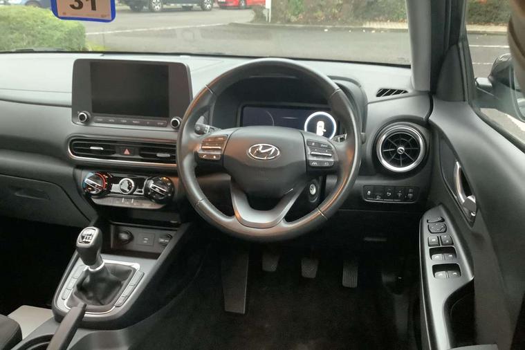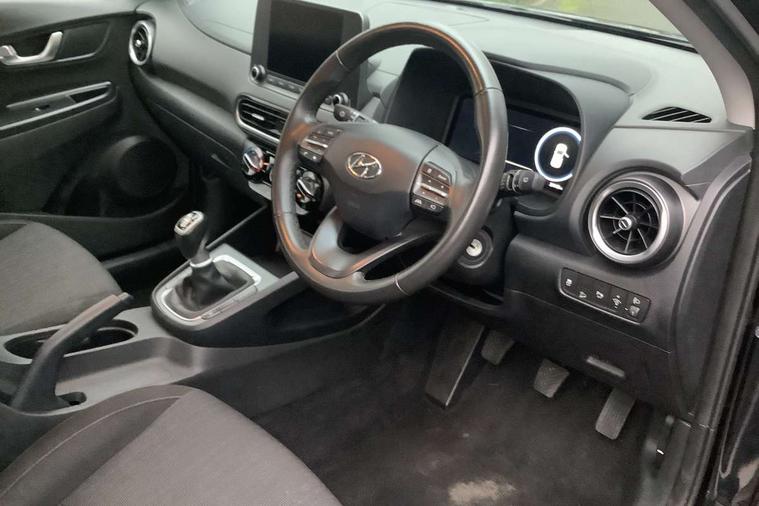 8" Touchscreen display audio + smart device integration, Bluetooth connectivity, Cruise control + speed limiter, Digital clock, Driver attention warning, Driver supervision instrument cluster with 10.25" LCD display, eCall emergency call system, Forward collision avoidance assist with pedestrian detection, Lane follow assist, Lane keep assist, Leading vehicle departure alert (LVDA), Parking system with rear camera and guidance system, PAS, Phone connection with apple carPlay and android auto, Rear parking sensor, Roadside assistance, Tailgate, Windscreen washer fluid sensor and warning indicator, 6 speed intelligent manual transmission, 6 speakers (2 front, 2 tweeters, 2 rear), Front USB ports, RDS and Digital DAB, Steering wheel mounted audio/phone controls, Automatic headlights with dusk sensor, Body colour door mirrors and handles, Door mirror integrated indicators, Electric front/rear windows with drivers one touch/anti-trap, Electrically adjustable and heated door mirrors, Halogen headlights, Halogen rear lights, LED daytime running lights, Positioning Lights - LED, Rain sensor, Rear roof spoiler with integrated LED brake light, Rear side wing doors, Rear wiper, Roof rails, Tinted glass with front door glass and windscreen with shade band, Variable front intermittent wipers, 12V power outlet in front console, 3 seat bench in 2nd row, 60/40 split folding rear seat, Adjustable head restraints, Air conditioning, Centre interior light, Cloth upholstery, Door scuff plate, Driver's seat height adjustment, Driver/passenger sunvisors and illuminated vanity mirrors, Front interior light, Front passenger seat manual adjustments, Height/reach adjustable steering column, Isofix rear child seat fastenings, Leather wrapped steering wheel and gear knob, Luggage compartment lighting, Luggage hooks, Metal paint effect interior door handles, Parcel shelf, Rear centre console with air vents, Single front passenger seat, Sunglasses holder, Vertical adjustment rear head restraints, Trailer wiring package - Kona, Airbags - front, front side and curtain airbags, Anti-lock brake system (ABS), Childproof rear door locks, Downhill brake control, EBD + Brake Assist, Electronic stability control, Fasten seatbelt reminder, Fixed 3 point for second row centre passenger seatbelt, Front seatbelt pretensioners, Height adjustable front seatbelts, Hill start assist control (HAC), Manual parking brake, Passenger airbag deactivate switch, Rear seat alert, Traction control, Tyre pressure monitoring system, Alarm/immobiliser, Deadlocks, Folding key, Locking wheel nuts, Remote central locking, 17" Alloy wheels,